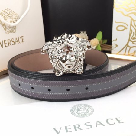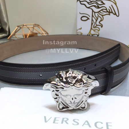 Versace Fashion Leather Silver Medusa Buckle Belt