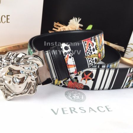 Versace Fashion Printed Calf Leather Silver Medusa Buckle 40mm Belt