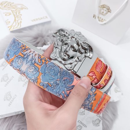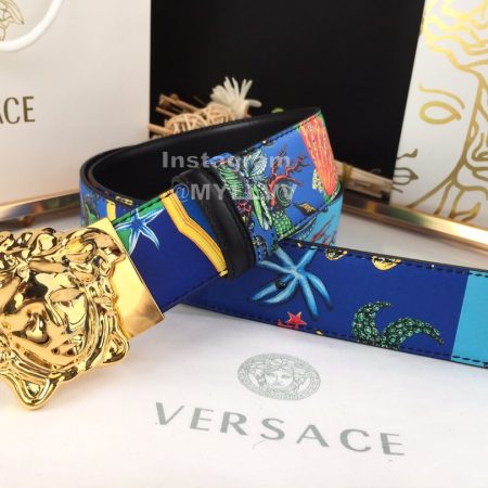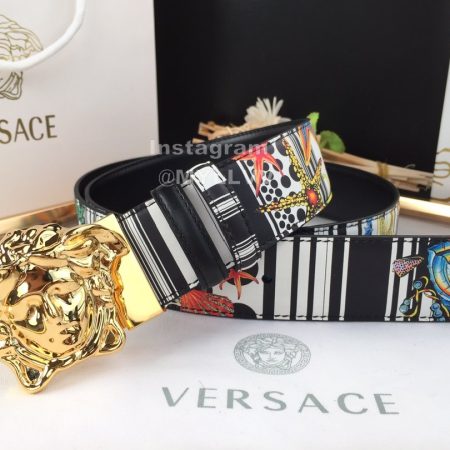 Versace Fashion Printed Calf Leather Gold Medusa Buckle 40mm Belt