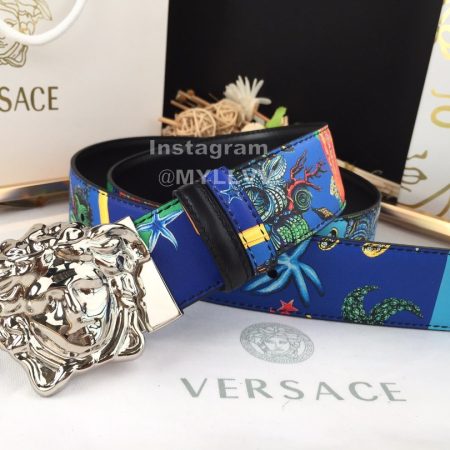 Versace Fashion Printed Calf Leather Silver Medusa Buckle 40mm Belt Blue