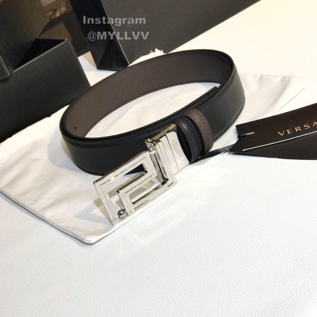 Versace Grain Cowhide Silver S Buckle 35mm Belt