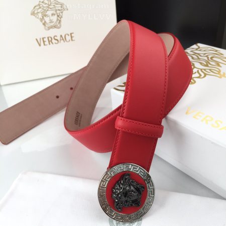 Versace New Calf Leather Round Medusa Buckle 40mm Belt Red
