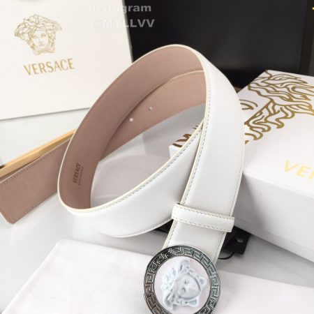 Versace New Calf Leather Round Medusa Buckle 40mm Belt White