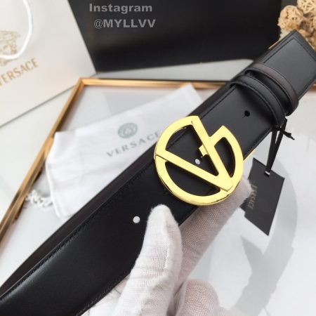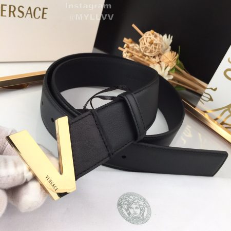 Versace New Calf Leather Gold V-Shaped Buckle 40mm Belt