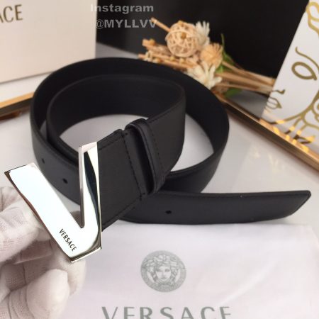 Versace New Calf Leather Silver V-Shaped Buckle 40mm Belt