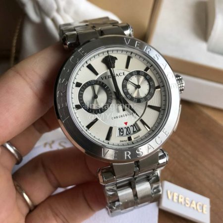 Versace Six Needle 44mm Dial Timing Watch For Men Silver