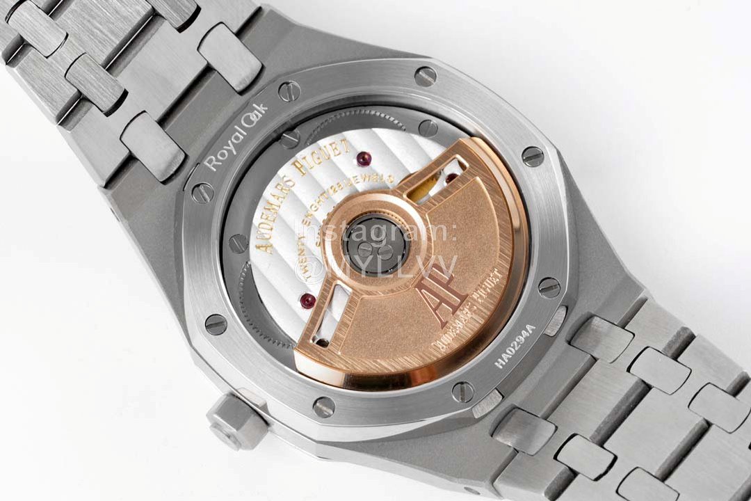 8F’s new 34mm diameter Royal Oak series automatic chain wristwatch reproduces the avant-garde style of this legendary series with a new case size, and deduces a different elegant style for the wearer of slender wrists. All new watches are equipped with 9015 calibre 5800 automatic chain movement, and adopt rose gold automatic pendulum specially designed for this style.