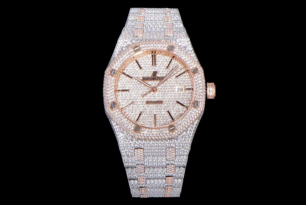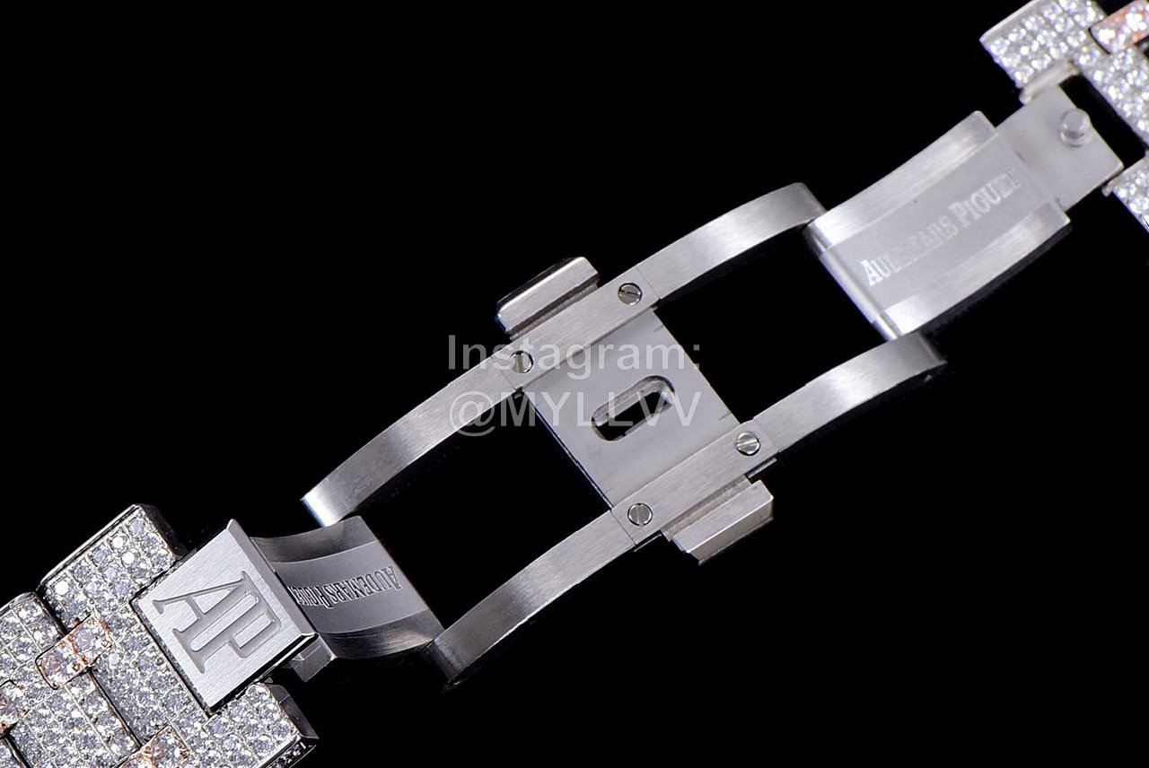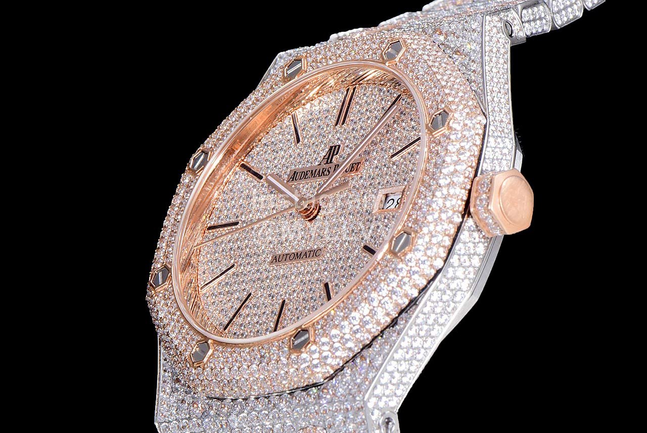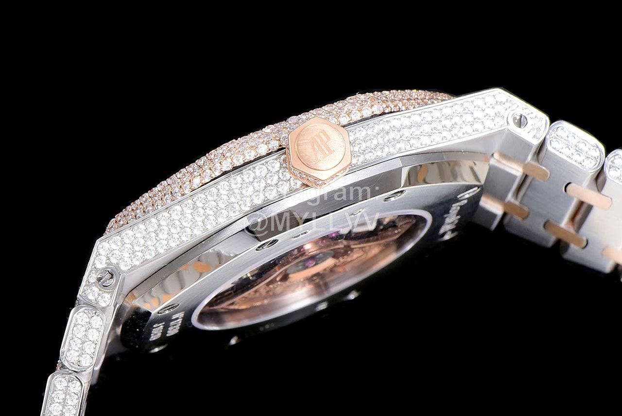 After many processes, it was finally completed! The whole watch is densely inlaid with the top Swarovski diamond, including the steel belt, and the side is also inlaid with diamond. It has tried the processing technology for countless times to pursue the invincible texture of luxury! At all costs, we have finally created the most luxurious 15400 sky stars at present. Second kill the details and workmanship of other existing versions!