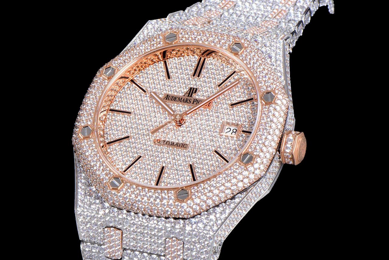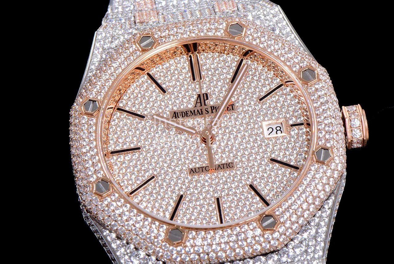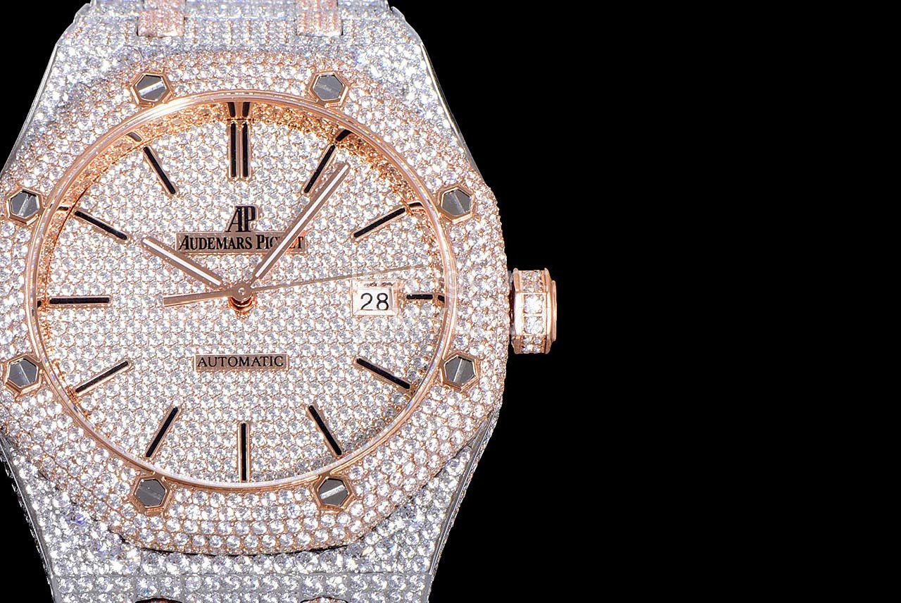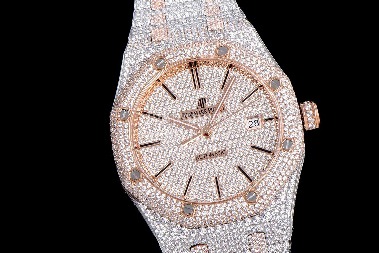 After many processes, it was finally completed! The whole watch is densely inlaid with the top Swarovski diamond, including the steel belt, and the side is also inlaid with diamond. It has tried the processing technology for countless times to pursue the invincible texture of luxury! At all costs, we have finally created the most luxurious 15400 sky stars at present. Second kill the details and workmanship of other existing versions!