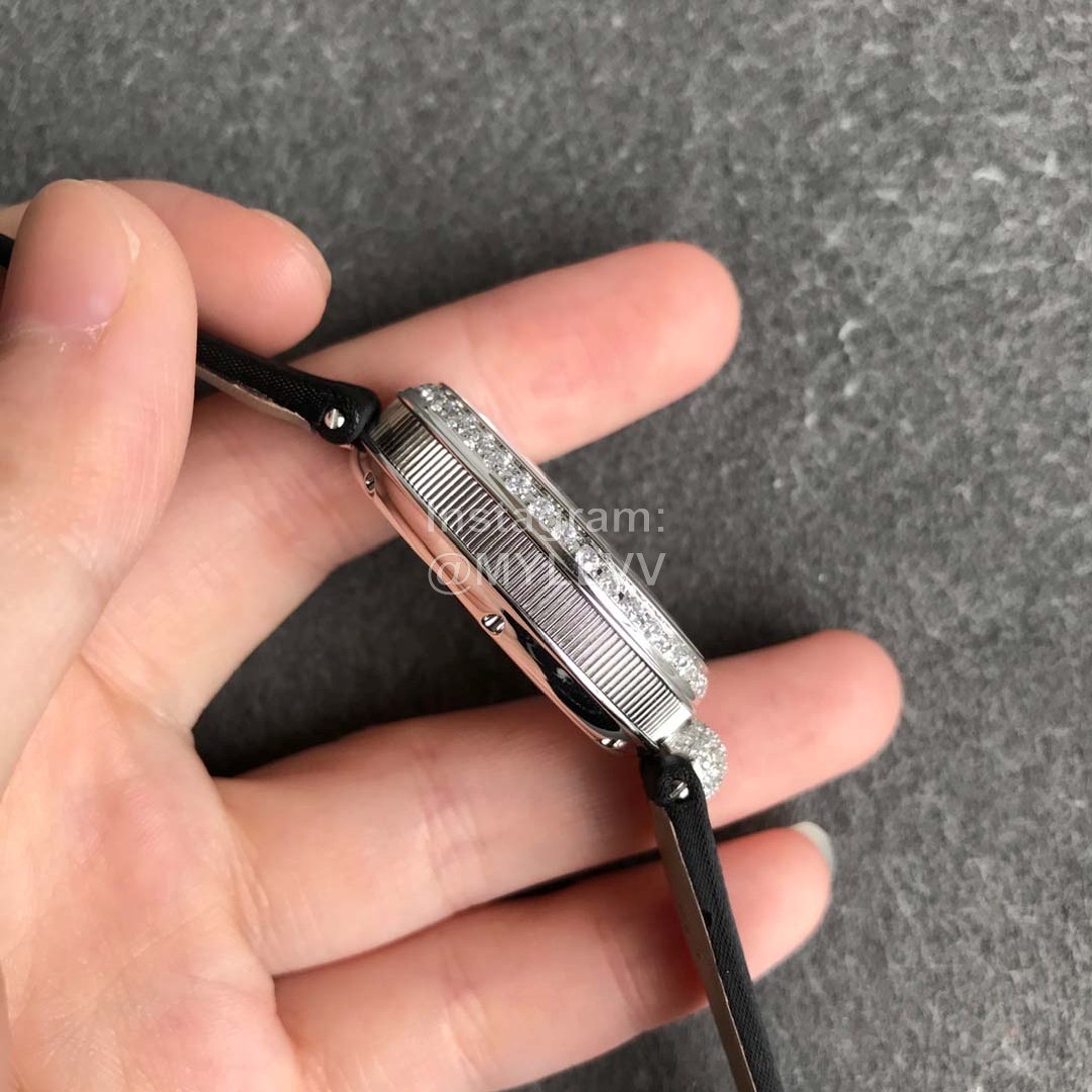 The goose egg shaped case is elegant and atmospheric, and the outer edge of the case is decorated with coin patterns. A total of 117 Swarovski crystals (about 0.99 carat) are embedded around the bezel and case. The crown is inlaid with a pear shaped spar (about 0.26 carat)