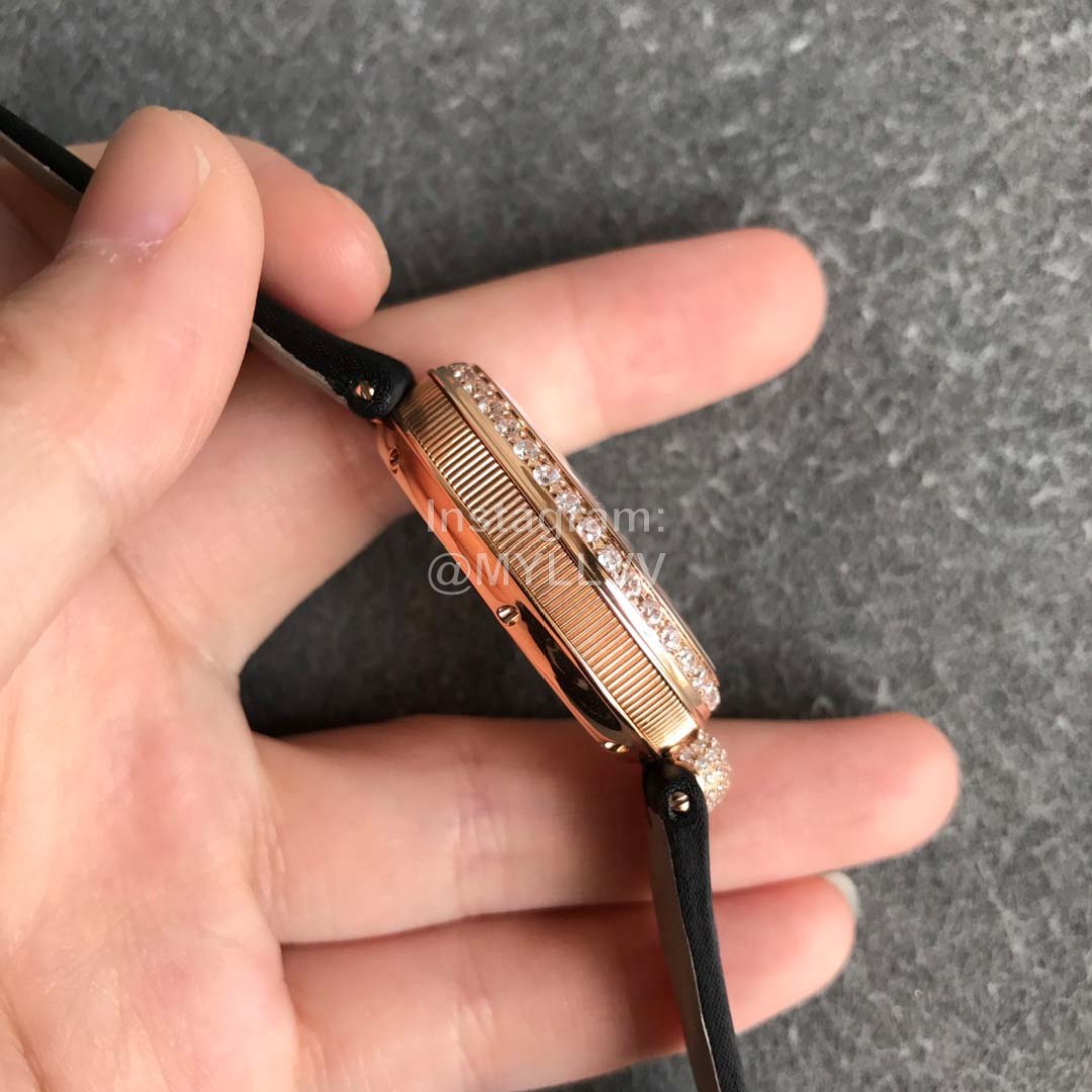 The goose egg shaped case is elegant and atmospheric, and the outer edge of the case is decorated with coin patterns. A total of 117 Swarovski crystals (about 0.99 carat) are embedded around the bezel and case. The crown is inlaid with a pear shaped spar (about 0.26 carat)