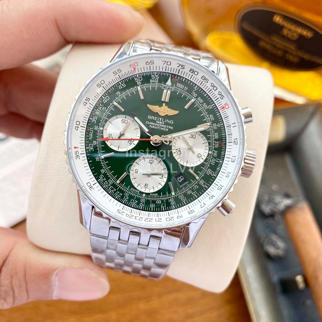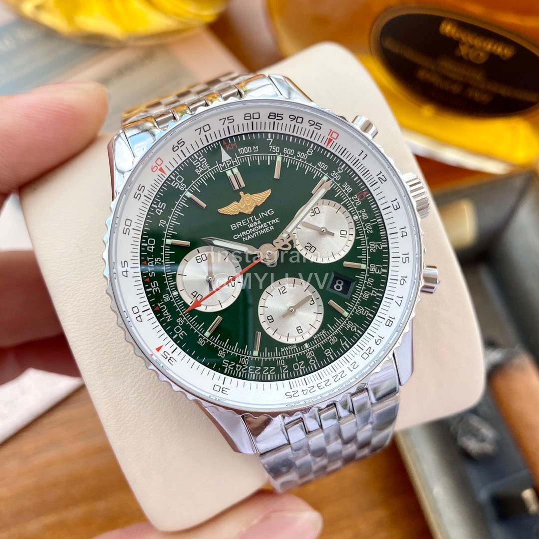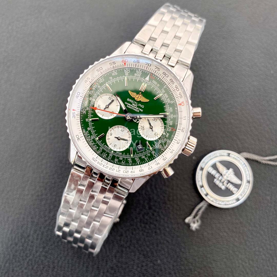 High end series! The new Breitling aviation chronometer 01 series adds a fashionable green 43mm diameter laser logo chronometer back cover, the ring mouth can rotate 7750 automatic chronometer movement, blue coated sapphire mirror, 316 fine steel case, luminous dial pointer