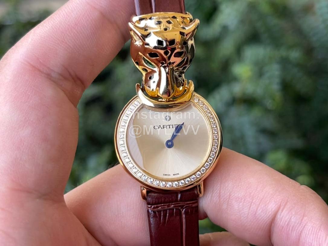 Cartier Cartier Panth è re cheetah premium jewelry wristwatch Swiss quartz movement watch diameter 23.6mm, inlaid with 40 bright cutting round diamonds, platinum, rose gold, gold leopard head, pear shaped schafle stone leopard head