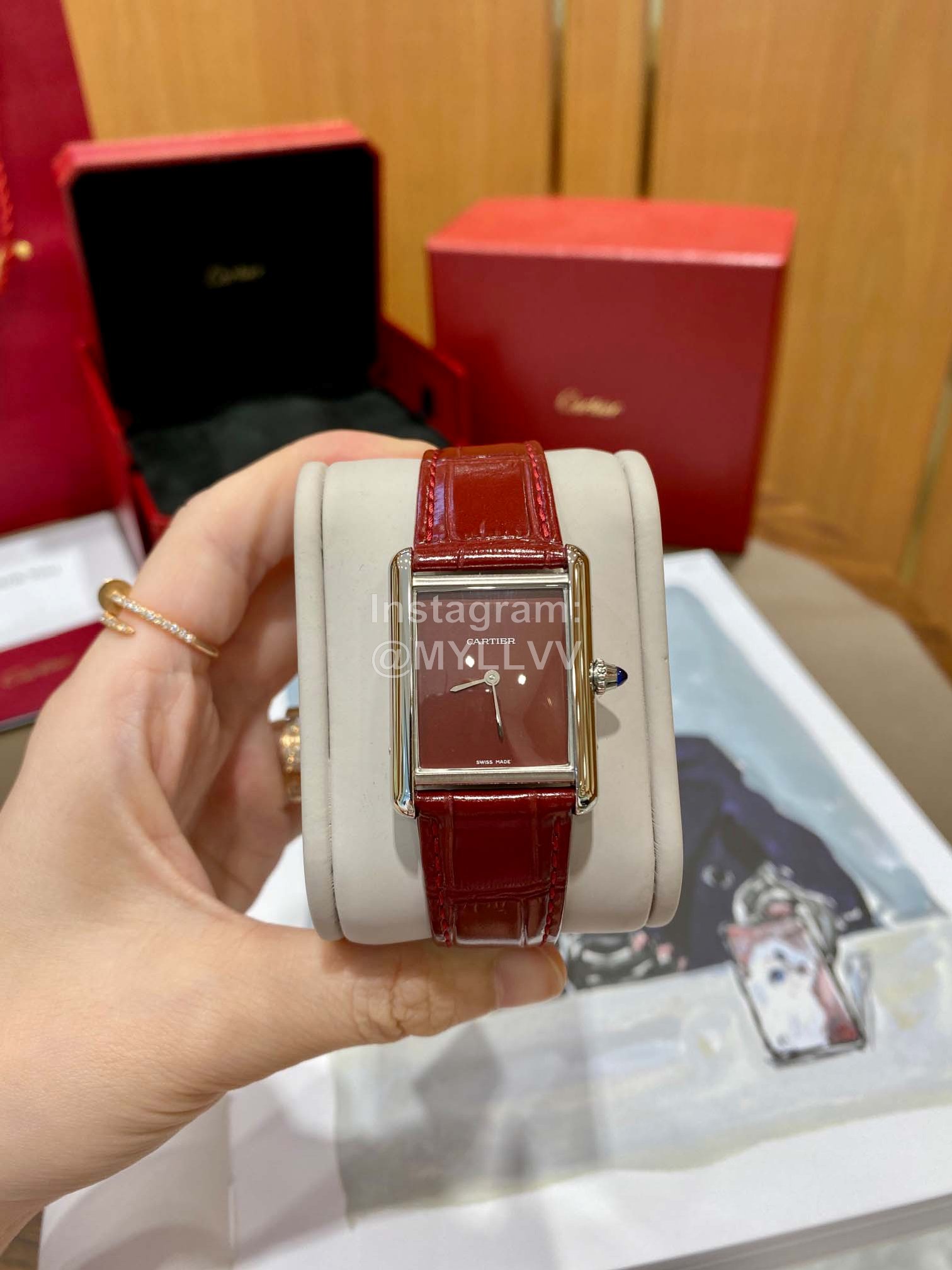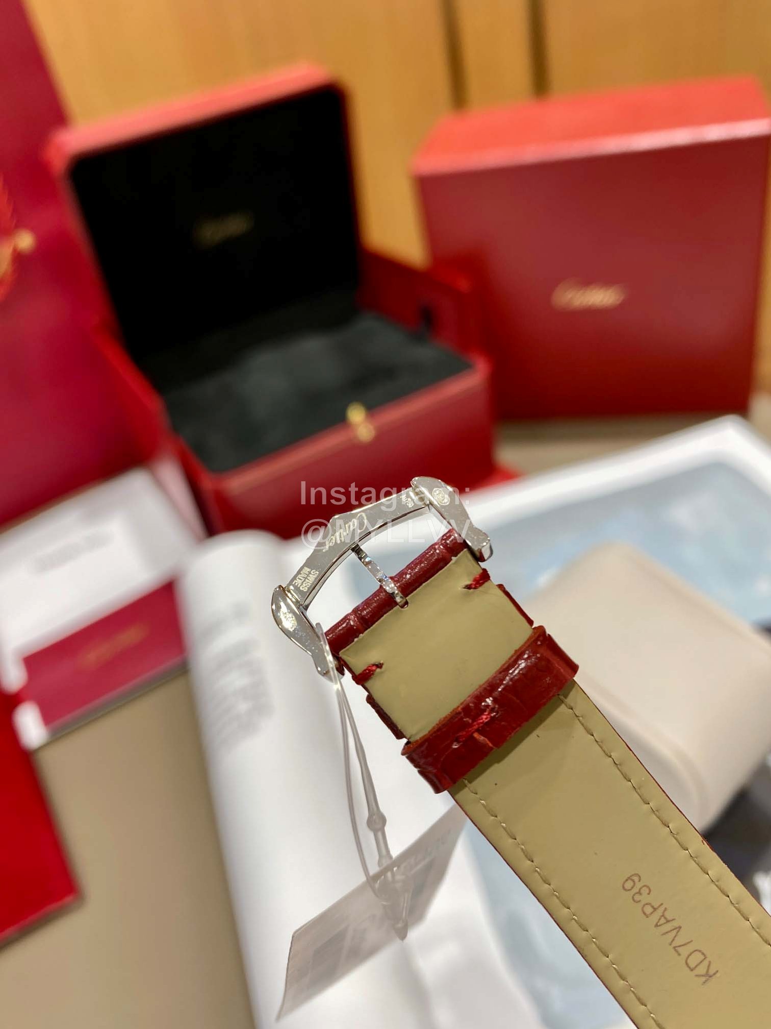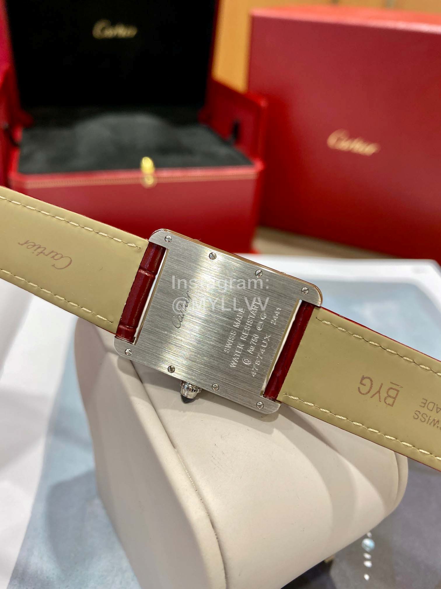 Cartier Tank Must Square Dial Leather Strap Watch Reddish Brown