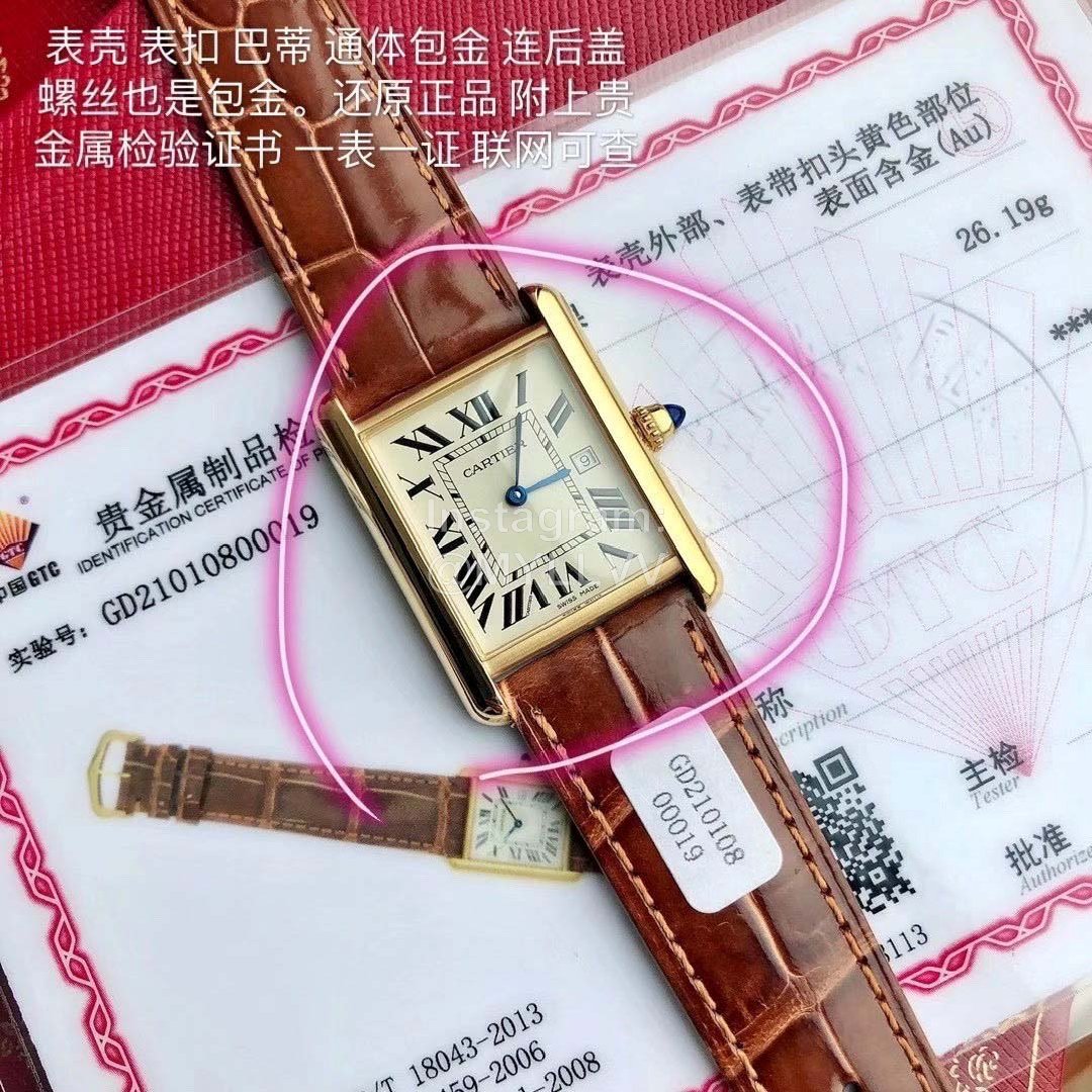 Dr factory is the representative work of Cartier tank wristwatch family! Made of all precious metal, the shell shape is more round and delicate. The Swiss quartz movement has a new size of 33.7 x 25.5mm. This size is just right, and the thickness is 6.35mm. The easiest way to identify is the conical sapphire on the crown and the calendar display! The diamond glass made by special technology shows a more concave sense of hierarchy. Disk Roman numeral time scale, the track of the inner ring is used as the scale to identify the specific time, the pointer adopts blue steel sword needle, and the round bead crown is inlaid with blue synthetic cone gem. Innumerable fights can make every difference! The strap is made of imported leather, which is carefully selected. It is waterproof for life for 30 meters