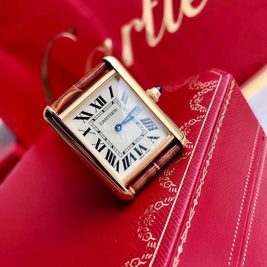 Cartier Tank Roman Numerals Square Dial Watch Brown