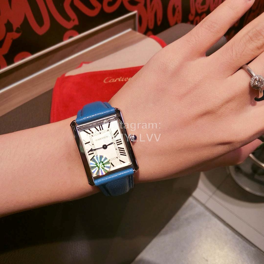 Cartier Tank Series 316l Refined Steel Leather Strap Watch Blue