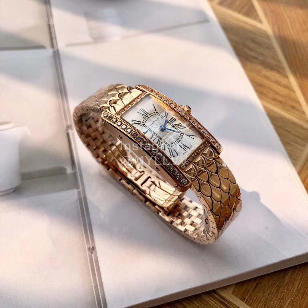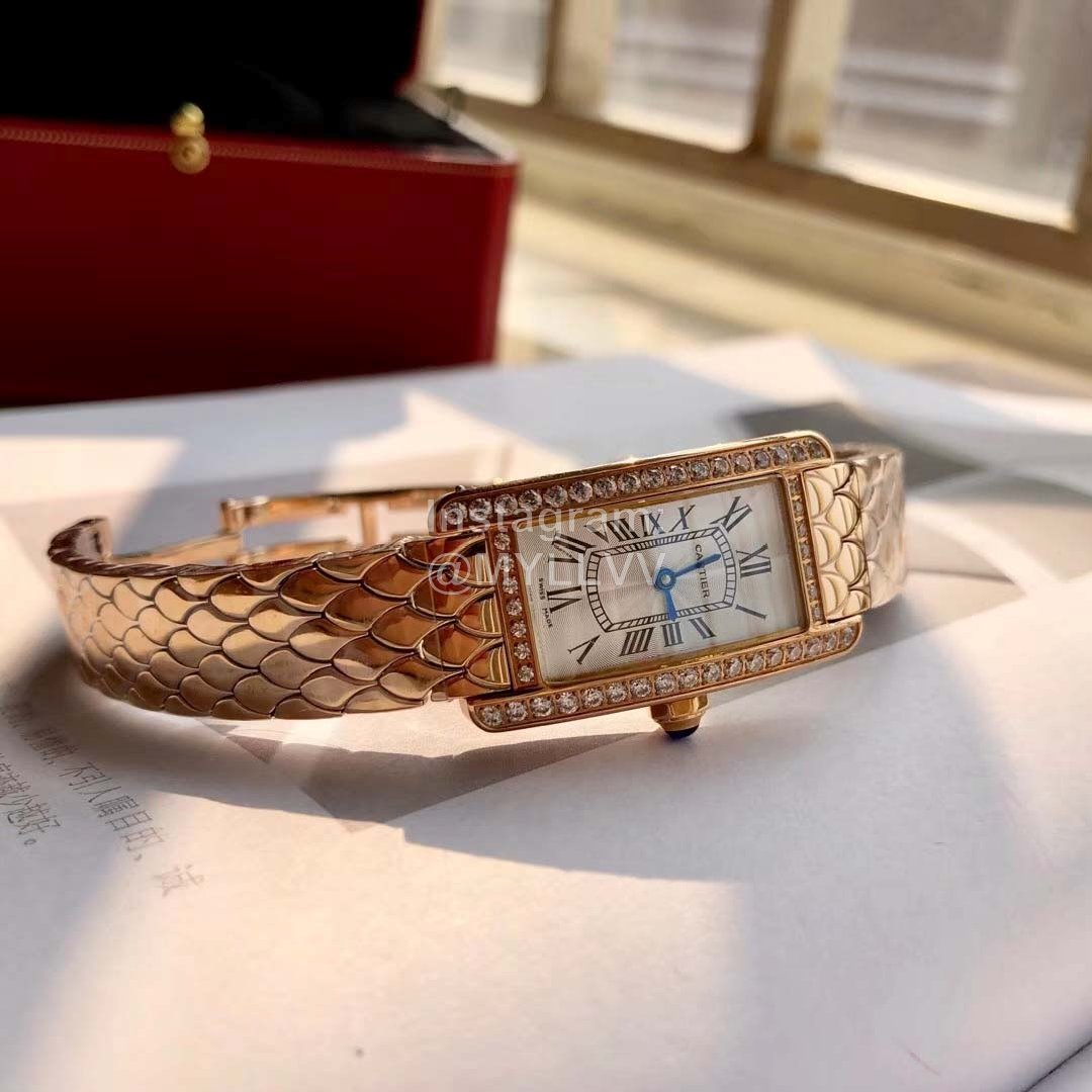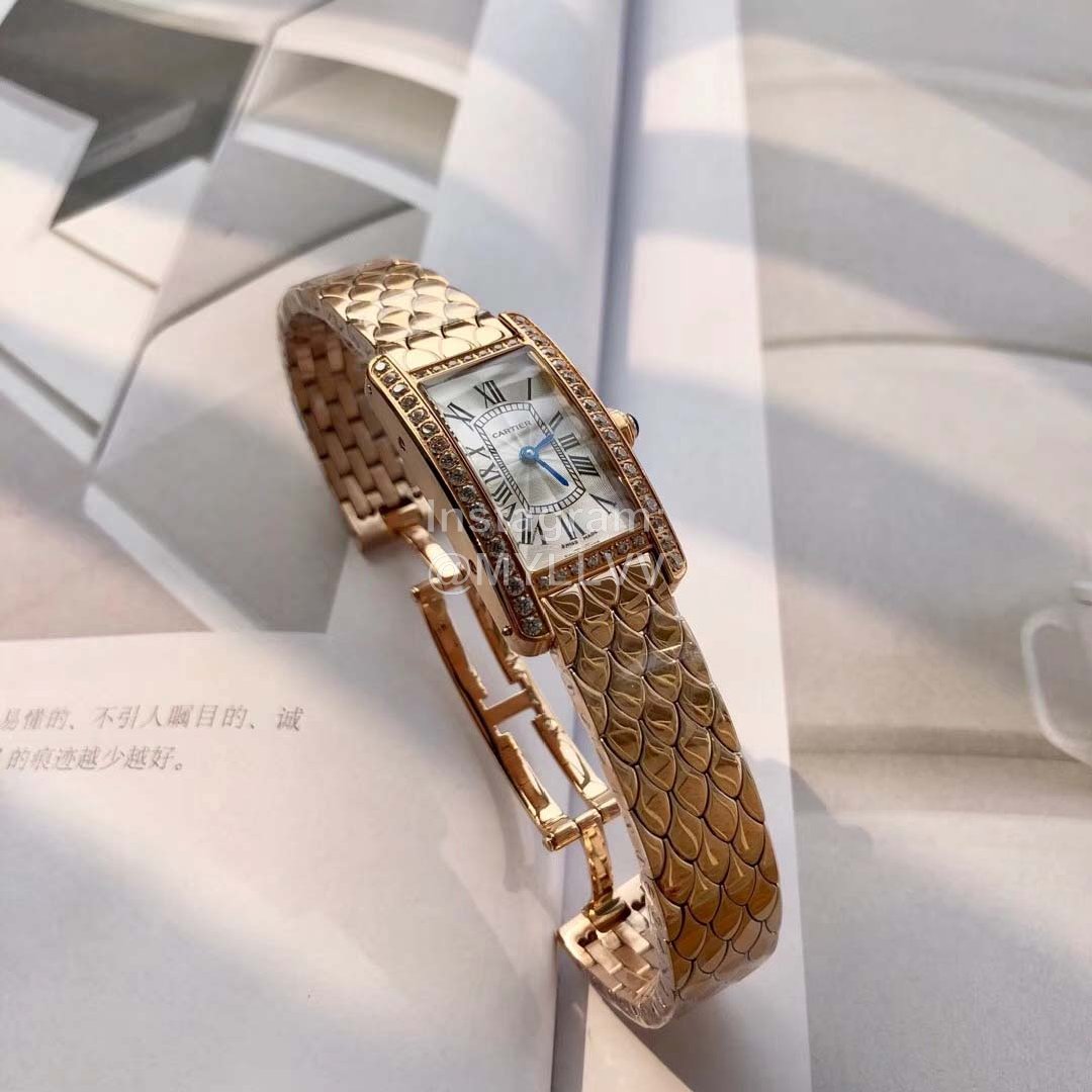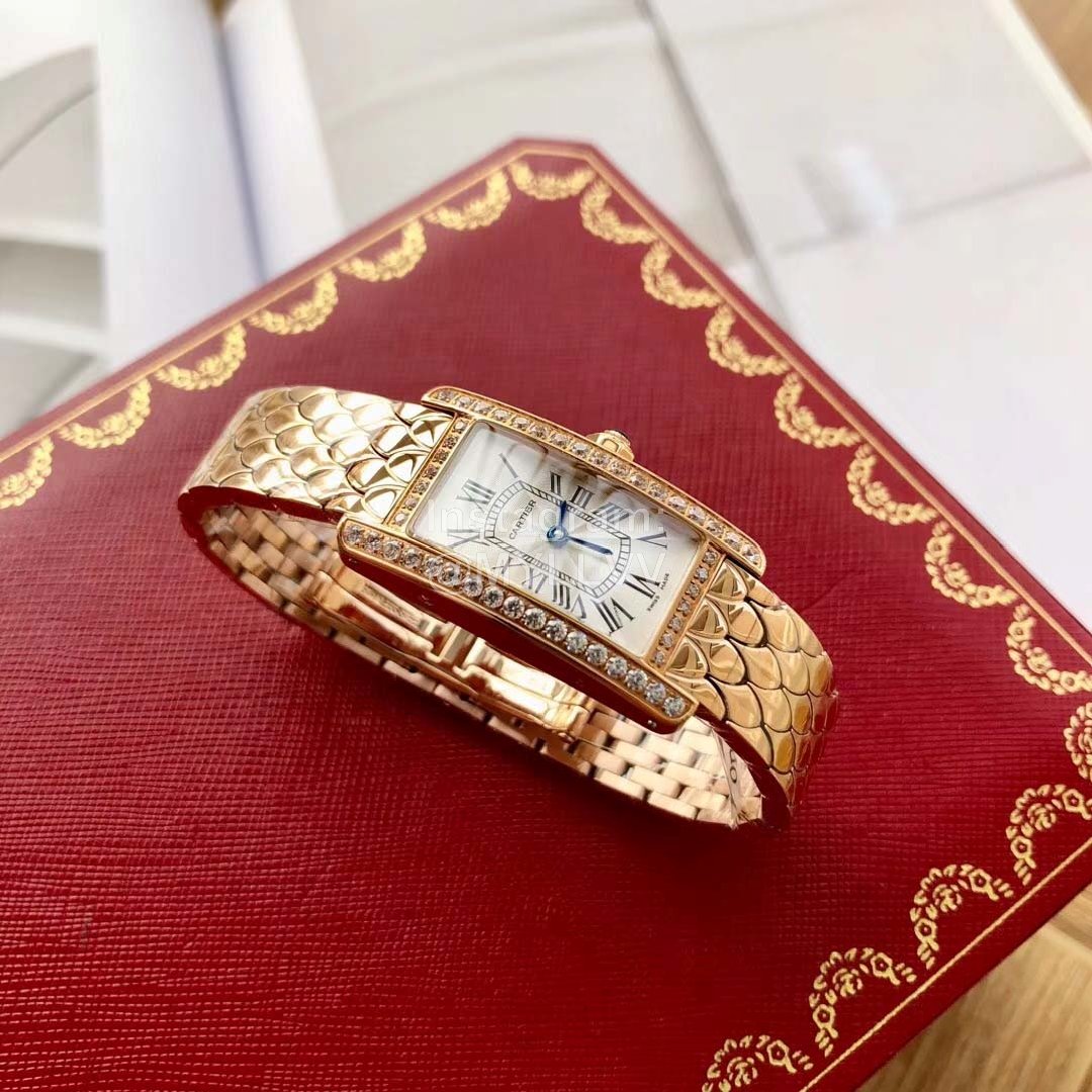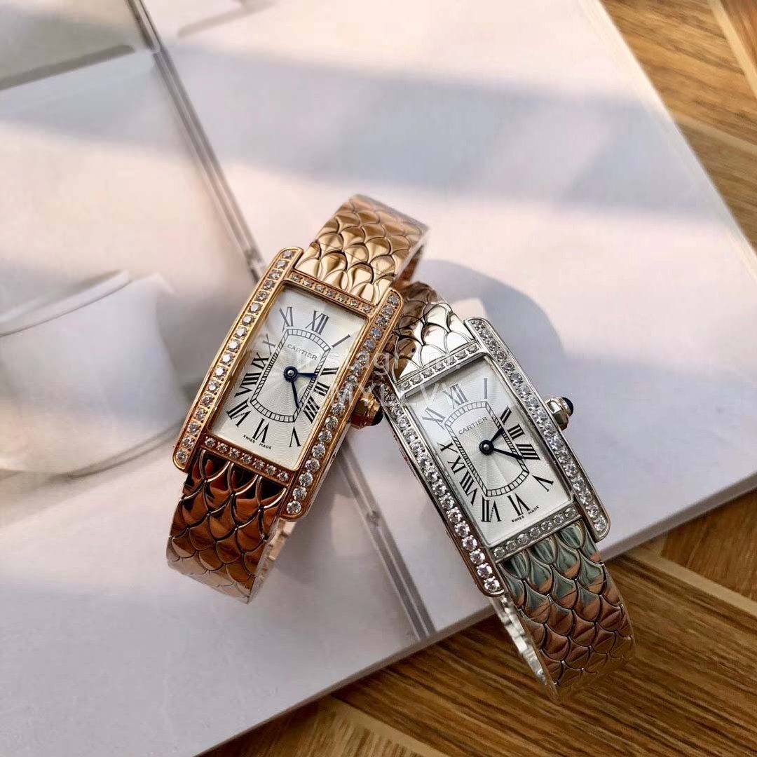 Cartier tank, with a size of 34.819mm, Swiss quartz movement, elegant temperament and omnipotent high adaptability, can fully invest in different life styles and cultural climate, and can be perfectly matched with almost any occasion, dress, lifestyle and atmosphere. Cartier tank watch was born in 1917. It was designed by Joseph himself and has been baptized for nearly 90 years. This series of wristwatches adopts 9-way sub caliber movement and gold case; The appearance concept comes from the parallel section of French Renault tank; The shape of tank track evolved into a bar perpendicular to the side of the watch case, which is used to install the horizontal bolt to fix the watch strap. Roman numeral, railway track scale ring, Breguet blue steel pointer, crown is pearl shaped & with spherical sapphire embedded on it. The product of the combination of war and aesthetics written by the master has become a constant norm for the future growth and development of tank & wristwatch. Tank series is the top model of Cartier’s creativity and the modern interpretation of square and rectangular watches. The circular lines of tank series are the first to predict the aesthetic rules of decorative art style, and its geometric design is the modern standard of aesthetics. The tank series with the ultimate essence of modern style is a victory display of pure elegance and eternal design. Tank watch is a symbol of lifestyle for many enthusiasts: they avoid luxury and boast and like simplicity and real elegance.