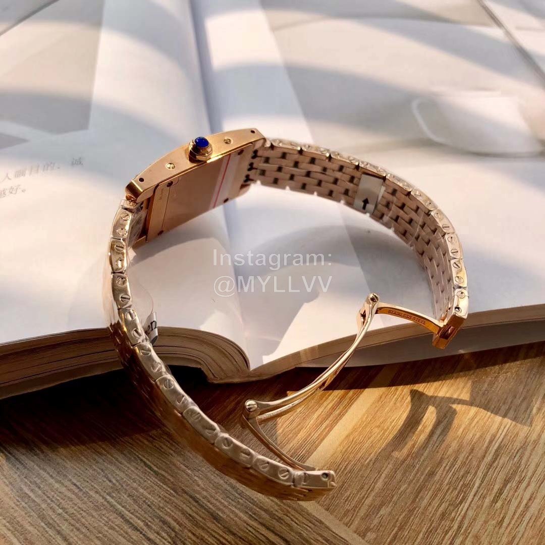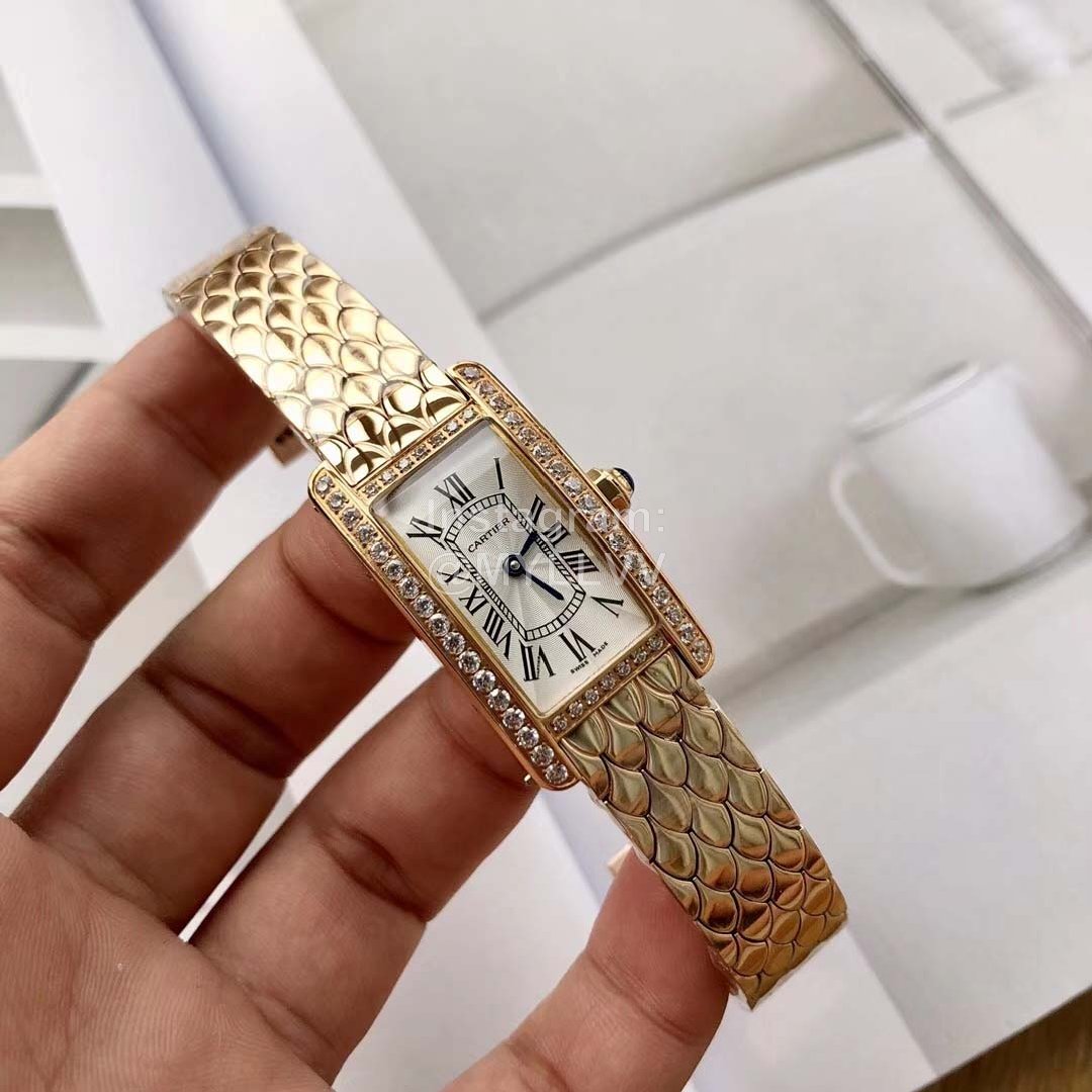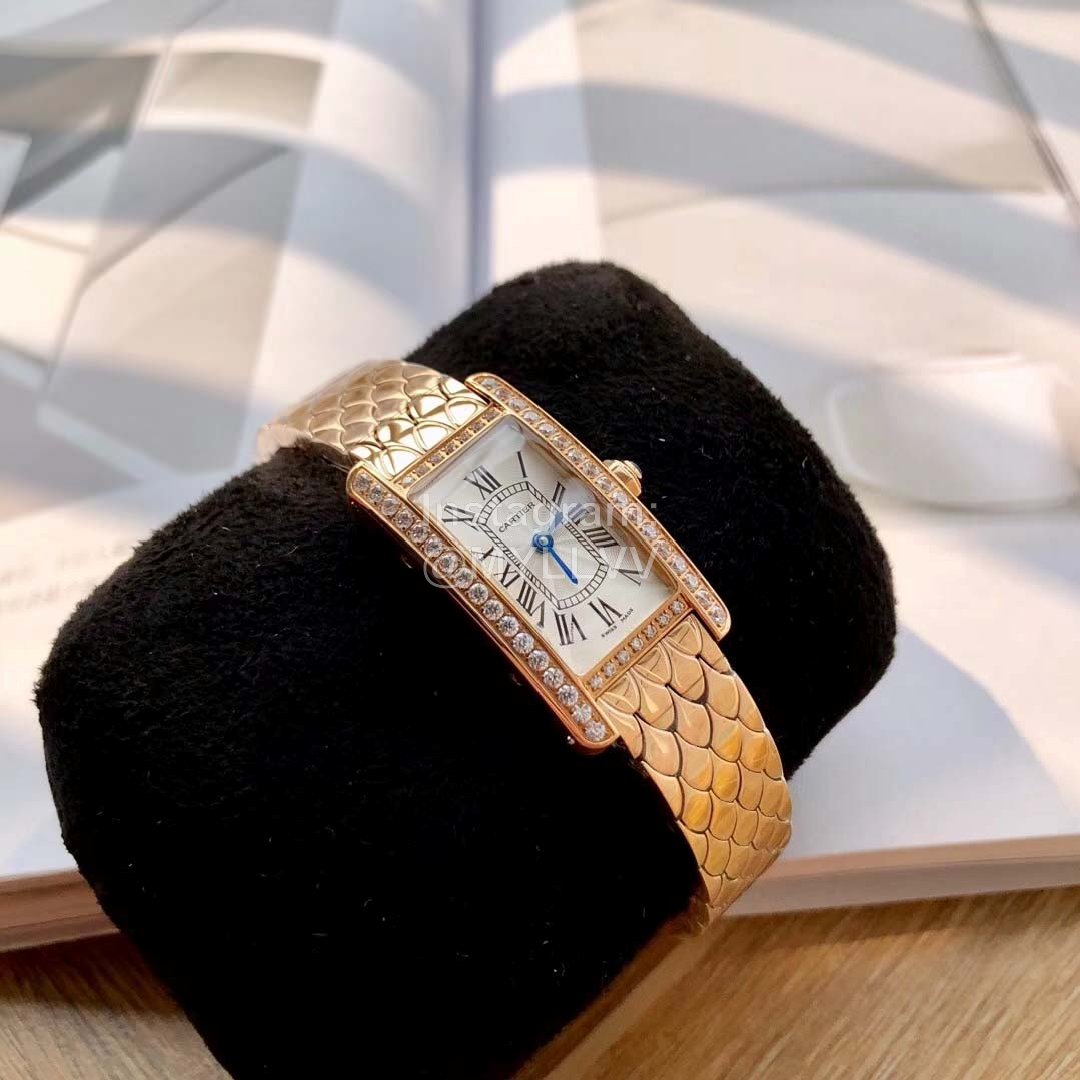 Cartier Tank Series Square Dial Steel Strap Diamond Watch Gold