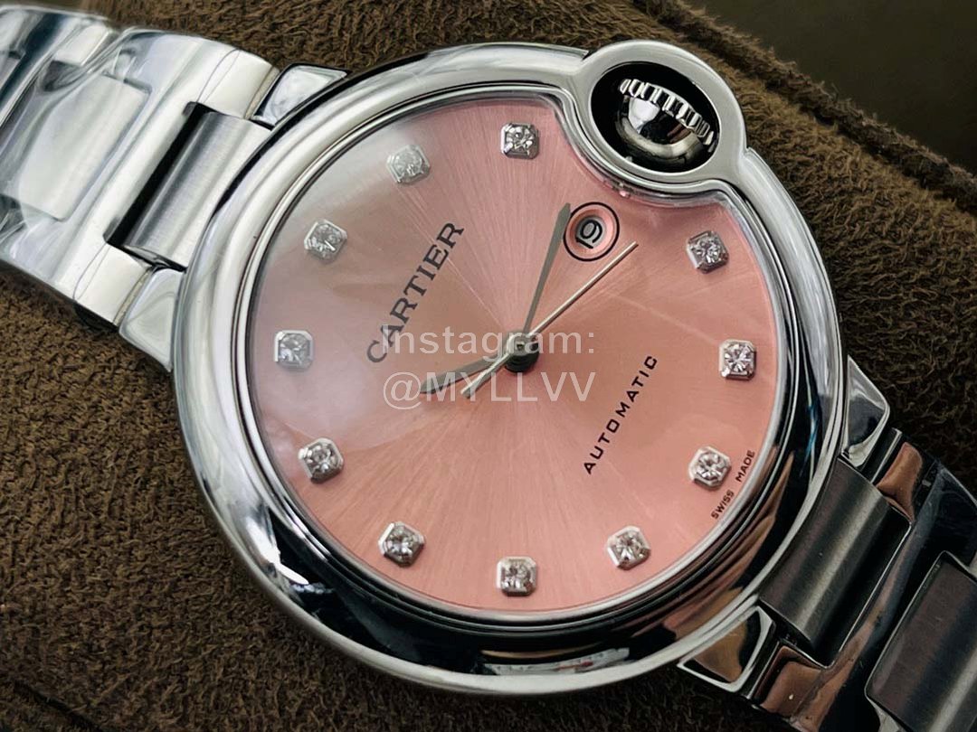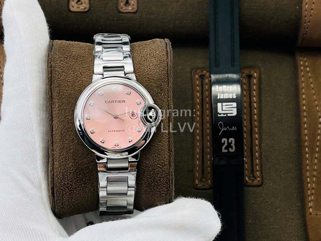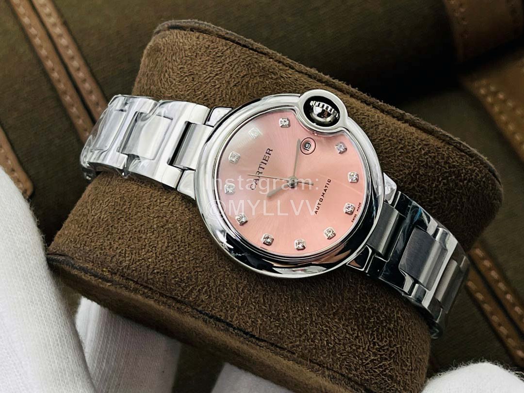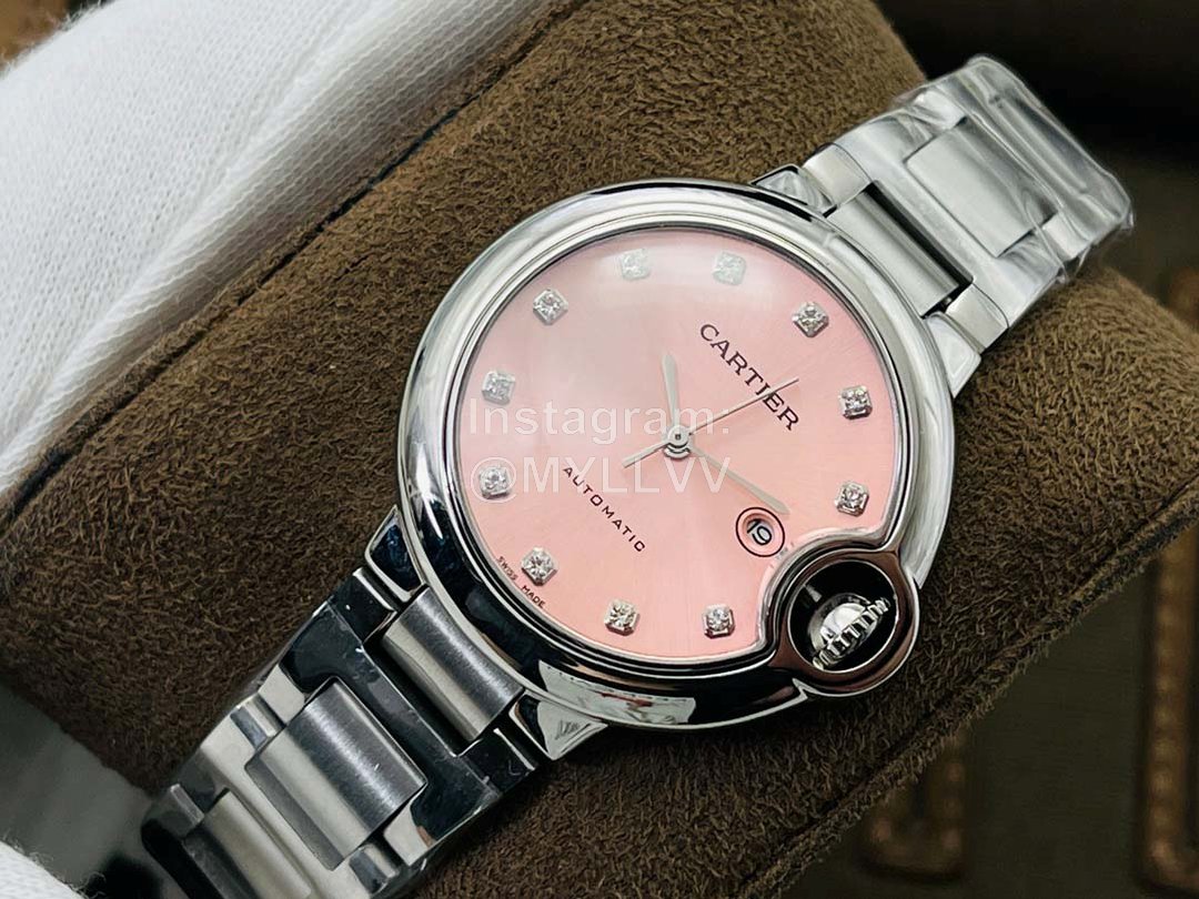 Cartier Tw Factory Silver Steel Strap Watch For Women Pink