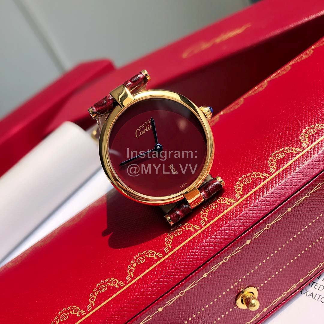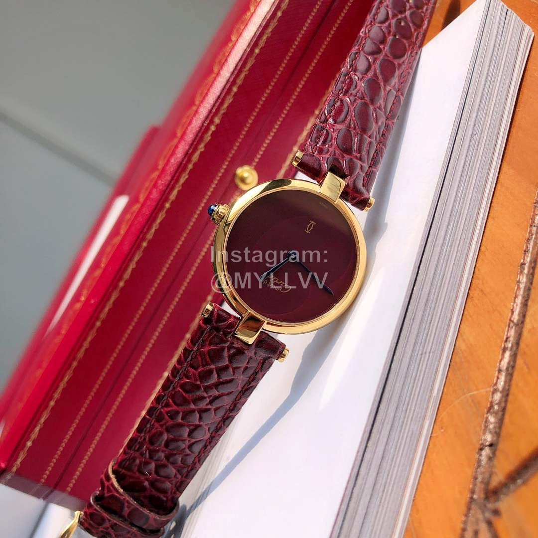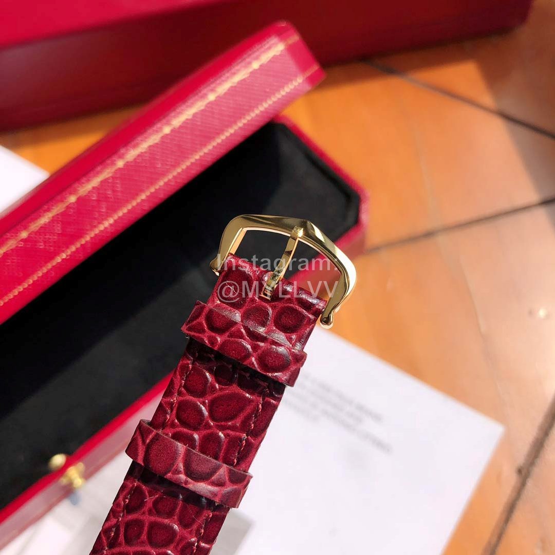Cartier Vintage Leather Strap Watch For Women Wine Red