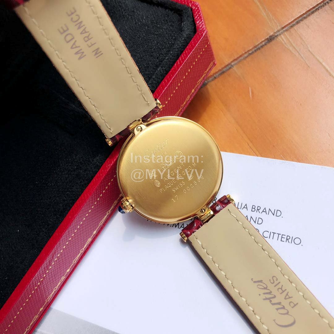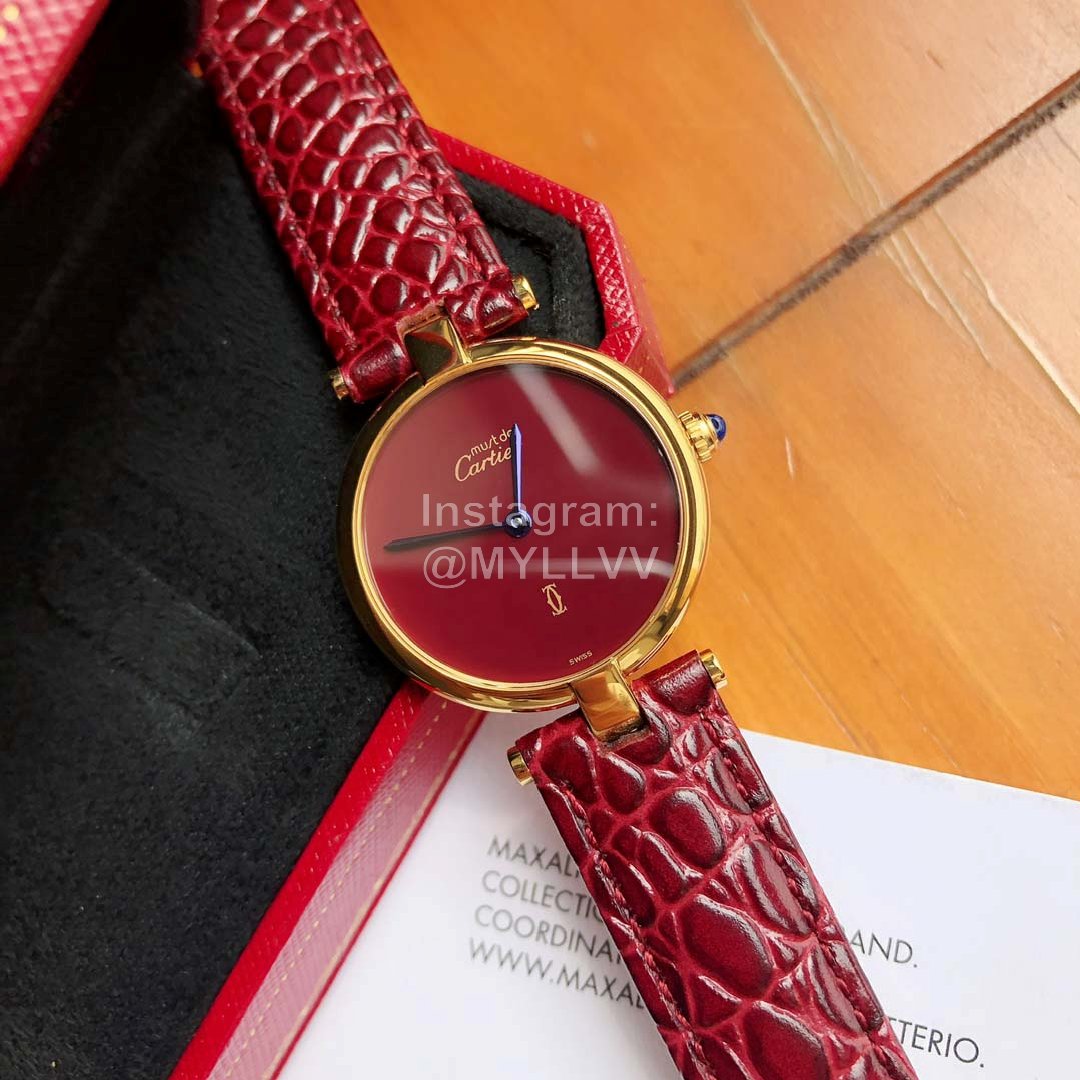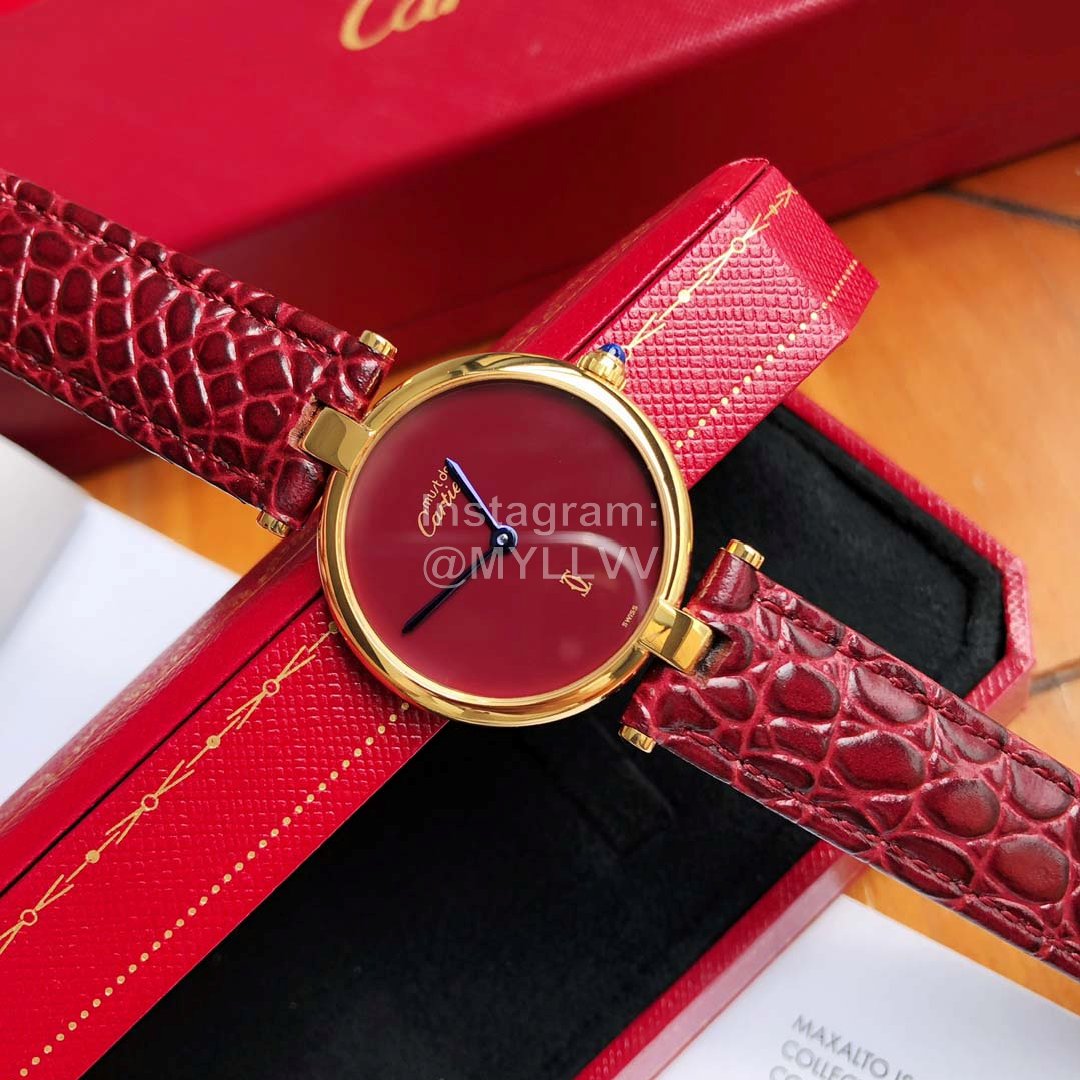 Cartier Vintage Leather Strap Watch For Women Wine Red