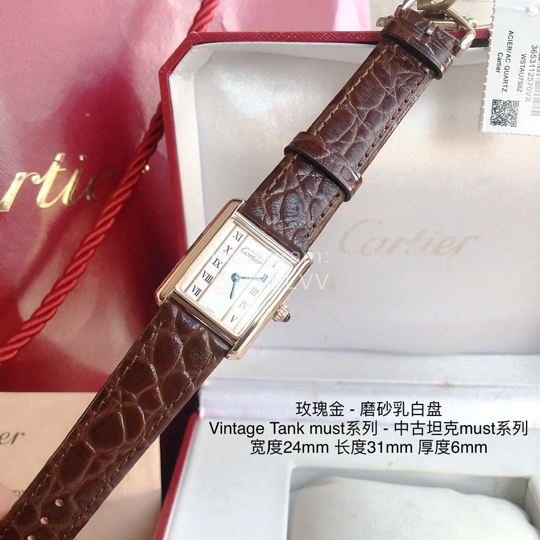 Vintage tank must series – a special plate in the medieval watch of the medieval tank must series. It is very rare. The retro cream plate is matched with the Roman numeral scales on both sides. Imported Swiss quartz movement, accurate travel time, 316L fine steel case, sapphire crystal mirror, 316L fine steel needle buckle buckle, Italian calf crocodile round grain strap (can be matched with crocodile American crocodile leather strap) case size: