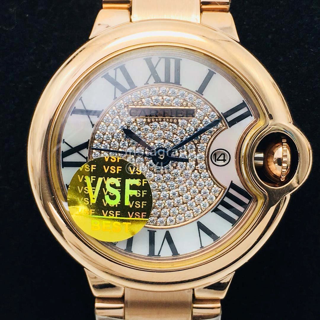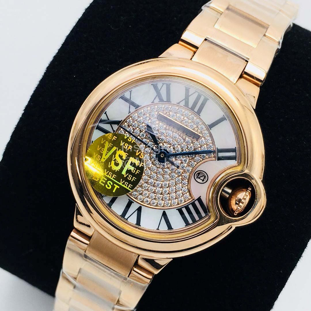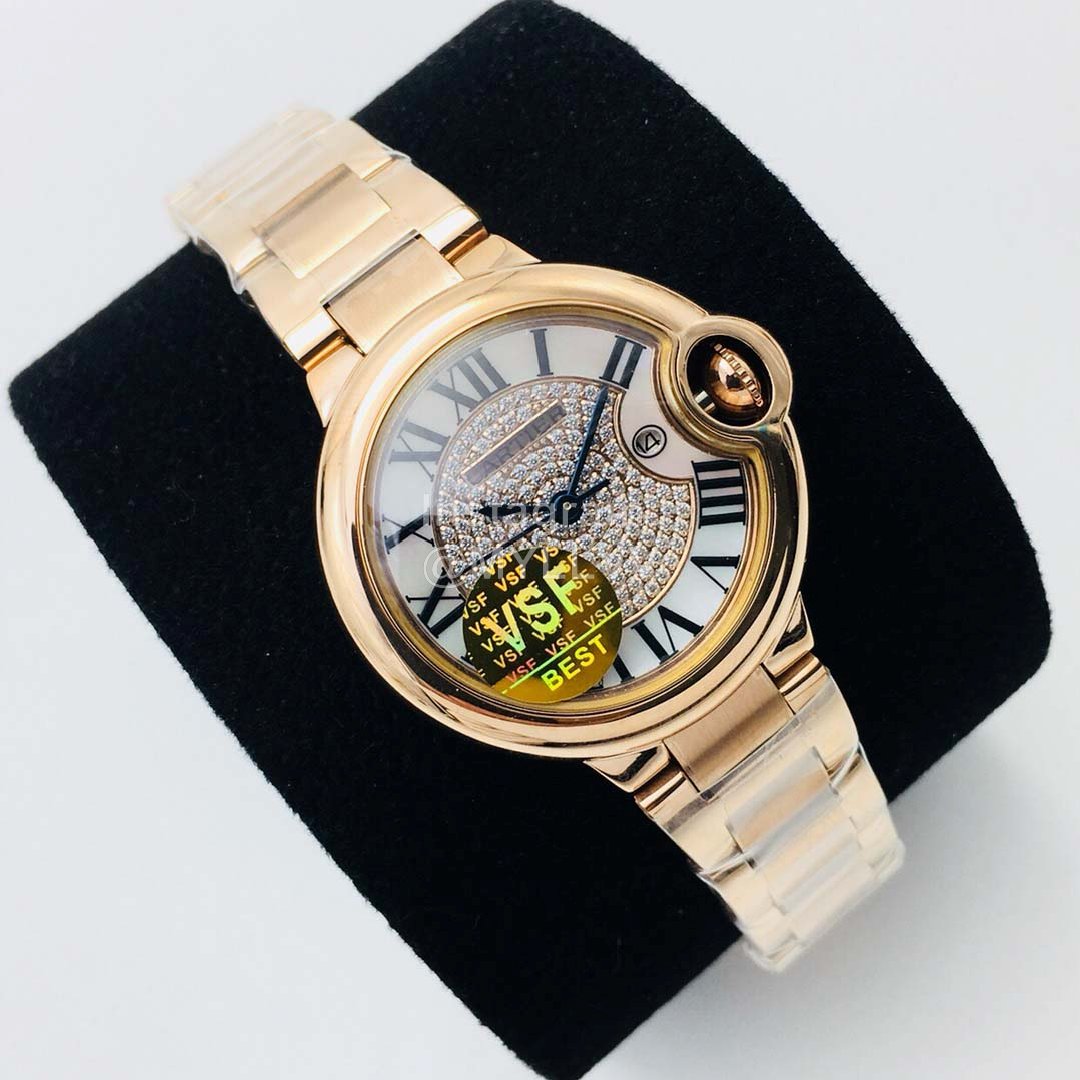 The new Cartier cartiet blue balloon Series in VSF factory market has a meaningful and elegant appearance design and is very popular with women. This watch has a diameter of 33mm and is very thin, which can set off a slender wrist. Both sides of the watch show a smooth curve. It is equipped with the original imported nh05 automatic mechanical movement. It is extremely luxurious to wear. It uses the original 316L fine steel shell cover. The simple and capable shell is polished finely to ensure that the polishing process is consistent with precision. The fish eye sapphire glass is super scratch resistant. The dial adopts a unique luxury Losch crystal diamond, and the pointer is treated with baking blue. Cartier creates a fashionable and avant-garde women’s watch with its own unique design aesthetics. VSF quality is worth having