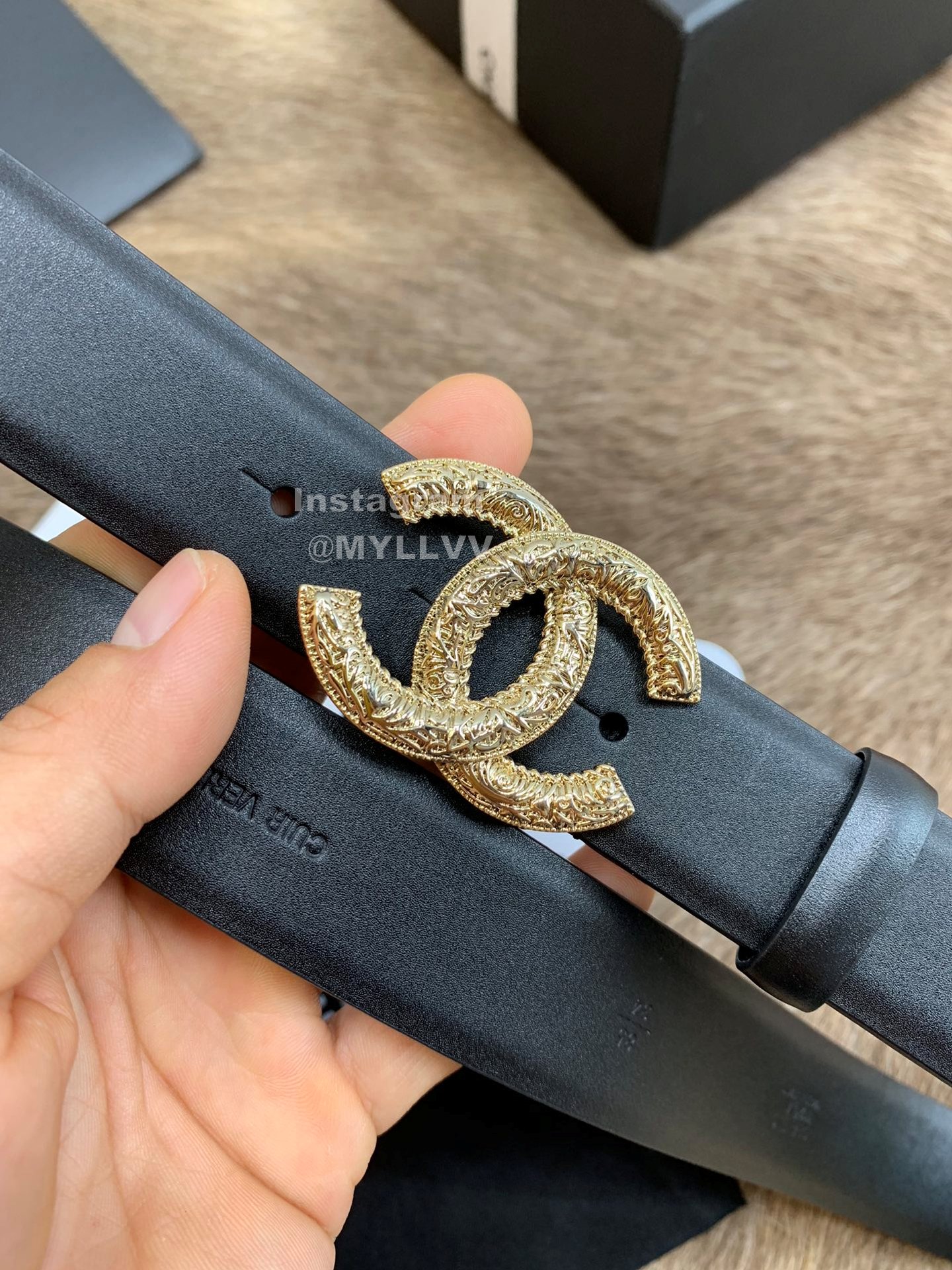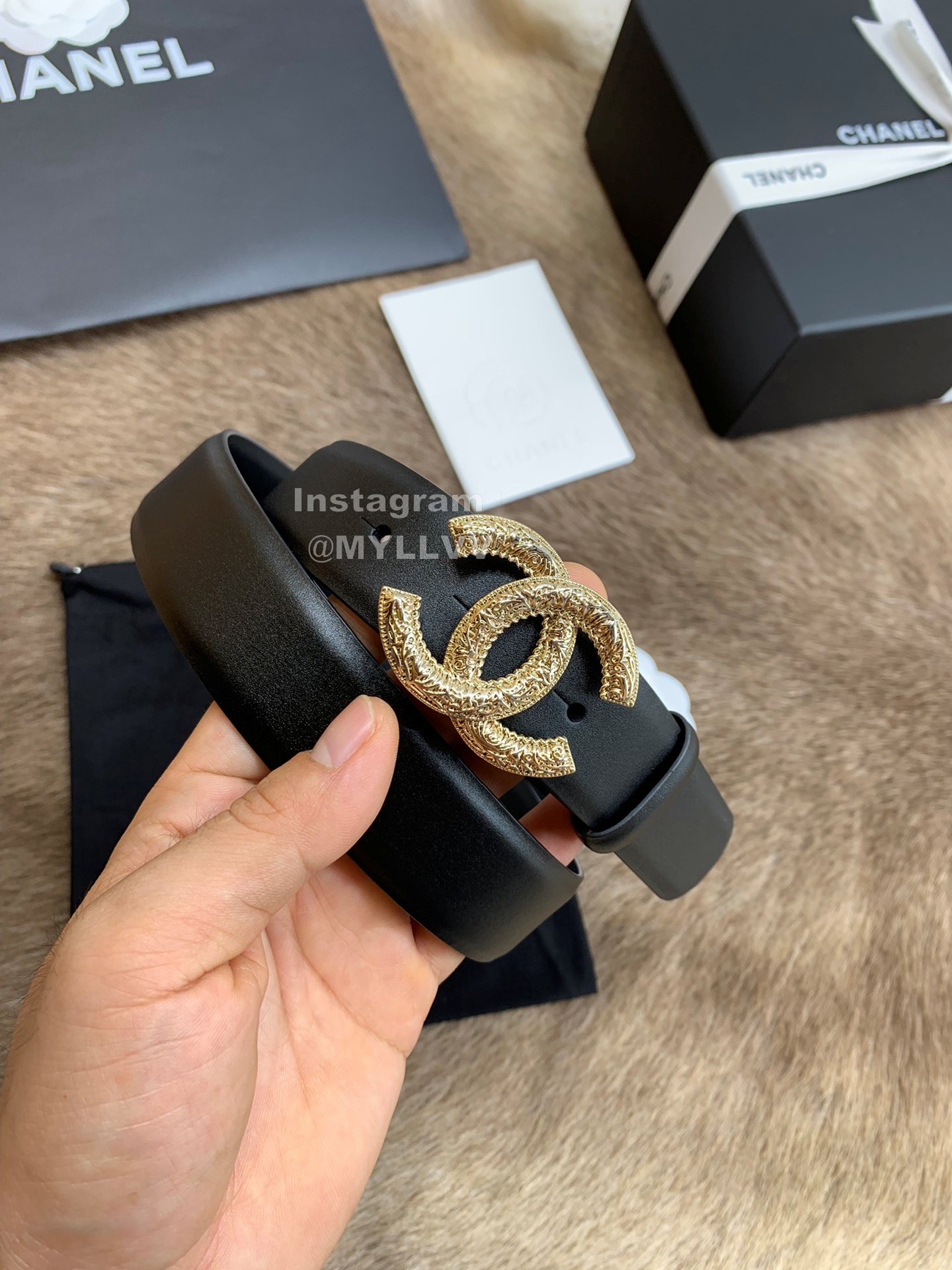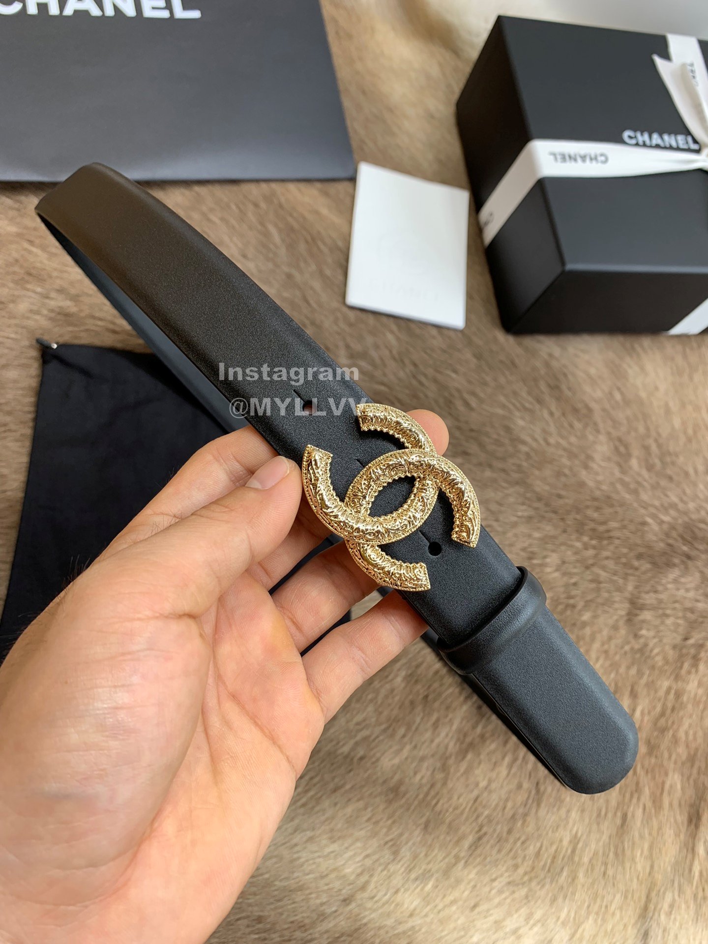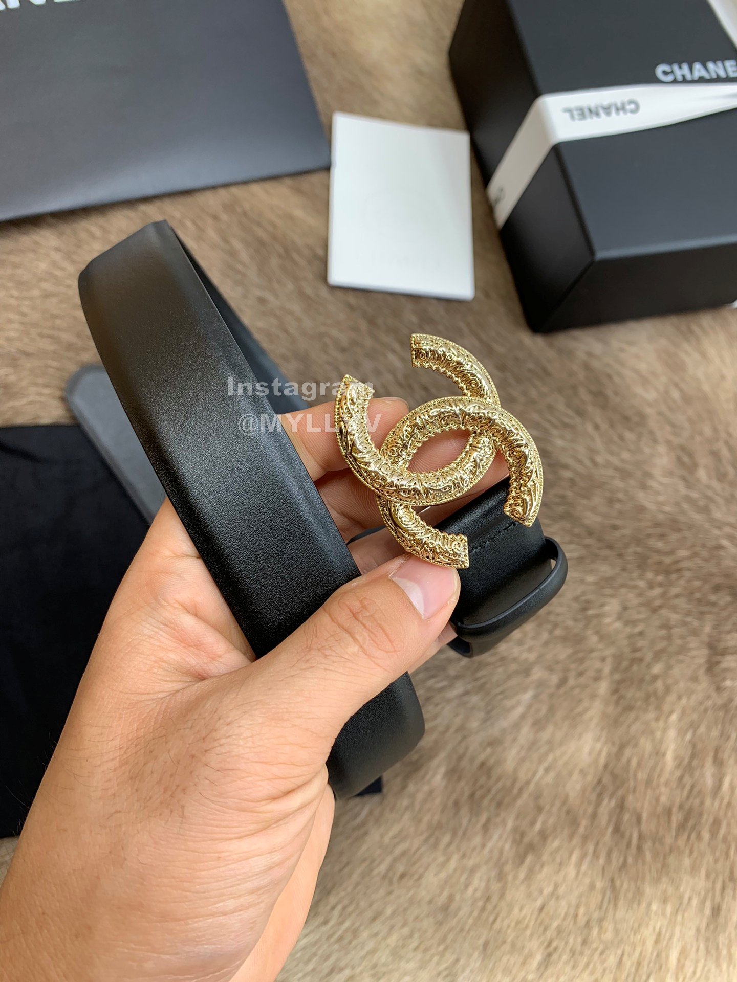 Chanel New Calf Leather Gold Buckle 30mm Black Belts For Women