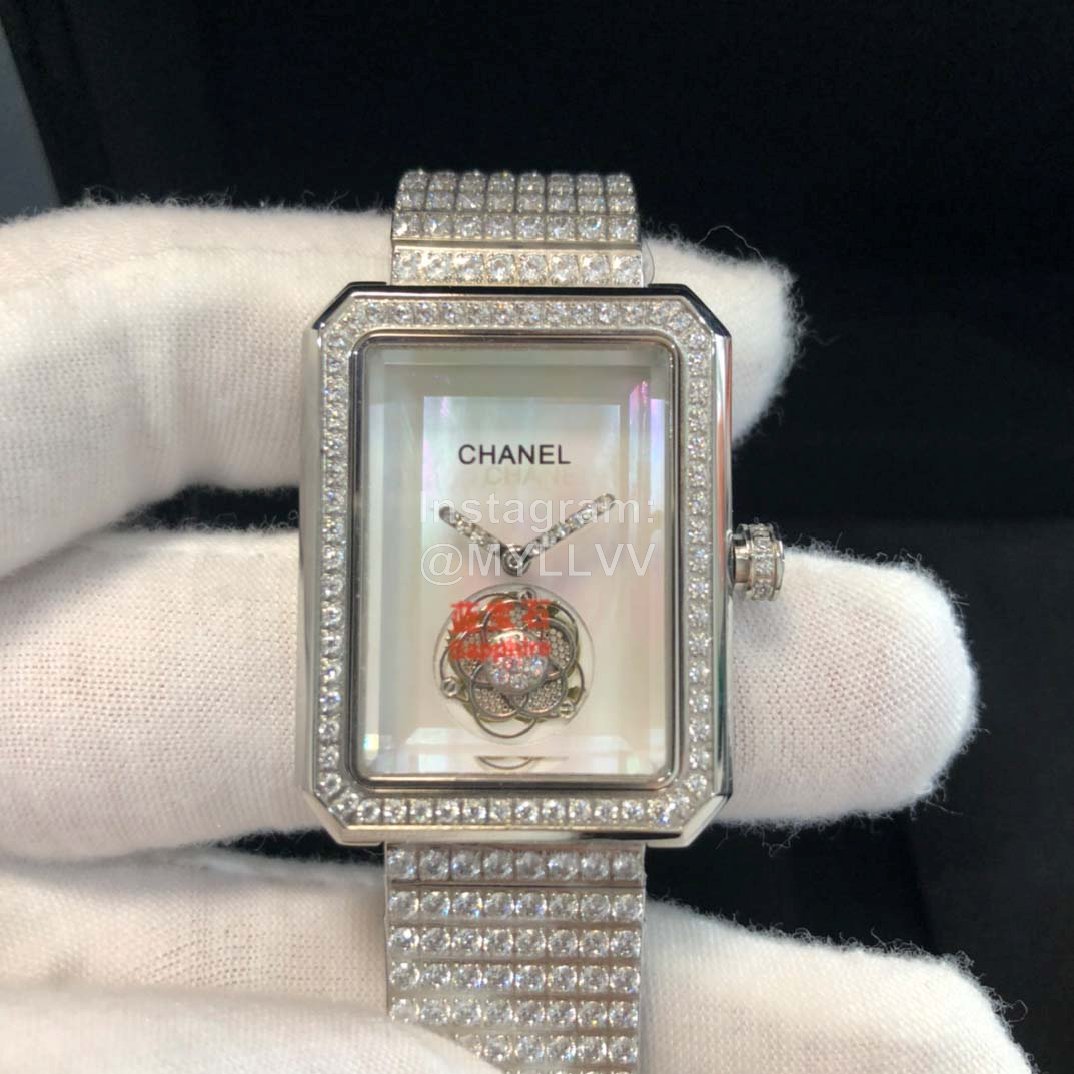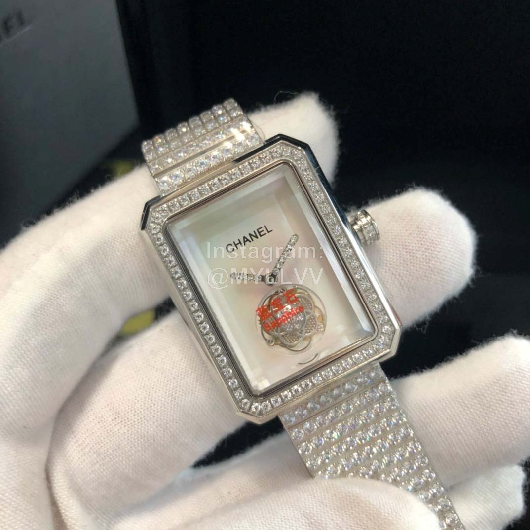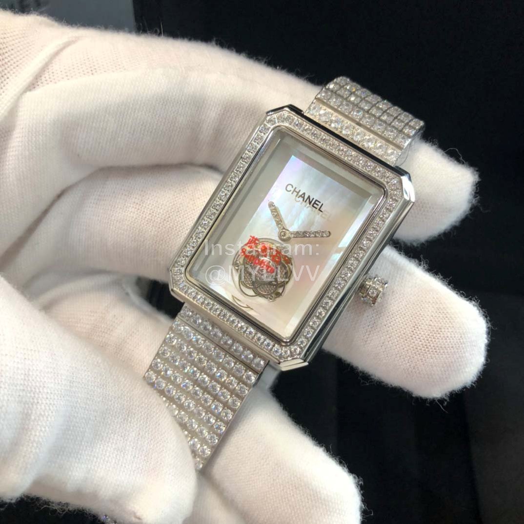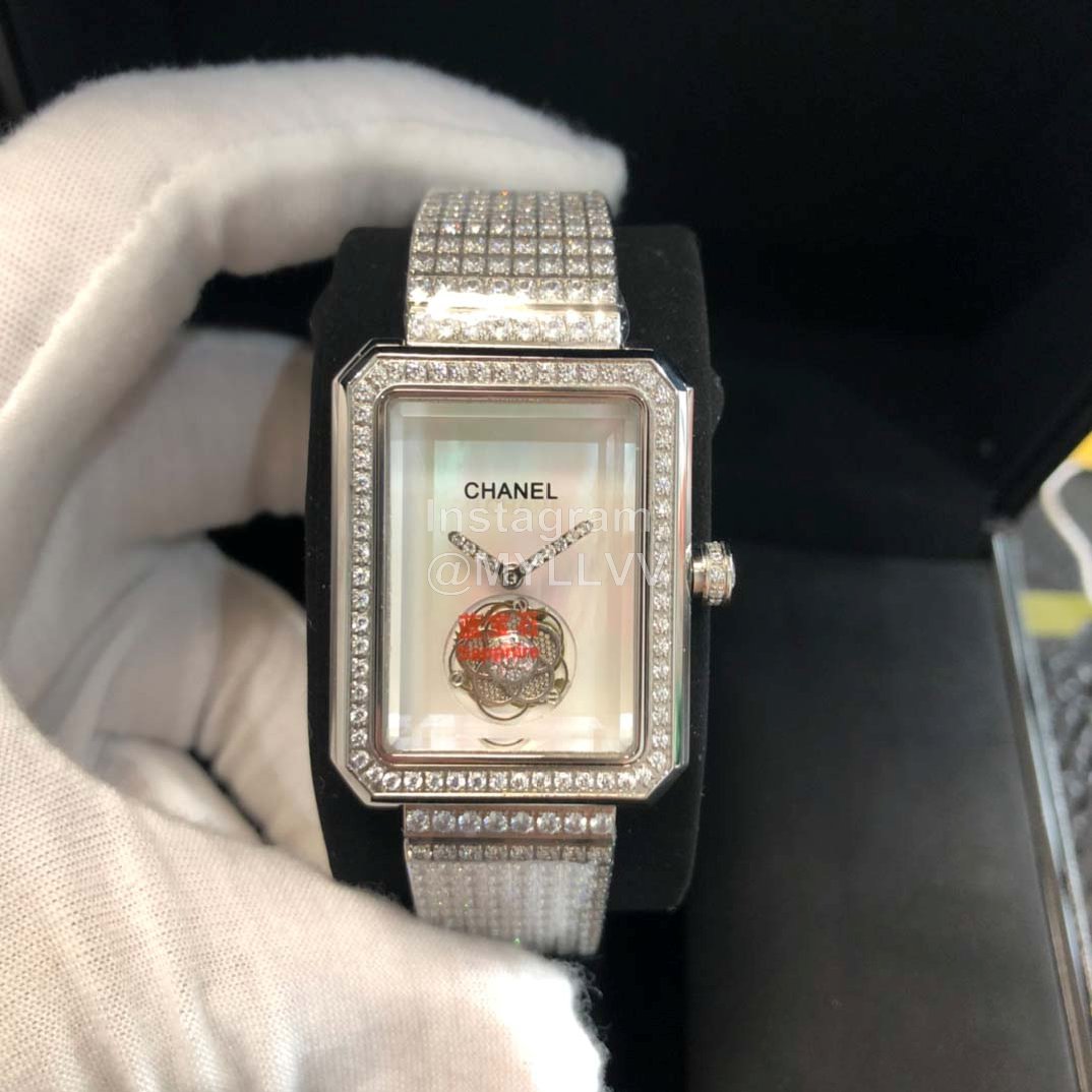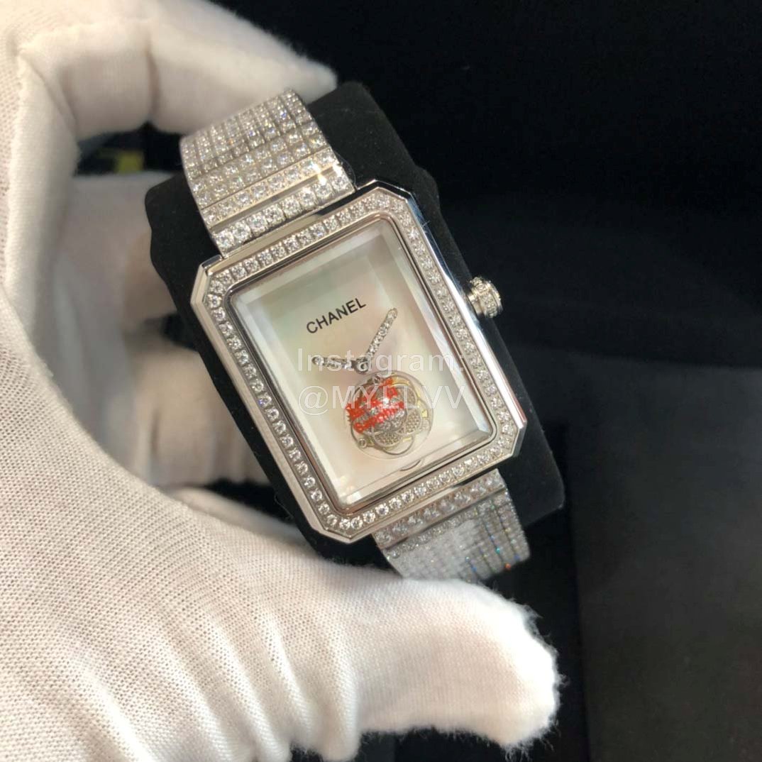 Chanel, Premier series Camellia hollow out wristwatch counter high-end highest quality version Chanel premier series, unique Camellia flywheel design. In order to be closer to the original watch case, watch needle, watch buckle and watch crown, bright cutting gemstones are inlaid with unique technology to highlight the temperament. The case is 2734mm, and the mirror adopts 3D cutting beveled sapphire glass. Equipped with Chanel homemade movement calibre 2 Camellia petals unfold gracefully on the movement. The classic totem of Chanel brand is combined with advanced watchmaking skills. The case uses the outline of Fangdeng square in Paris, the capital of fashion. The geometric hollowed movement outlines the elegant black power of Camellia, just as Coco Chanel said that it can sweep all things. The charming charm of this diamond shining black premi è re hollowed Camellia wristwatch have no bottom!