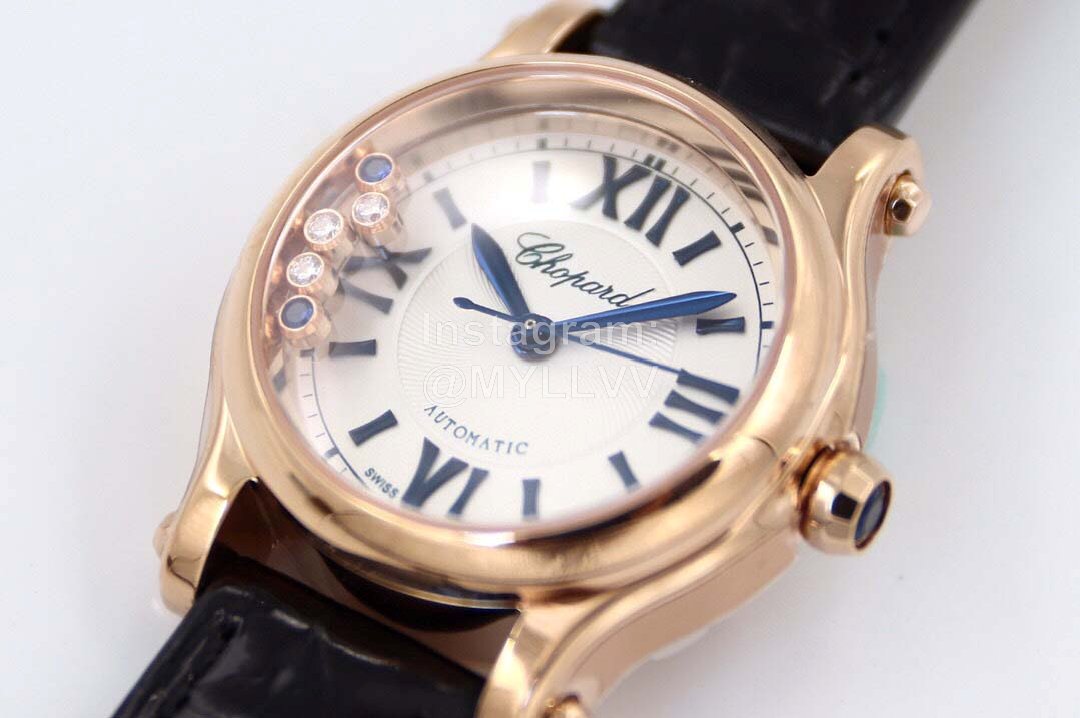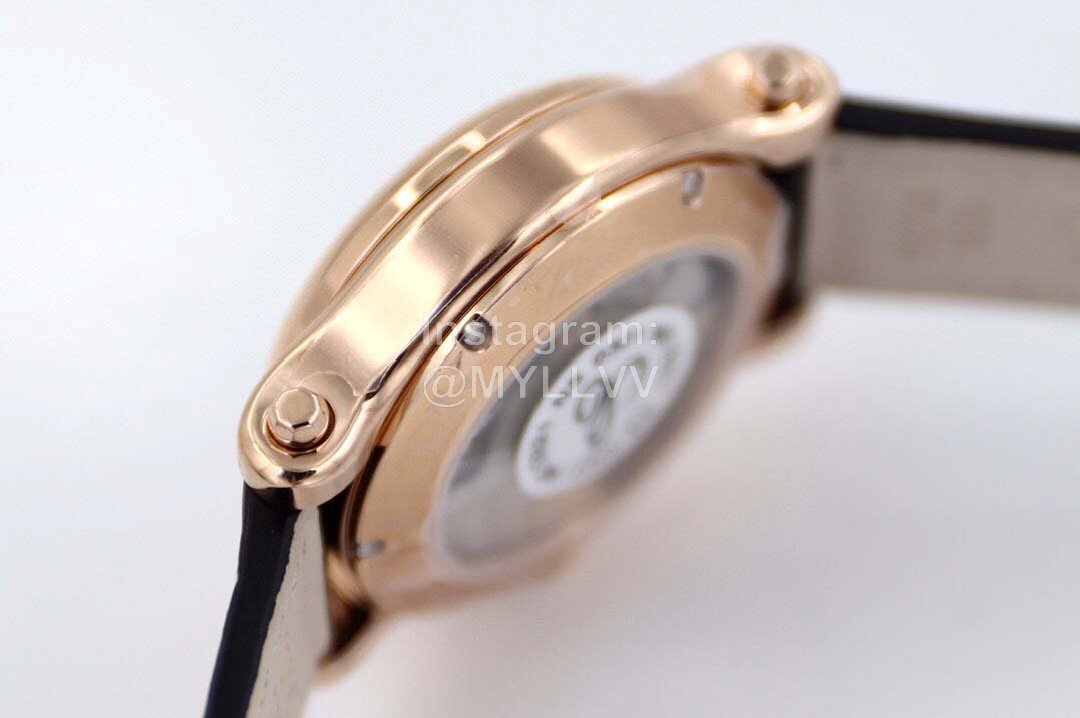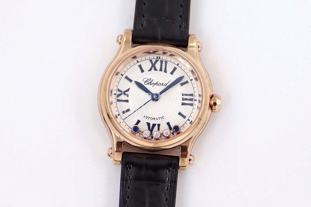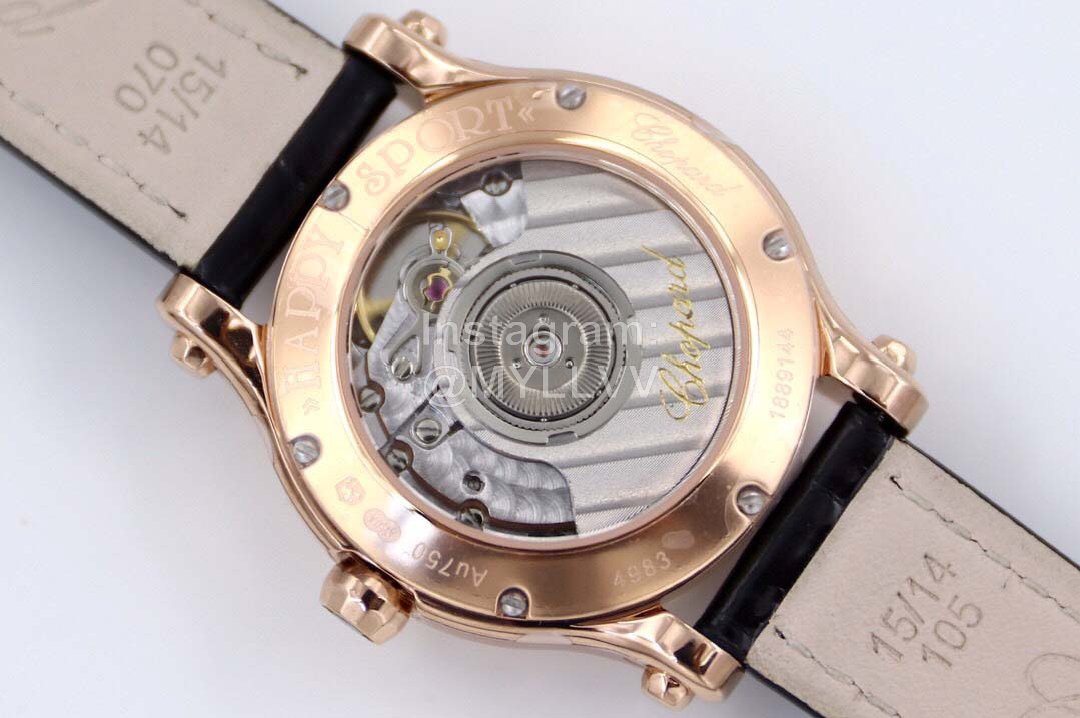 Chopard Happy Sport Series Diamond Black Leather Strap Watch