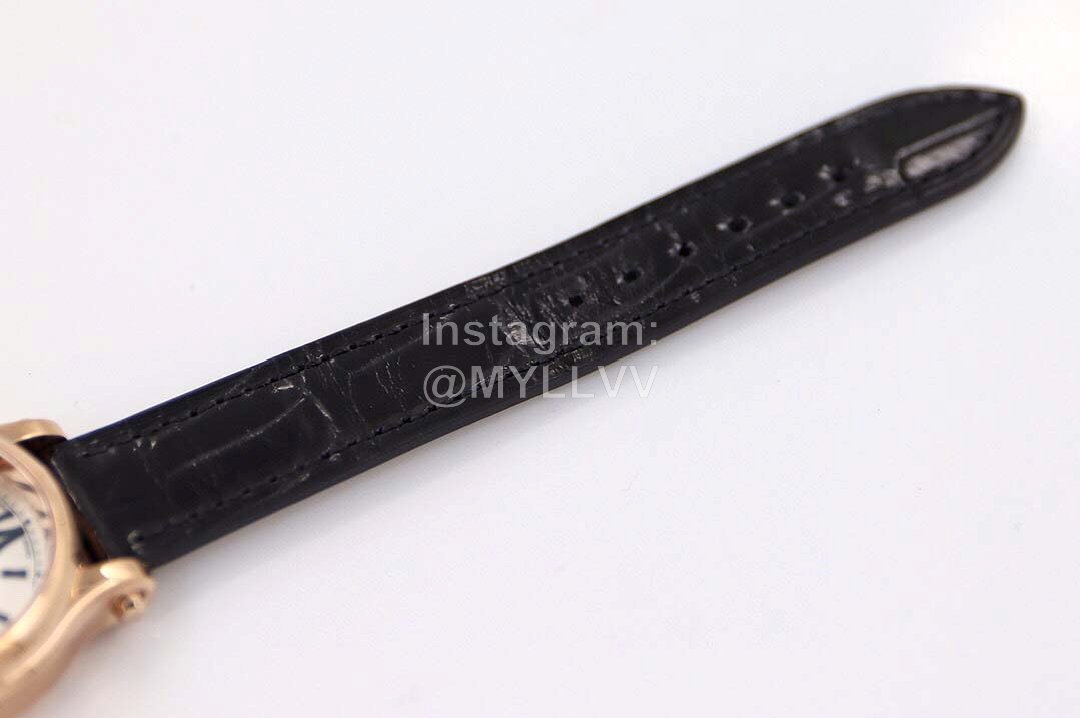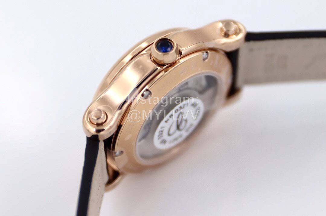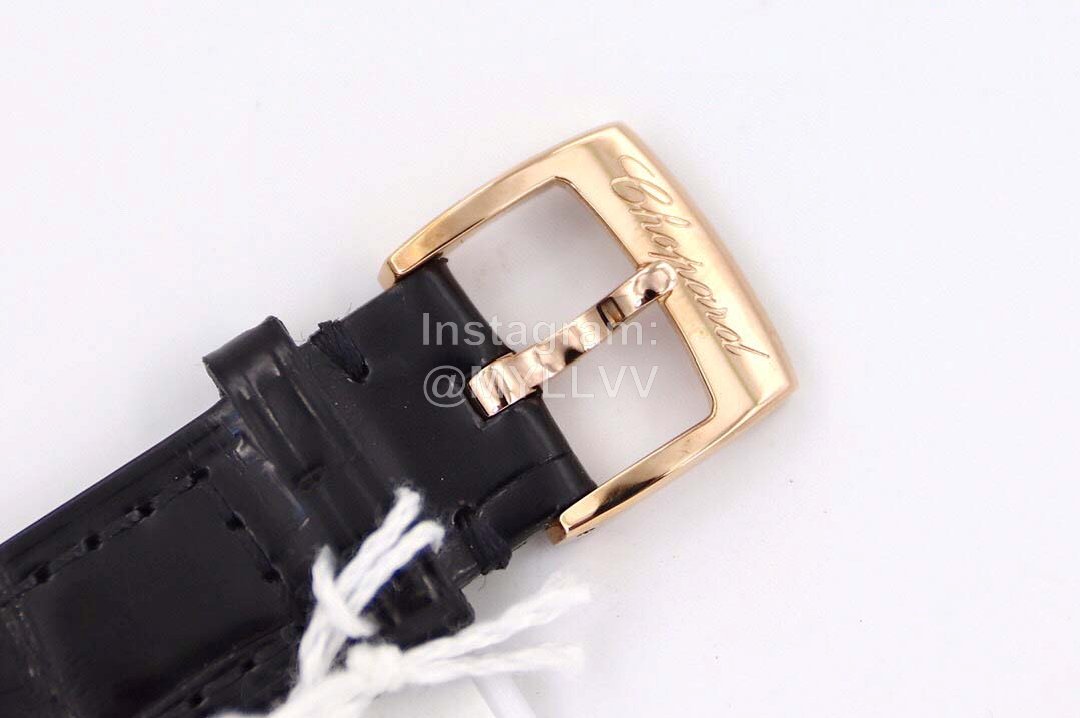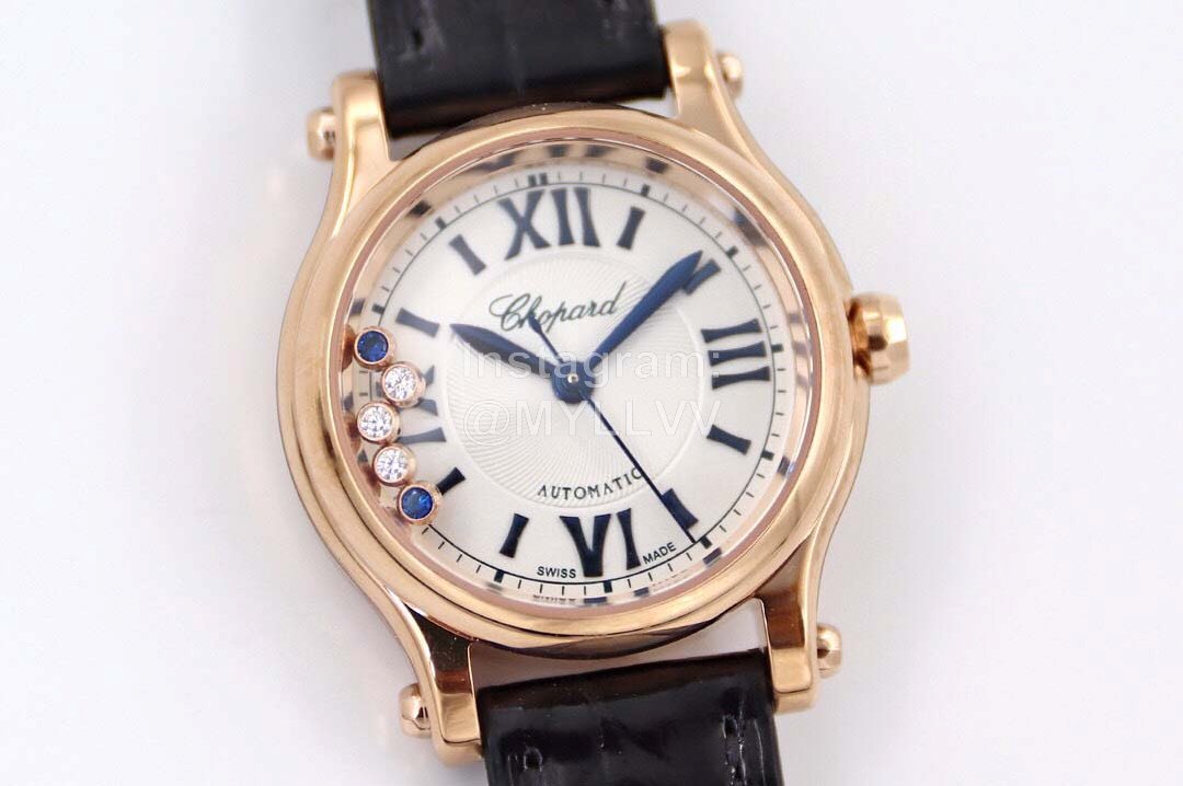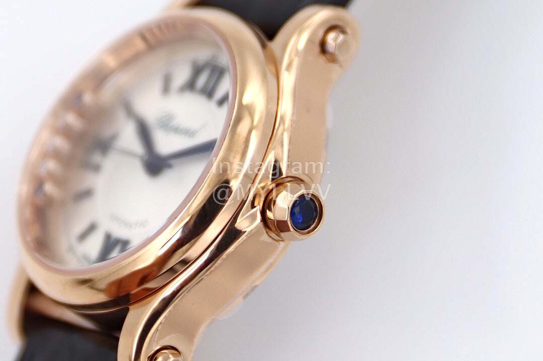 Chopard Happy Sport Series Diamond Black Leather Strap Watch