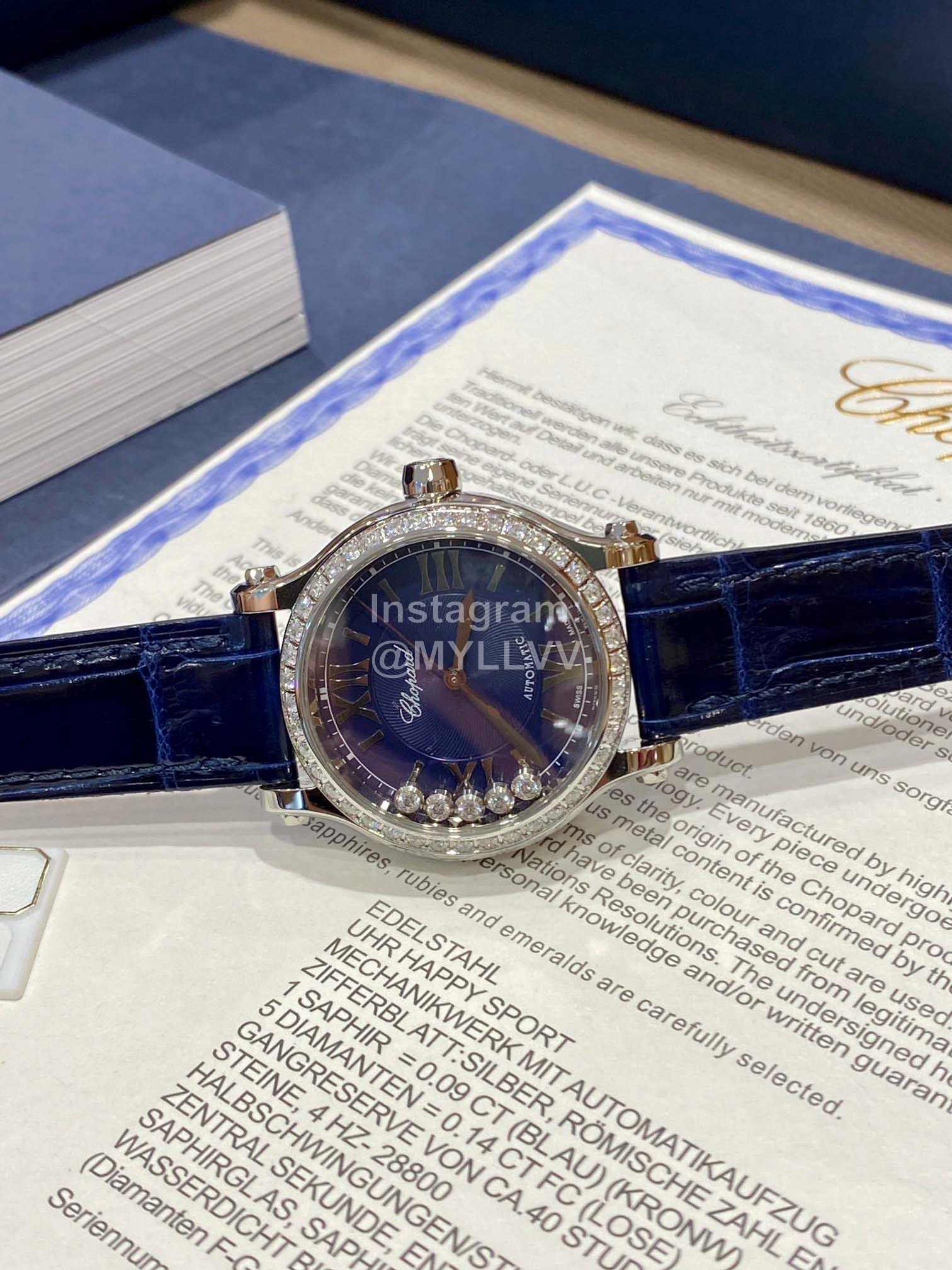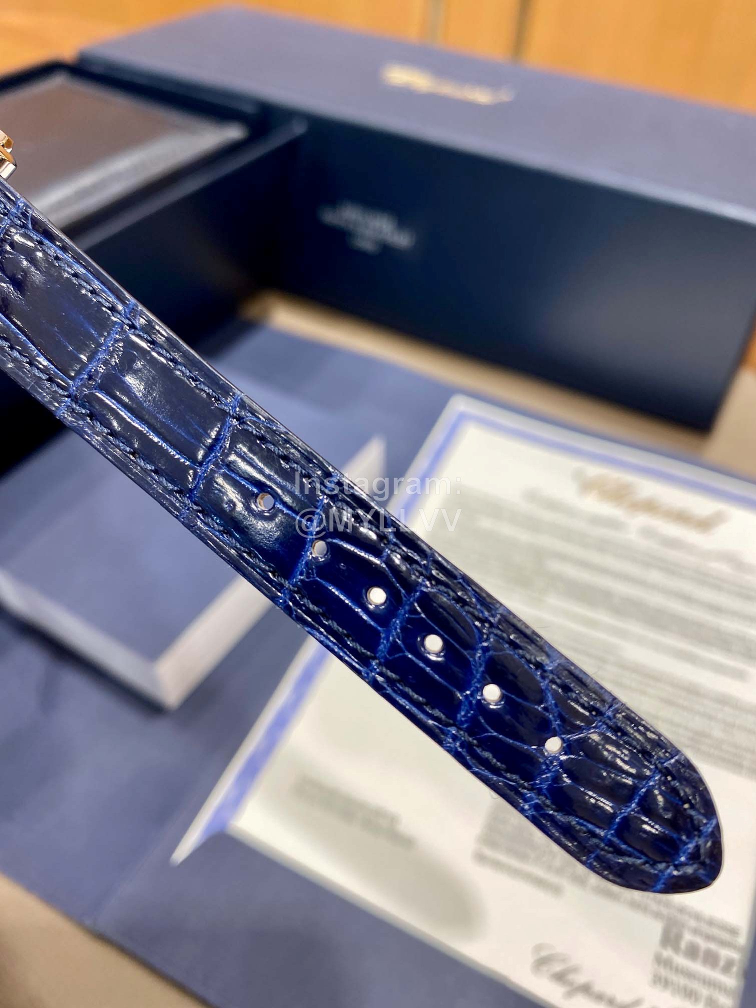 Chopard Happysport Roman Numeral Dial Leather Strap Watch Navy