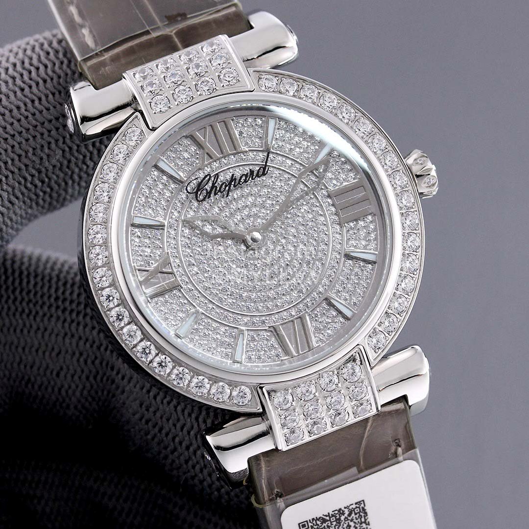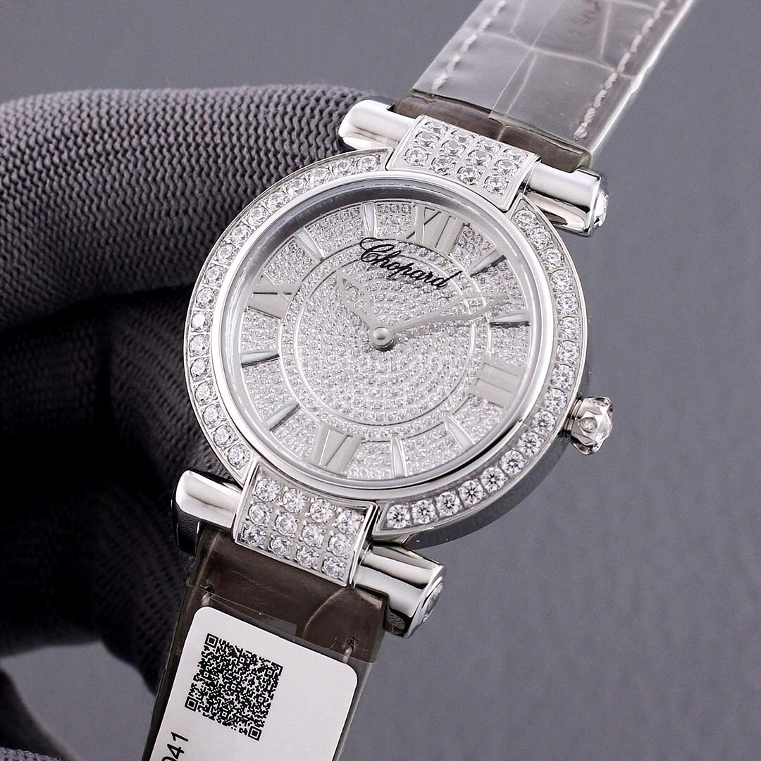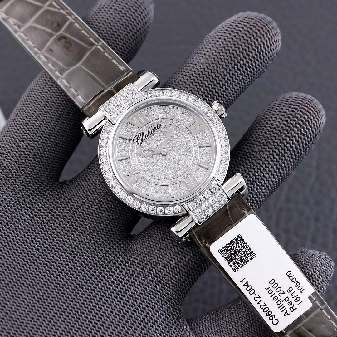 Chopin is not a strange name. Our first impression is that the talented and famous pianist brings people artistic touch and joy. As for Chopin watch impepiale series, she also endows herself with nobility and classics. It is the pinnacle of Chopin series. Impepiale gives you the taste of royalty and immortal classics and surprises, The ingenious combination of the four piece set, especially the close adhesion of the upper and lower ear positions to the watch body, and the four invisible screws fix the soul of the whole watch. Only because of the cutting of the steel body, the four drops of water stone on the ear position are transparent and full, forming an overall surrounding with the same color as the headstone. The characteristic color of the dial is a clear sense of hierarchy, The watch needle is the key to lead this style. It matches the dial design and the shape of the whole watch, crocodile skin! Size 36mm.