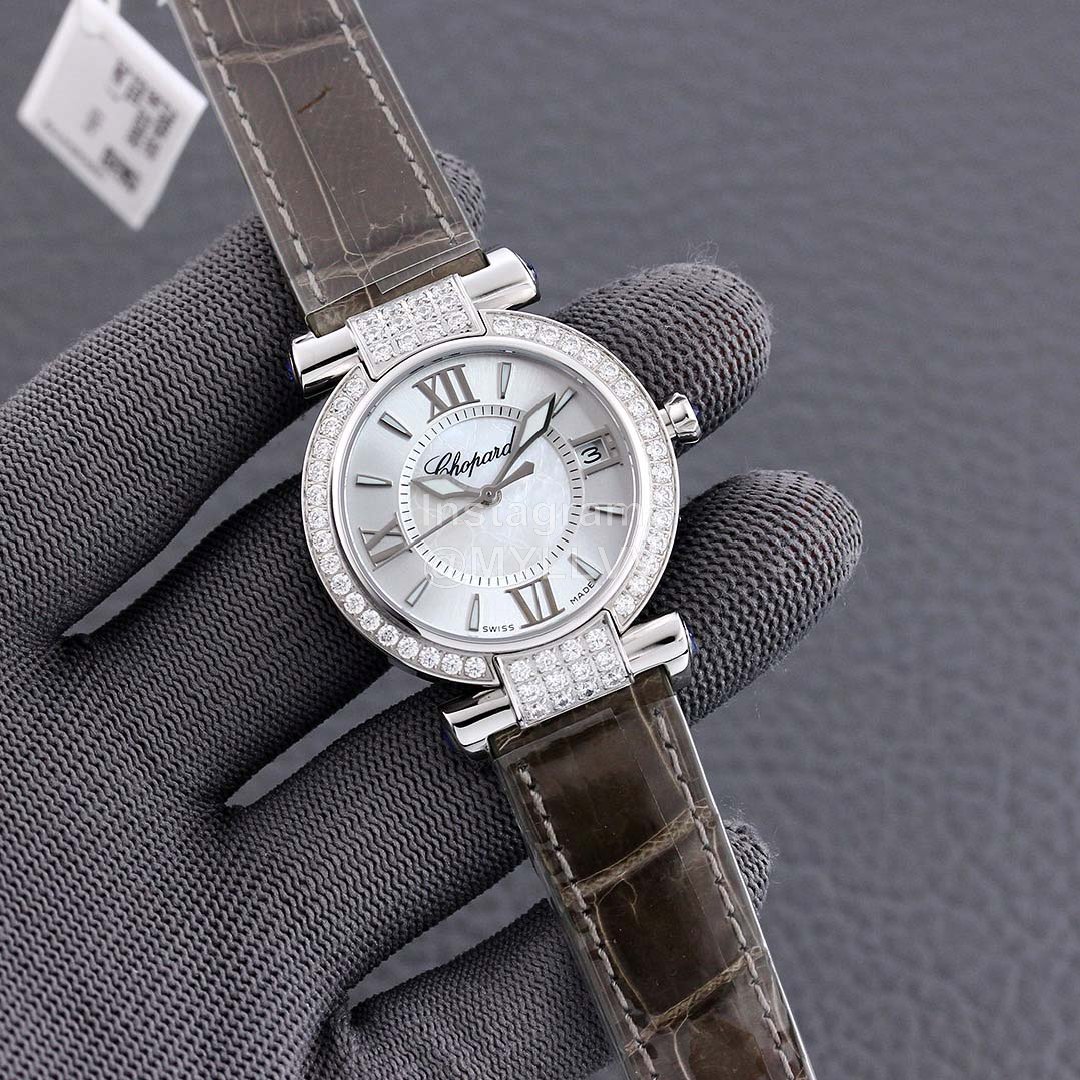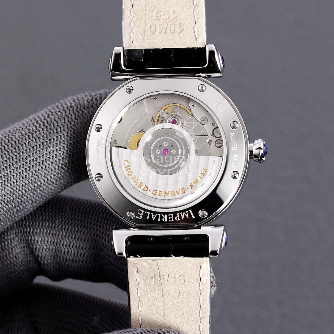 Chopin is not a strange name. Our first impression is that the talented and famous pianist brings people artistic touch and joy. As for Chopin watch impepiale series, she also endows herself with nobility and classics. It is the pinnacle of Chopin series. Impepiale gives you the taste of royalty and immortal classics and surprises, The ingenious combination of the four piece set, especially the close adhesion of the upper and lower ear positions to the watch body, and the four invisible screws fix the soul of the whole watch. Only because of the cutting of the steel body, the four drops of water stone on the ear position are transparent and full, forming an overall surrounding with the same color as the headstone. The characteristic color of the dial is a clear sense of hierarchy, The watch needle is the key to lead this style. It matches the dial design and the shape of the whole watch, crocodile skin! Size 36mm.