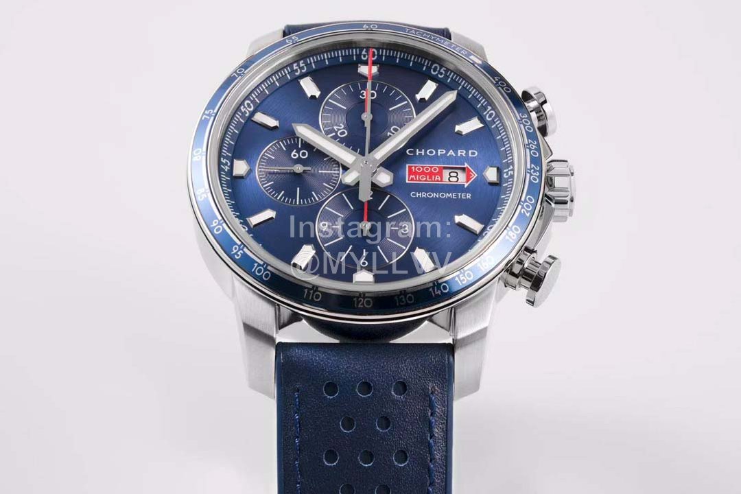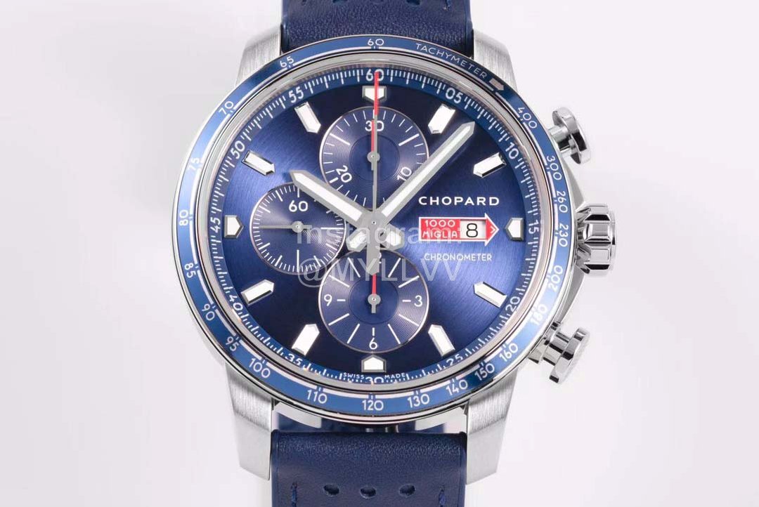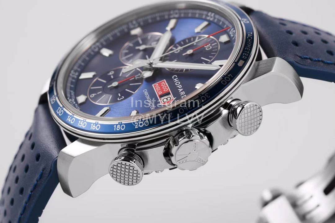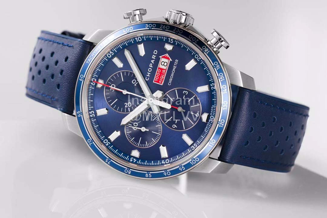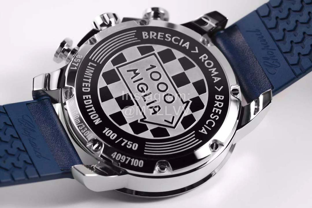Equipped with 7750 automatic chain movement, the power reserve is 48 hours. The checkered pattern of racing flag is engraved on the bottom of the fine steel watch, and the arrow mark of Mille Miglia is decorated in the center.