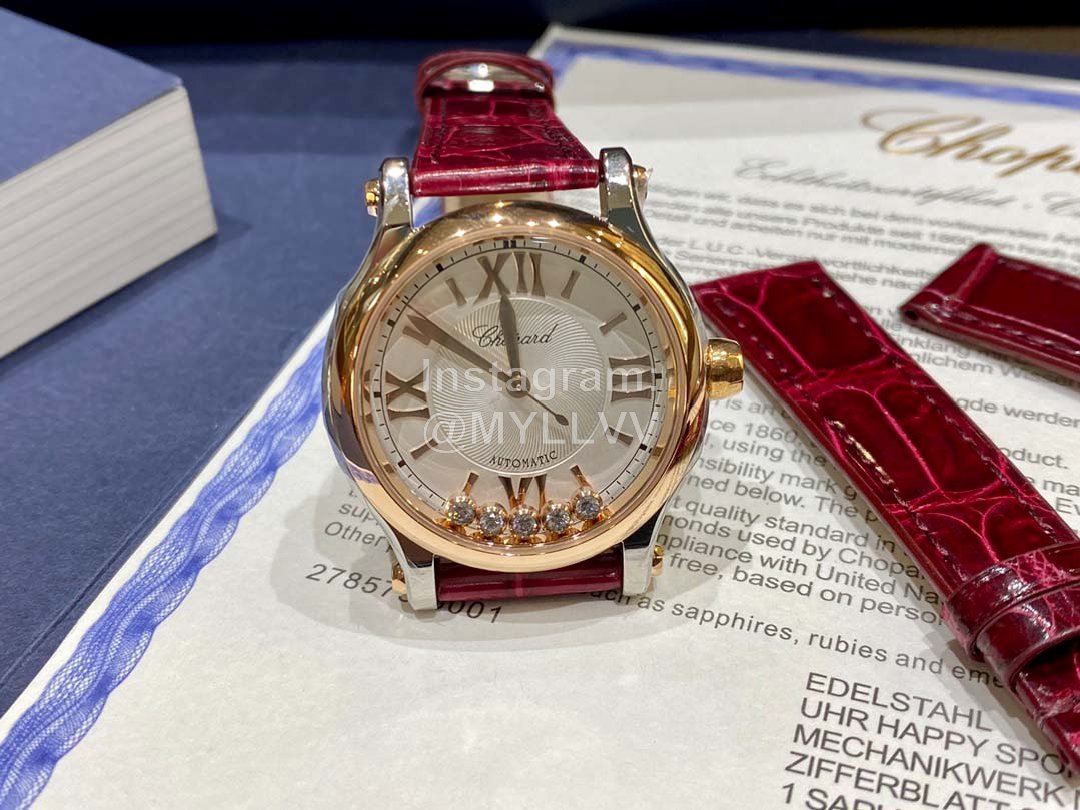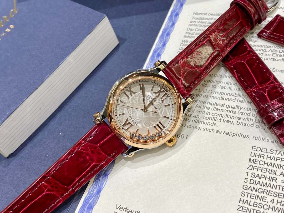The latest size of the counter produced by HW factory is 33mm! The previous 30 is too small and 36 is too large. Now you don’t have to worry about the size. You’re happy! The Swiss shell factory grinds the fine shell sleeve and dances the happy diamond “with gold and diamond” which means making progress and making money. The diamond is long-lasting, and the diamond inlaid ball in the middle can slide freely. Every detail is perfectly restored to the original! Chopard Chopin’s classic masterpiece, a 33mm diameter watch case inspired by the golden ratio, is made of standard 18k rose gold and equipped with an imported 9039 movement to restore the original design without calendar! Movement stable zero repair! Show a unique personality. The happysport watch has witnessed Chopard Chopin’s commitment to sustainable luxury development. The beige dial is warm and shiny, the crocodile skin watch band is around the wrist, and the sapphire inlaid on the crown becomes the finishing touch of this exquisite timepiece. It is amazing. It contains rich meaning and powerful power, which echoes with the perfect proportion of happysport watch. The 33mm diameter case draws inspiration from the golden proportion, and the case fits perfectly. The neat and impeccable watch case provides an ideal space for the bright diamond to dance in the crimson theater. Let the slogan of “be happy” be integrated into the lucky timepiece