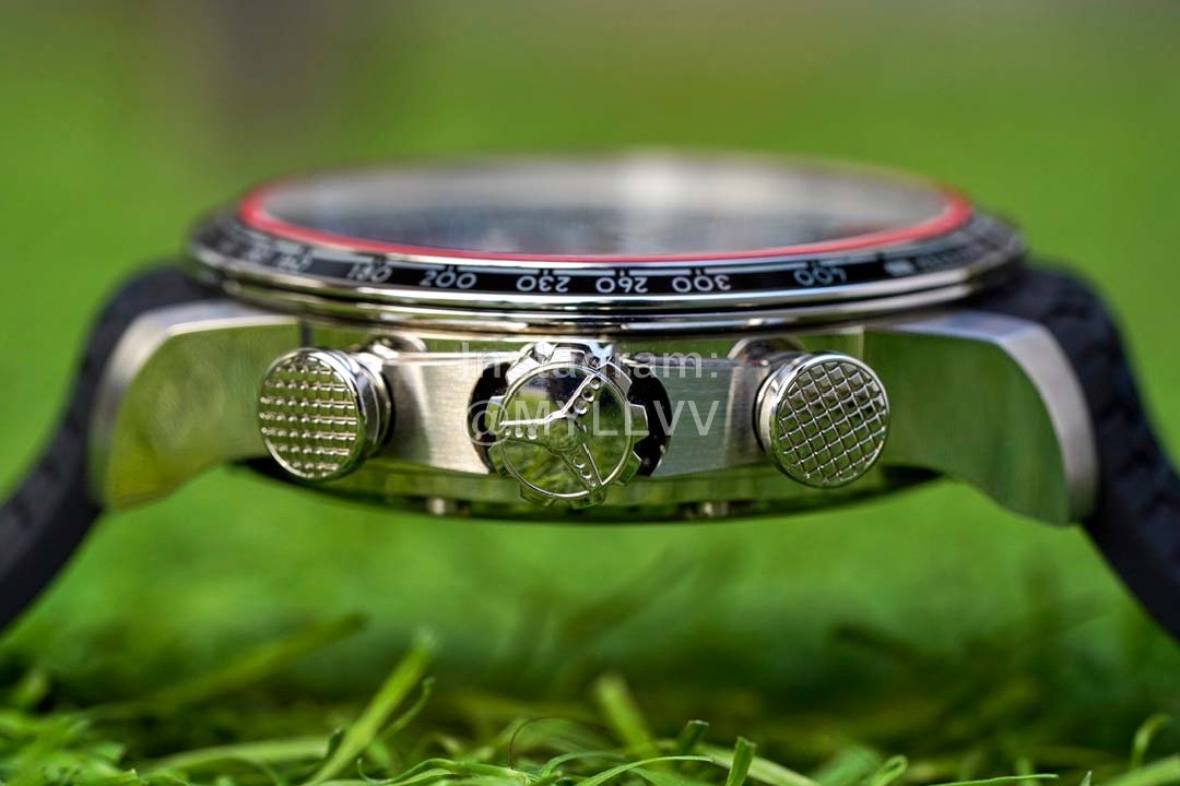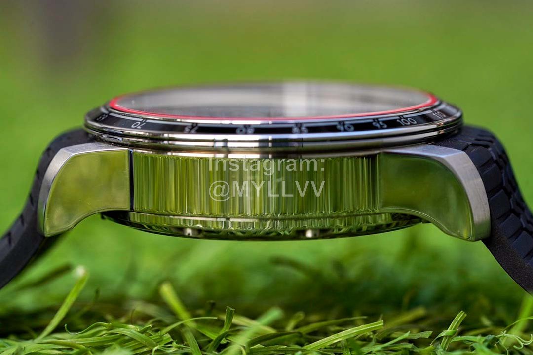 2. The details of the disc and bottom cover of this racing series Chronograph are very rich. As shown in the figure, the disc of V7 perfectly restores the original color and texture, and the printing of the disc is also difficult to distinguish between male and female. It is worth mentioning that the huge super transparent sapphire mirror assembled with this watch has the highest transparency in the industry, perfectly synchronized with the original, and a calendar magnifying glass consistent with the genuine one has been dug out in the sapphire (not pasted like Rolex). This technology is extremely expensive, unique in the industry, and the effect is really commendable!