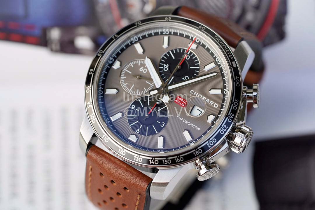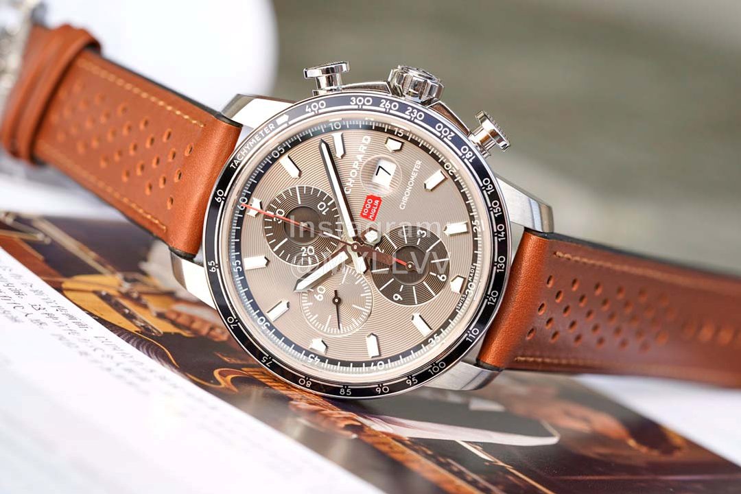 Chopard Rubber Leather Strap 44mm Dial Multifunctional Watch Brown