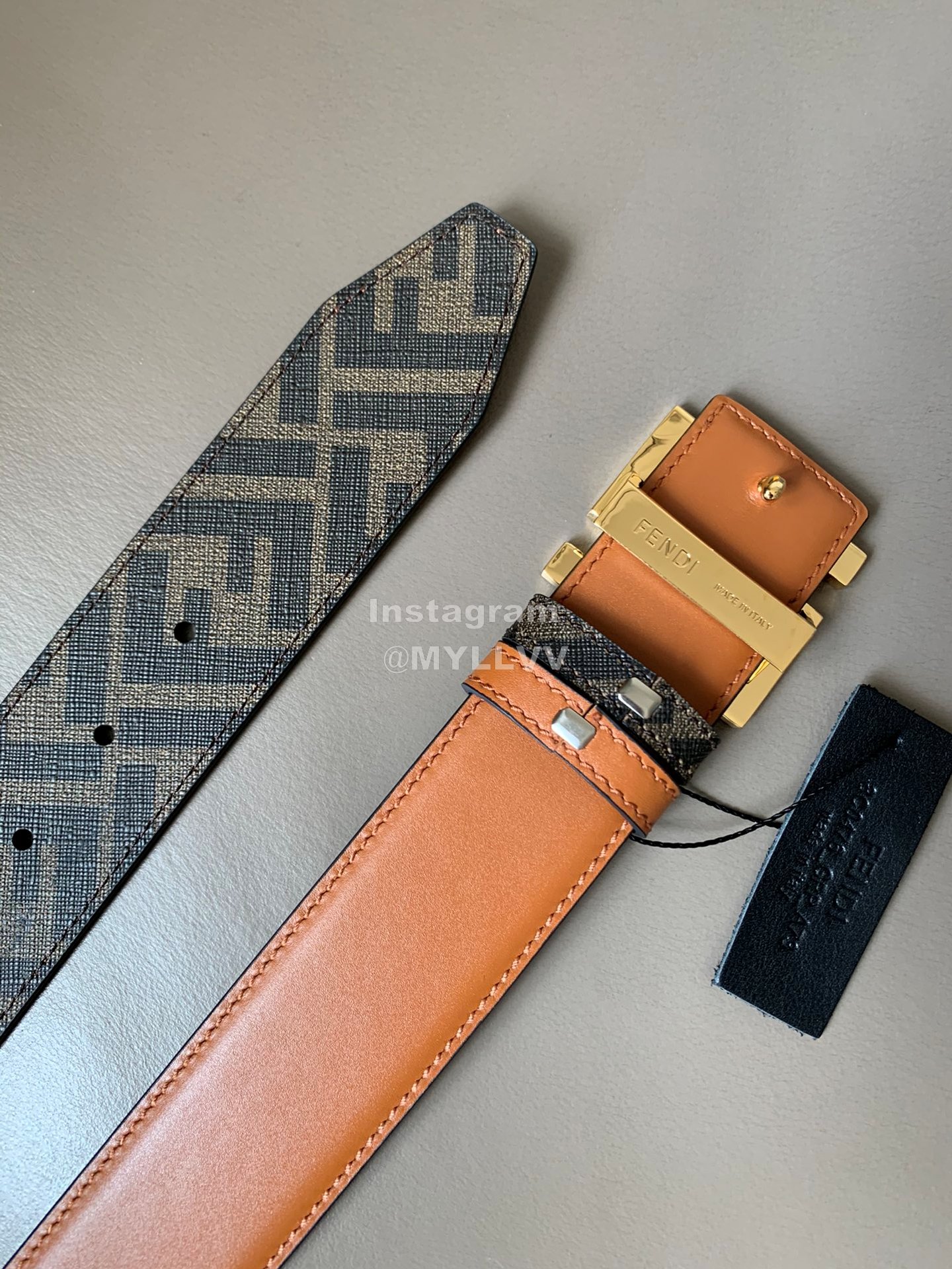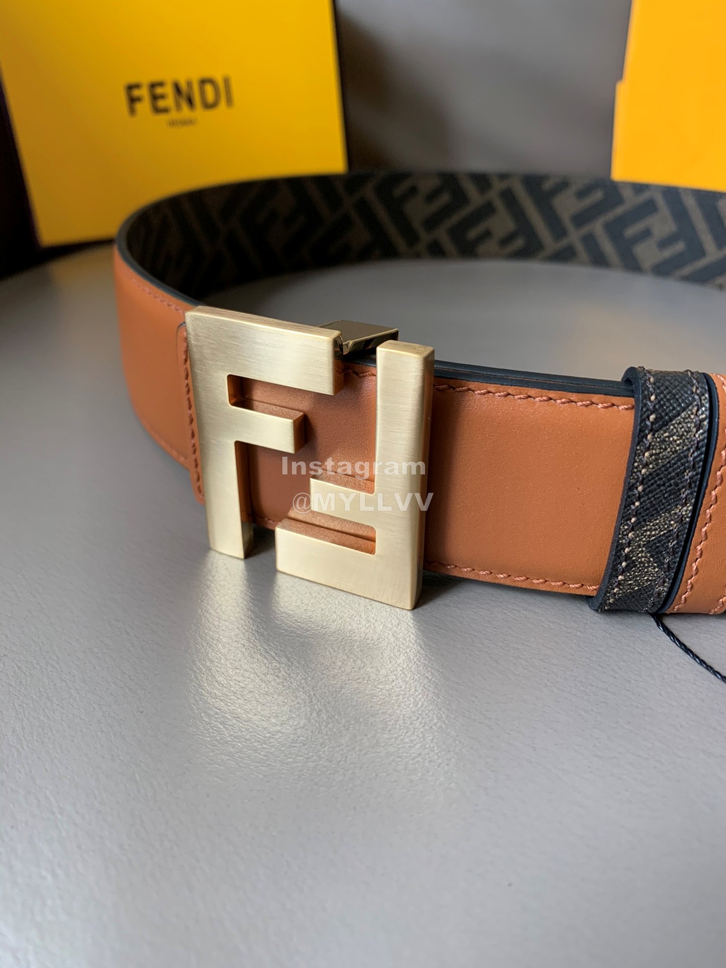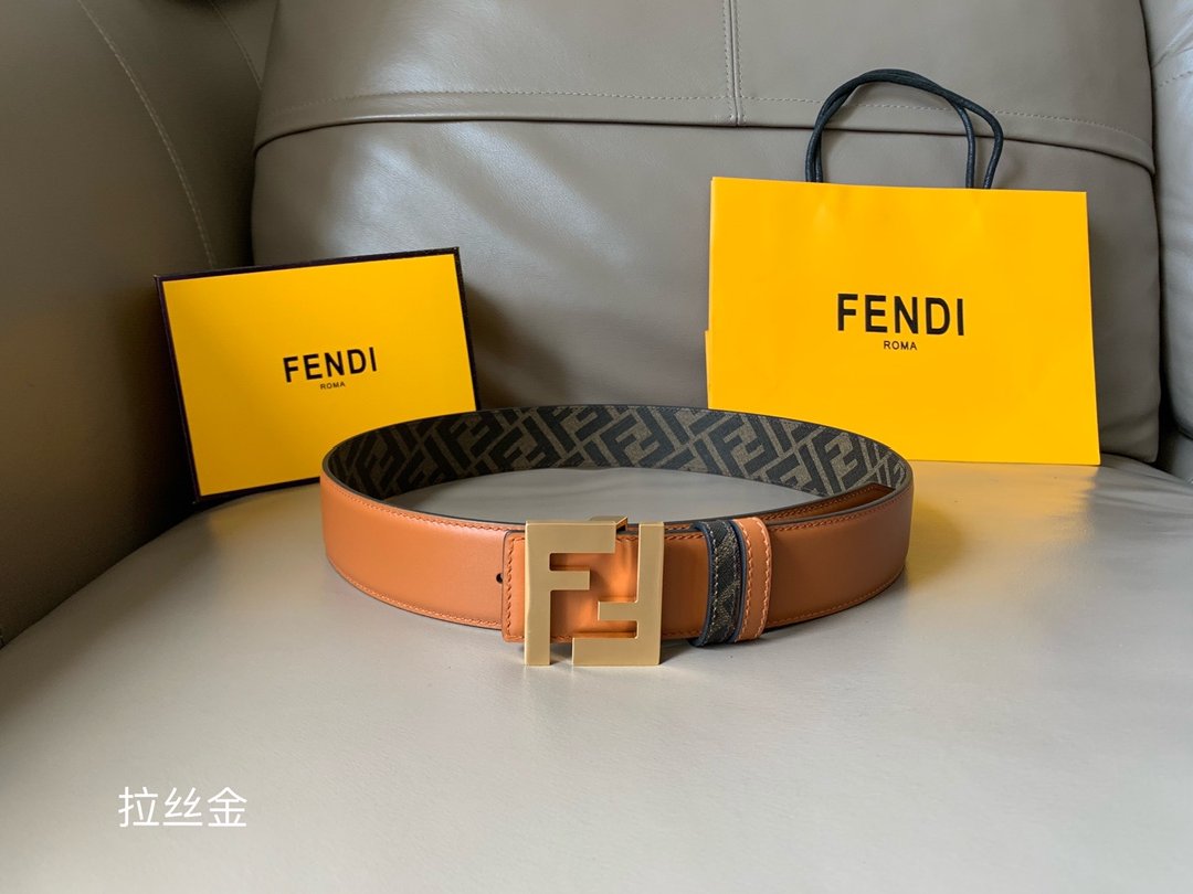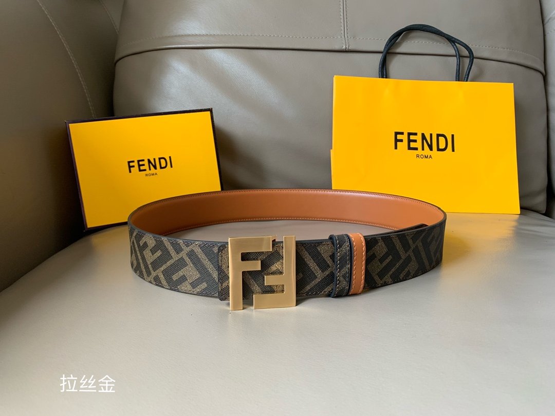 Fendi Smooth Calf Leather Gold FF Buckle Belt For Men