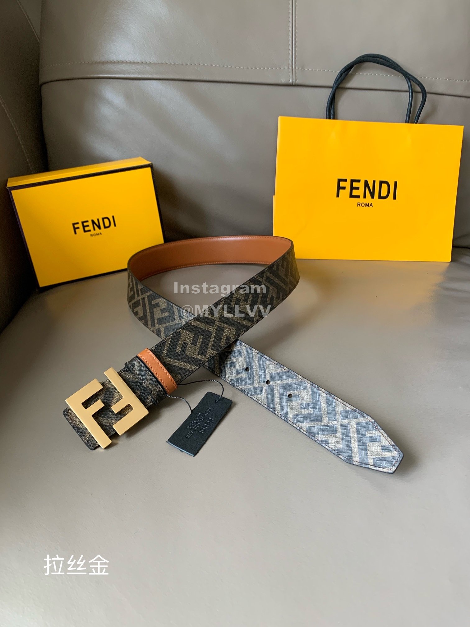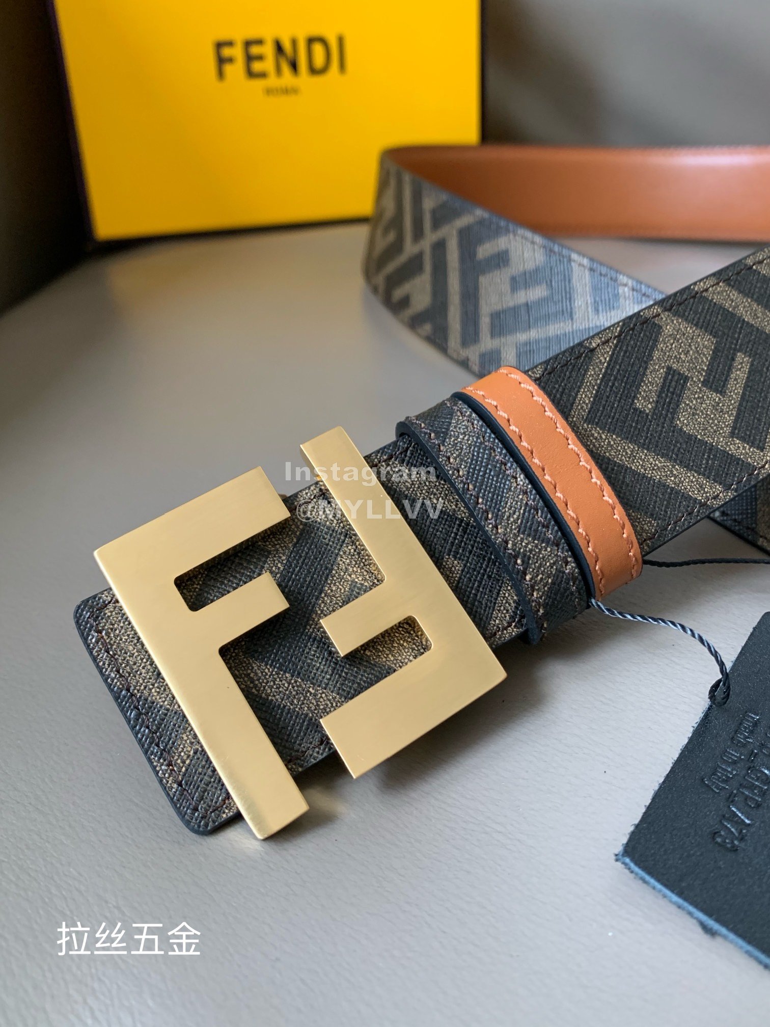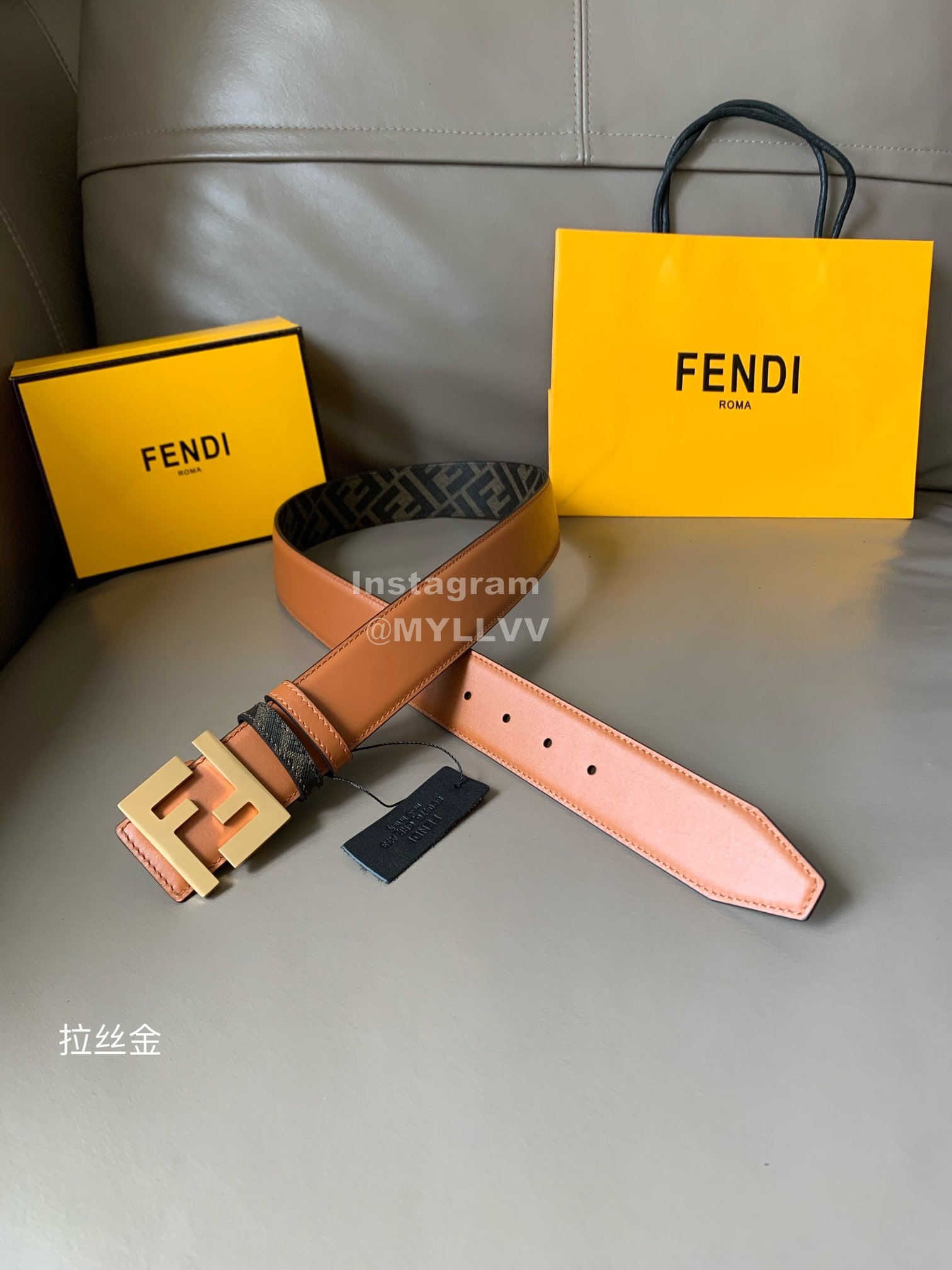 Fendi Smooth Calf Leather Gold FF Buckle Belt For Men
