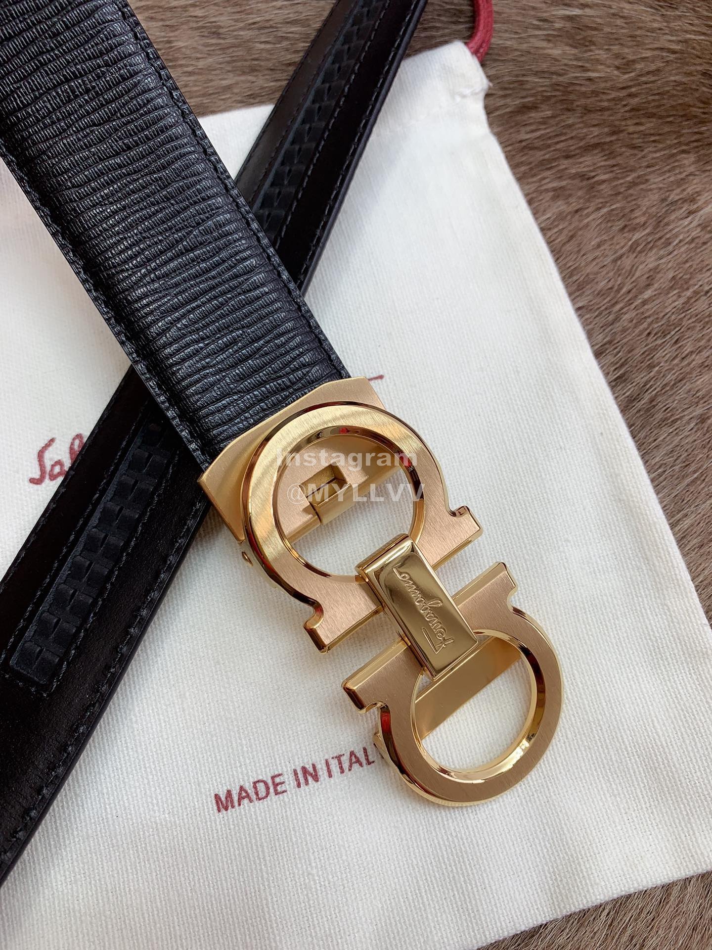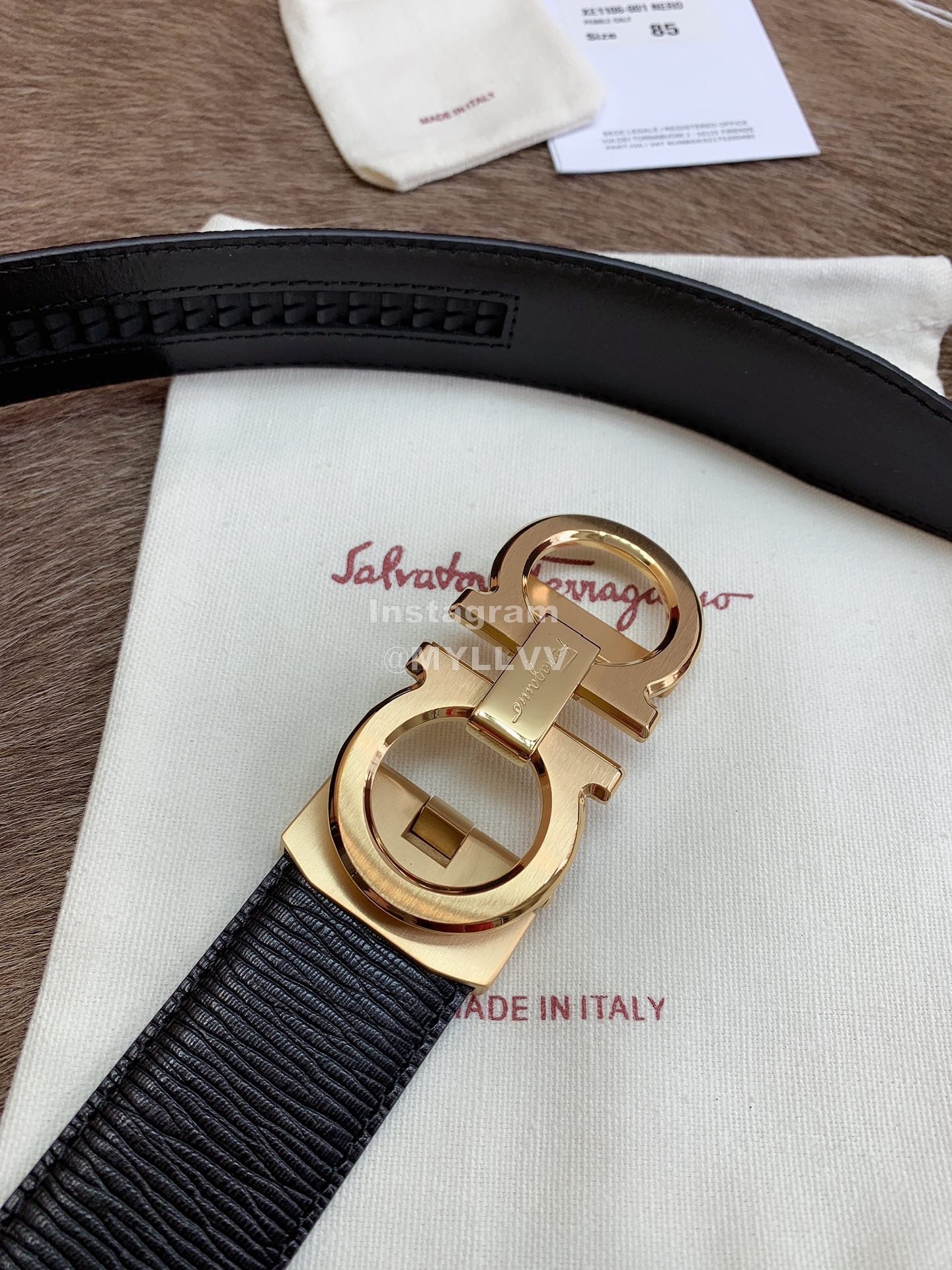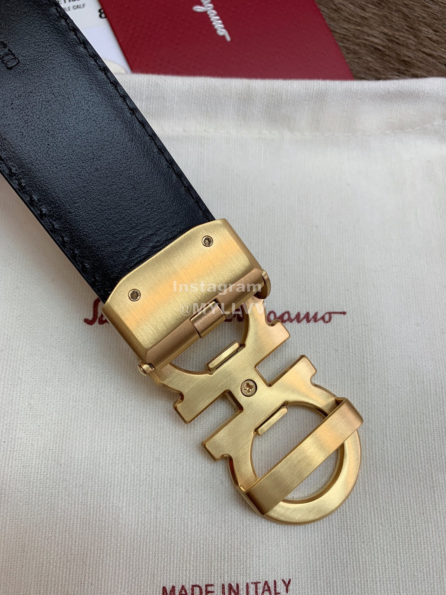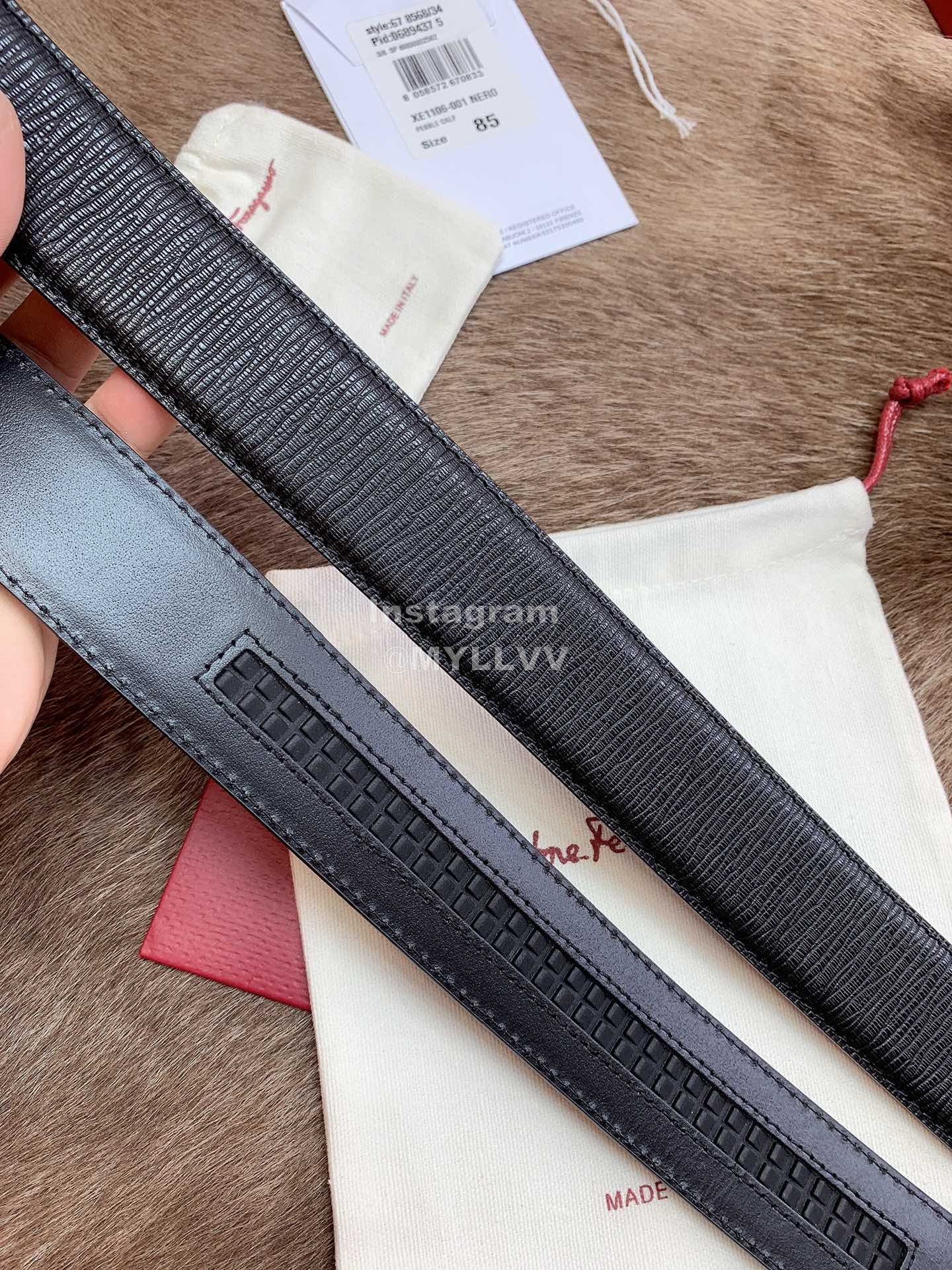 Ferragamo New Black Embossed Cowhide Pure Copper Buckle 35mm Belt For Men