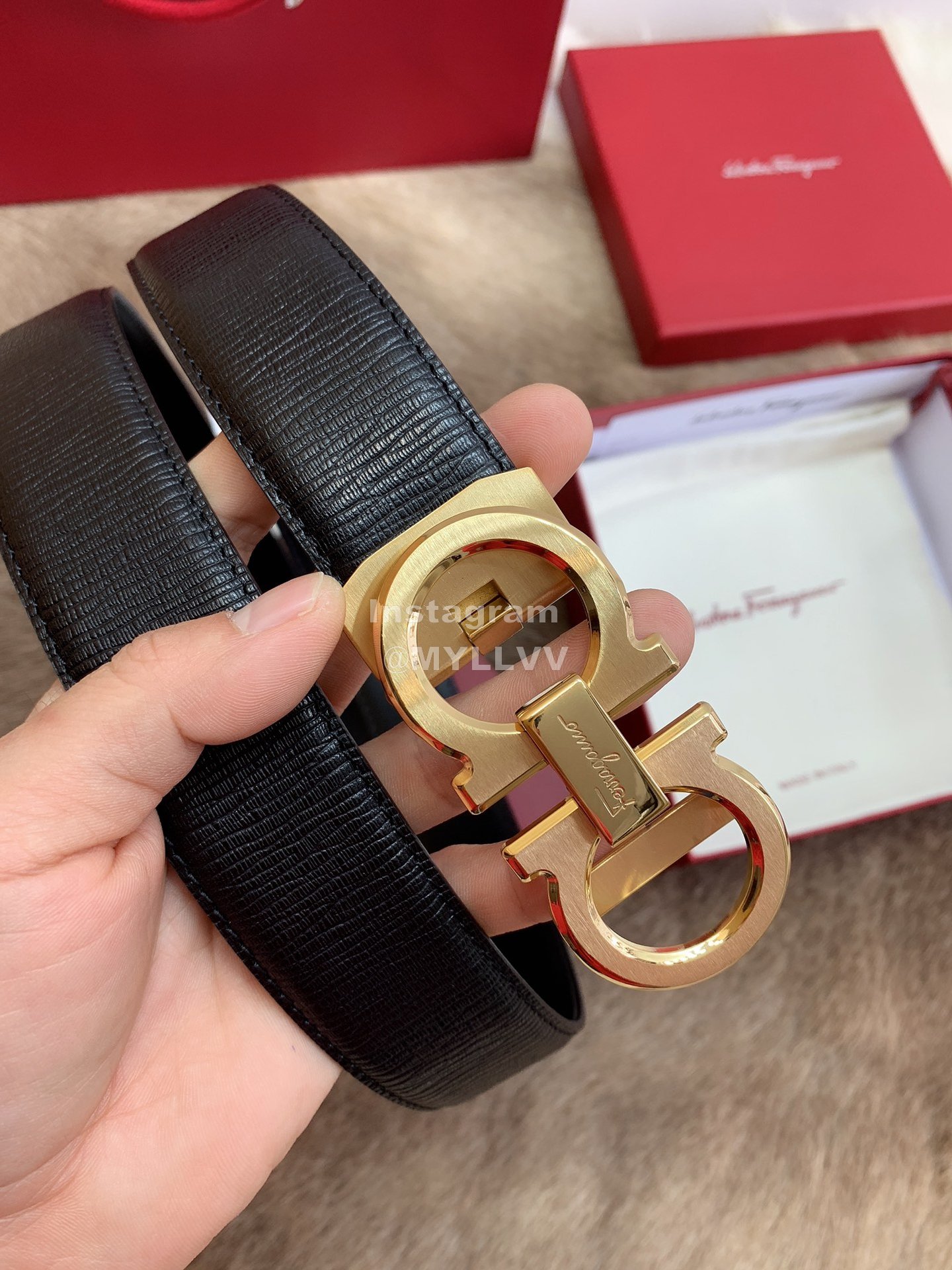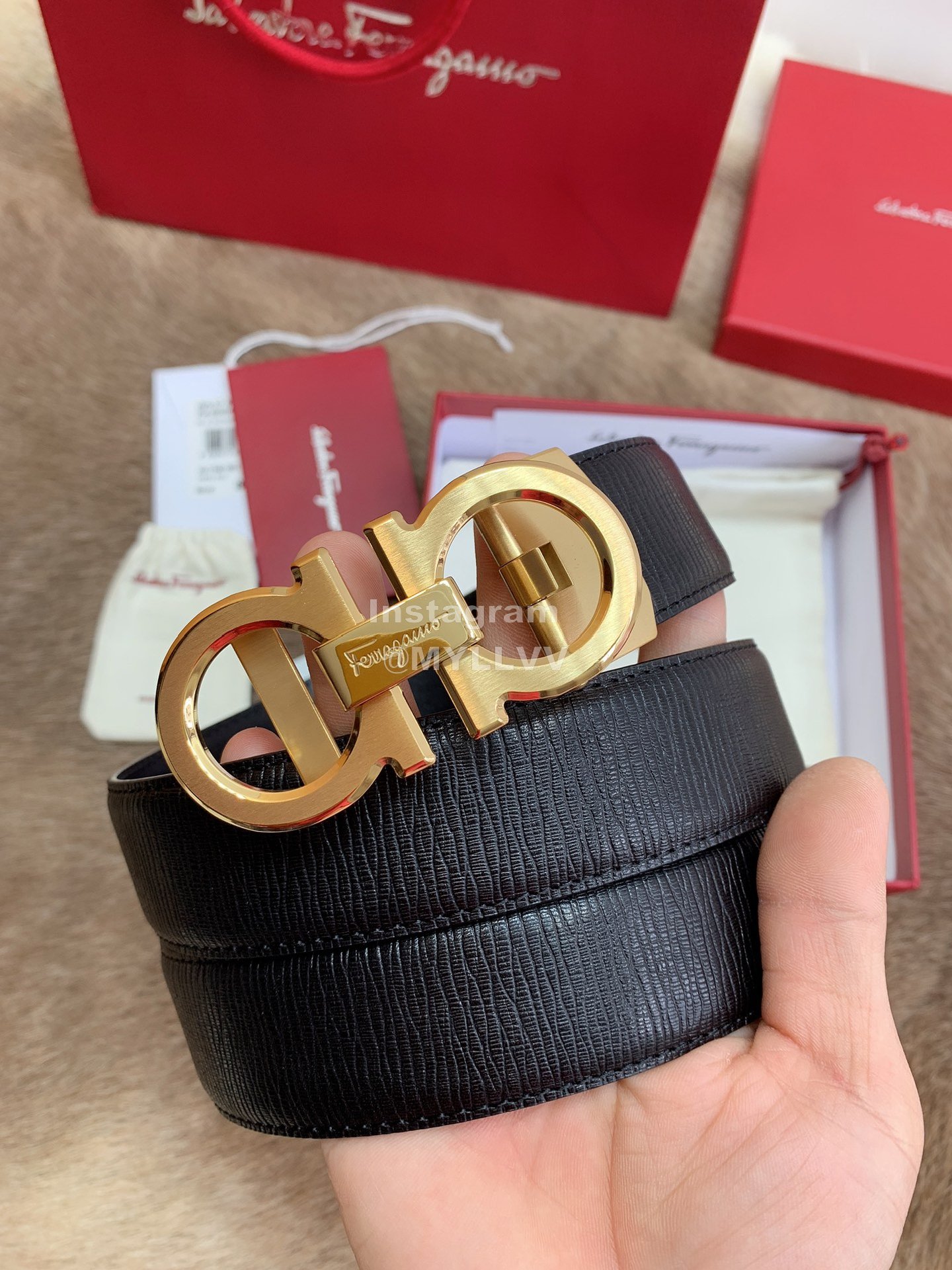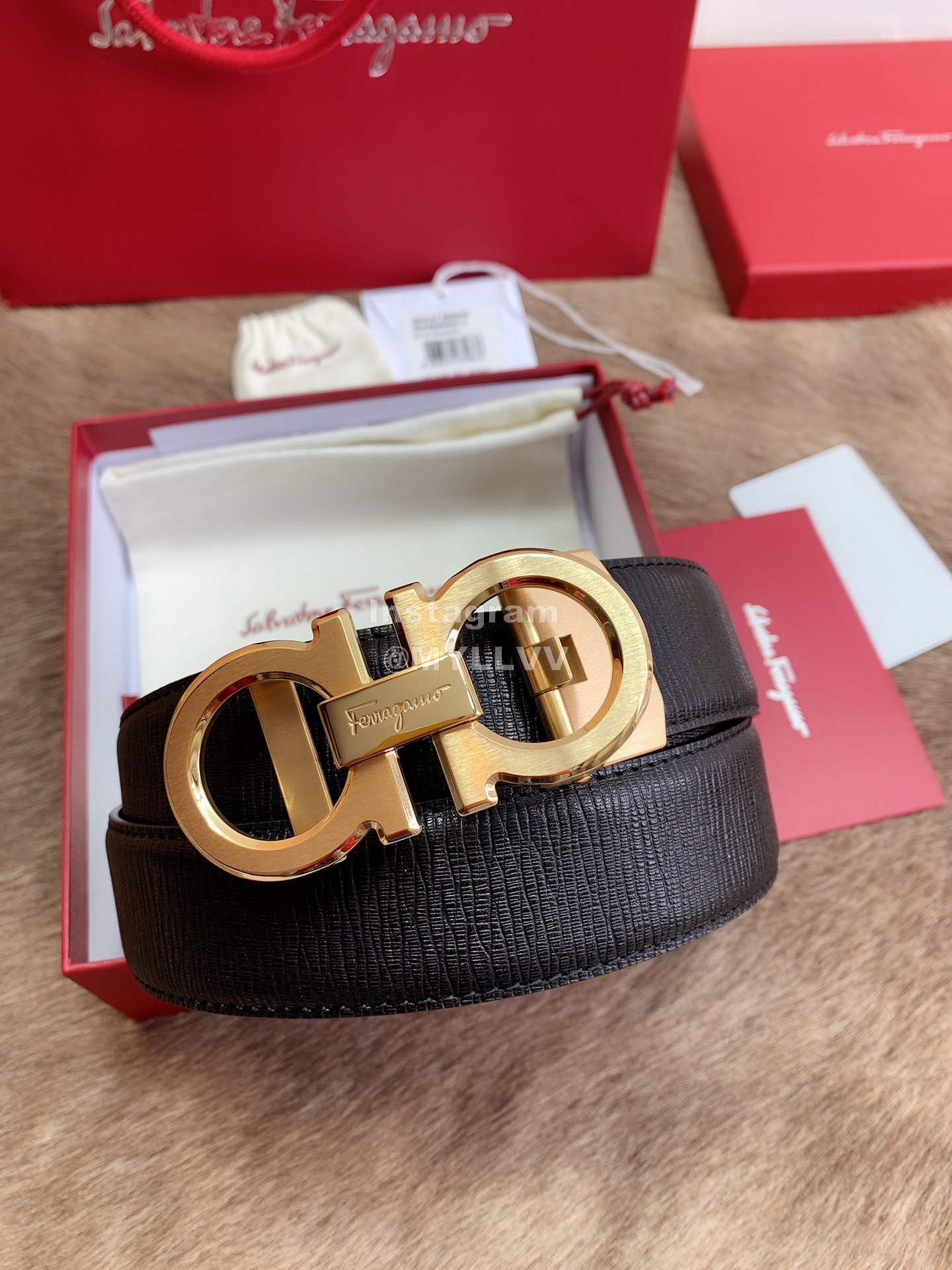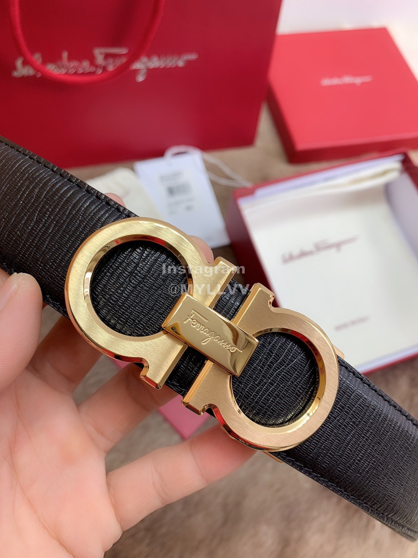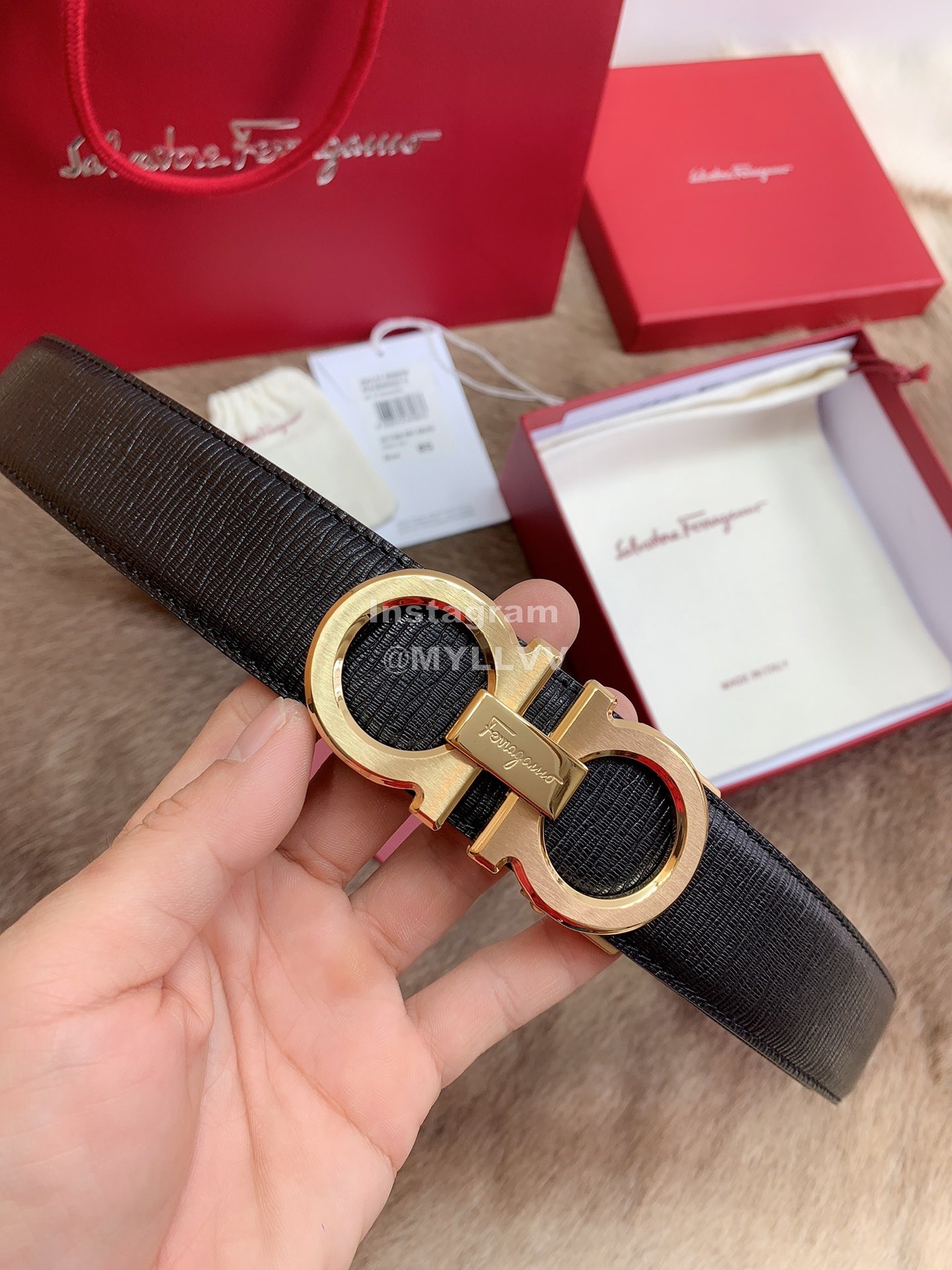 Ferragamo New Black Embossed Cowhide Pure Copper Buckle 35mm Belt For Men