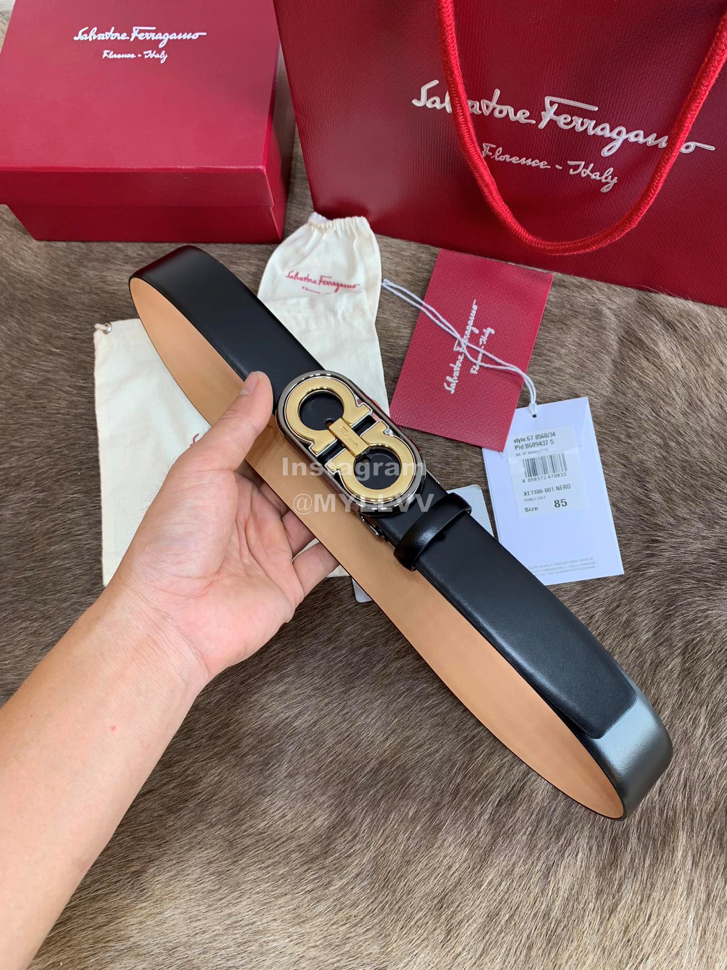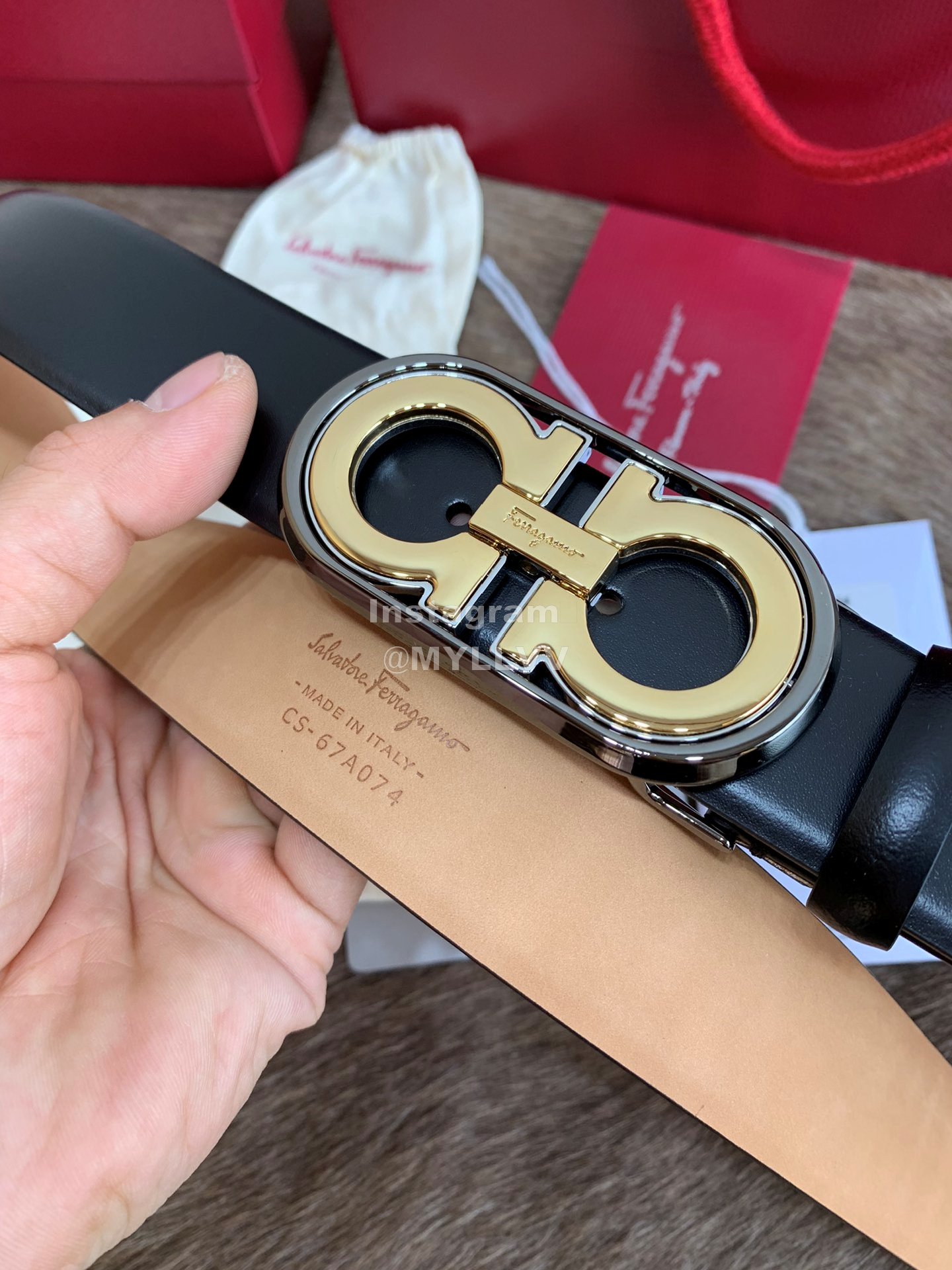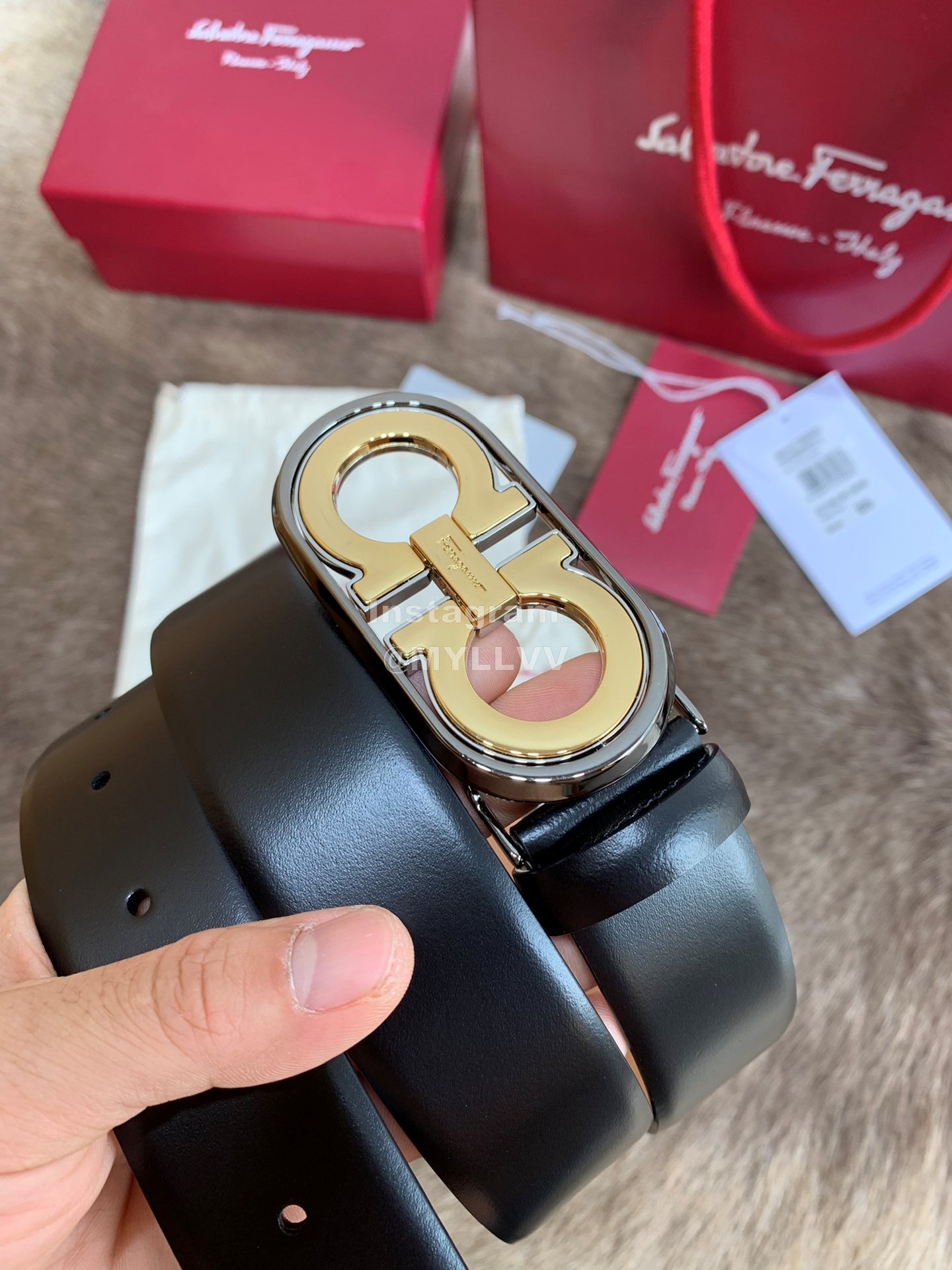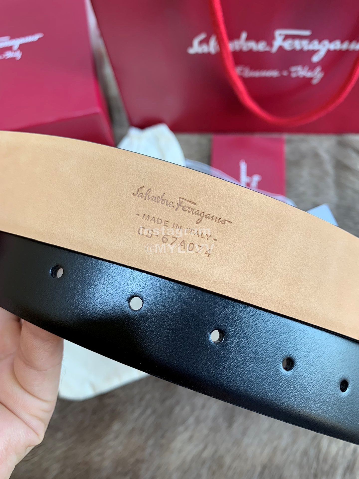 Ferragamo New Calf Leather Pure Copper Gold Buckle 35mm Belt