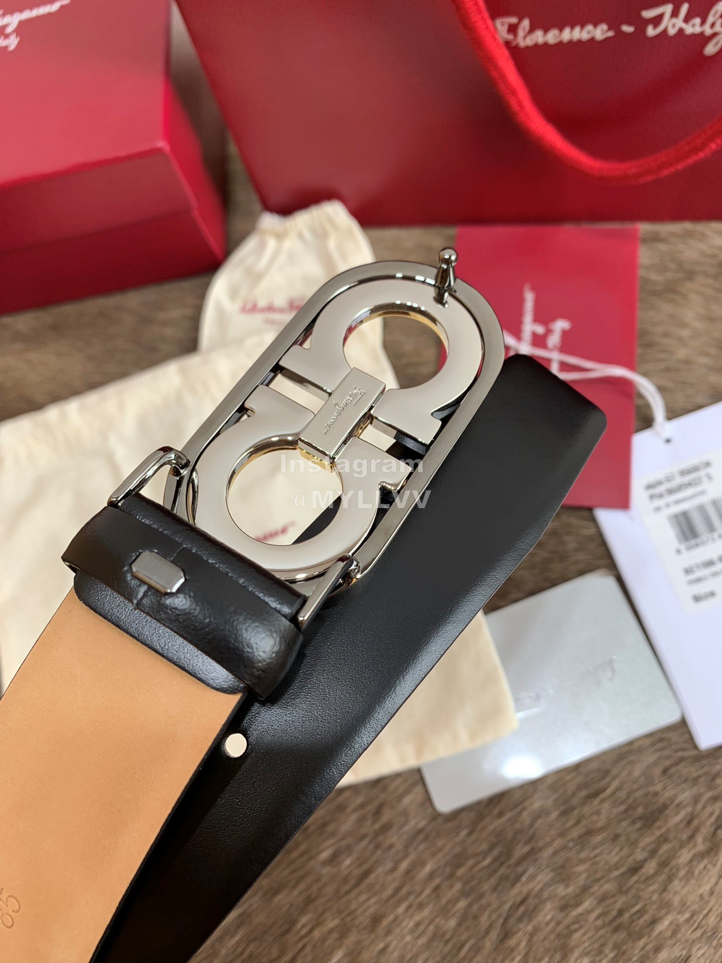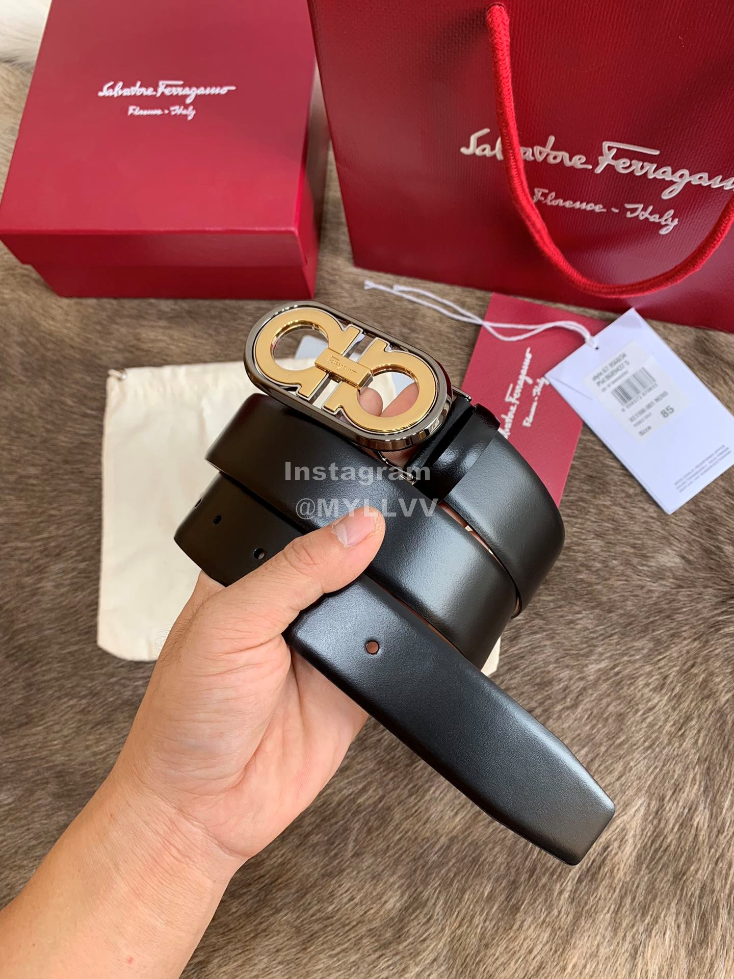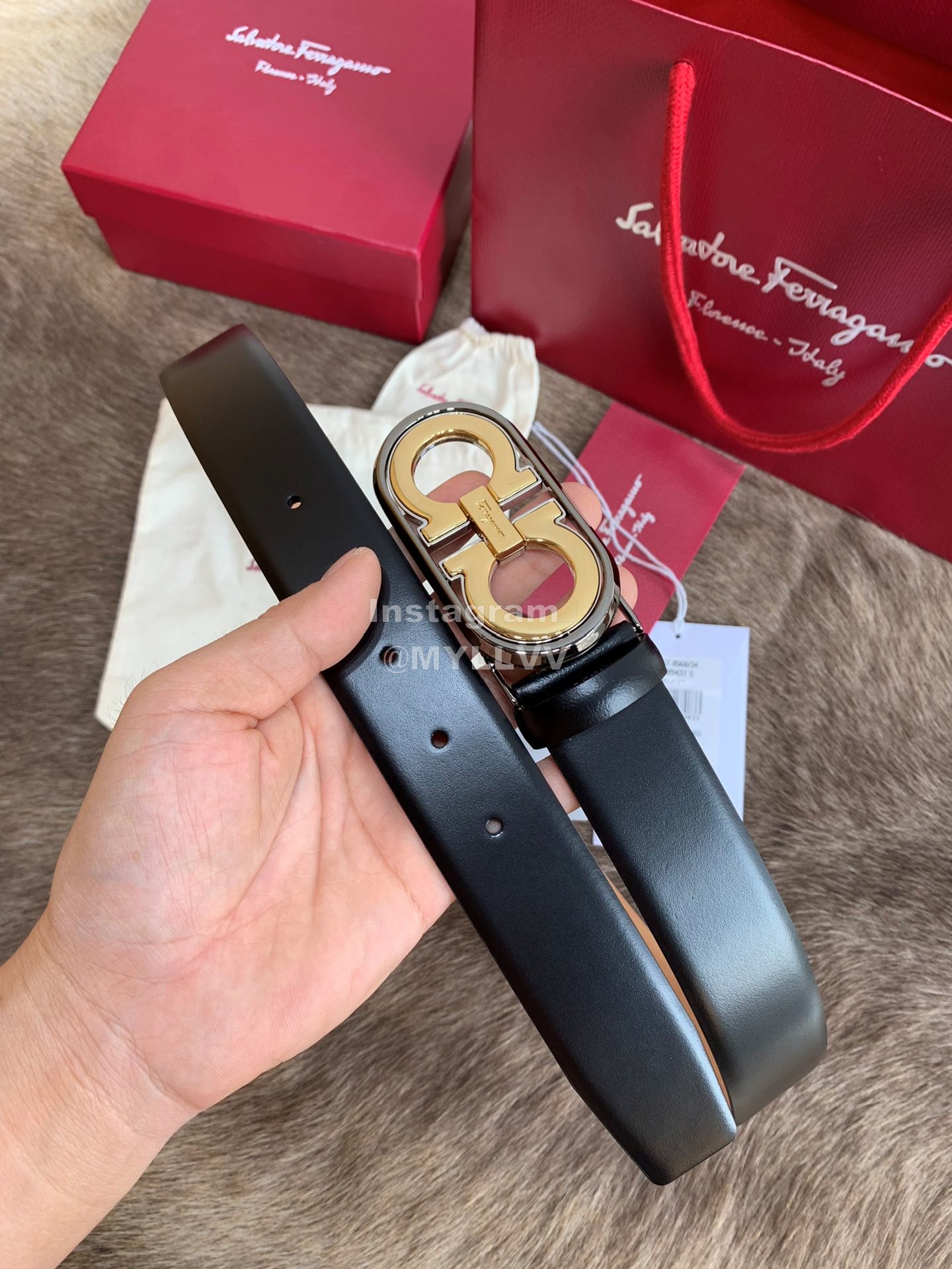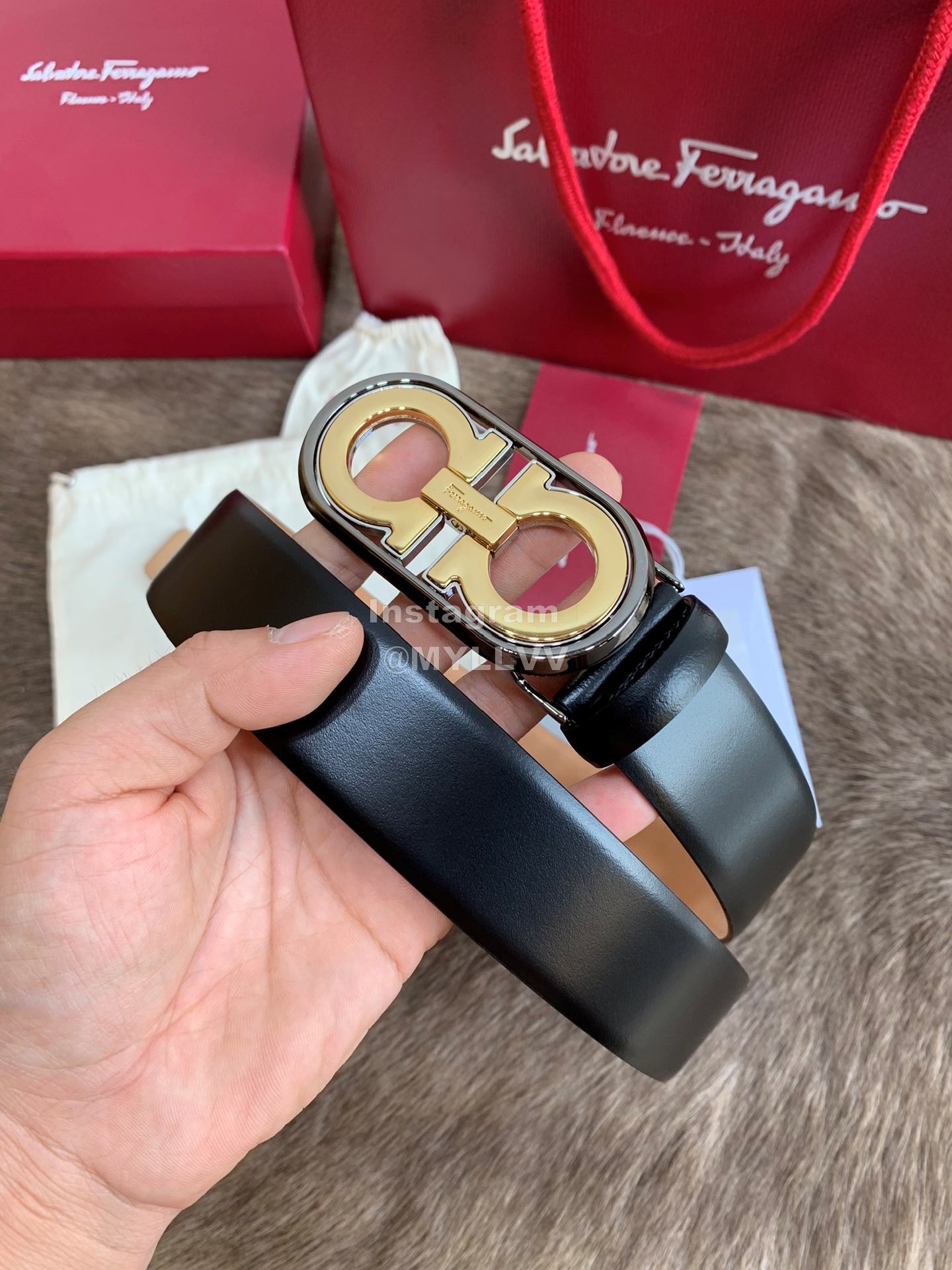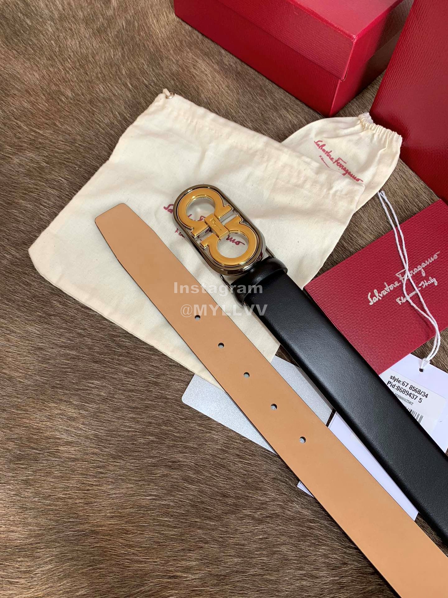 Ferragamo New Calf Leather Pure Copper Gold Buckle 35mm Belt