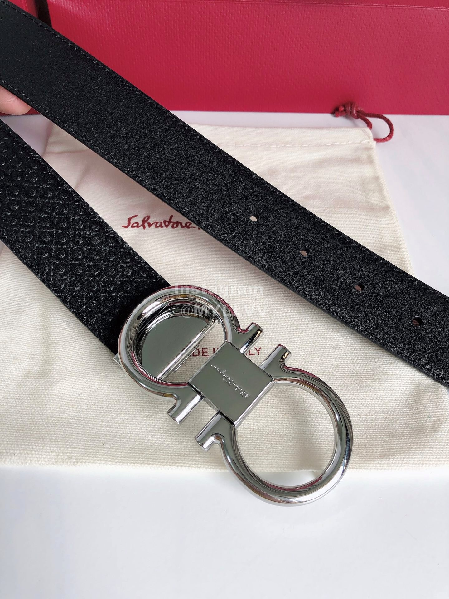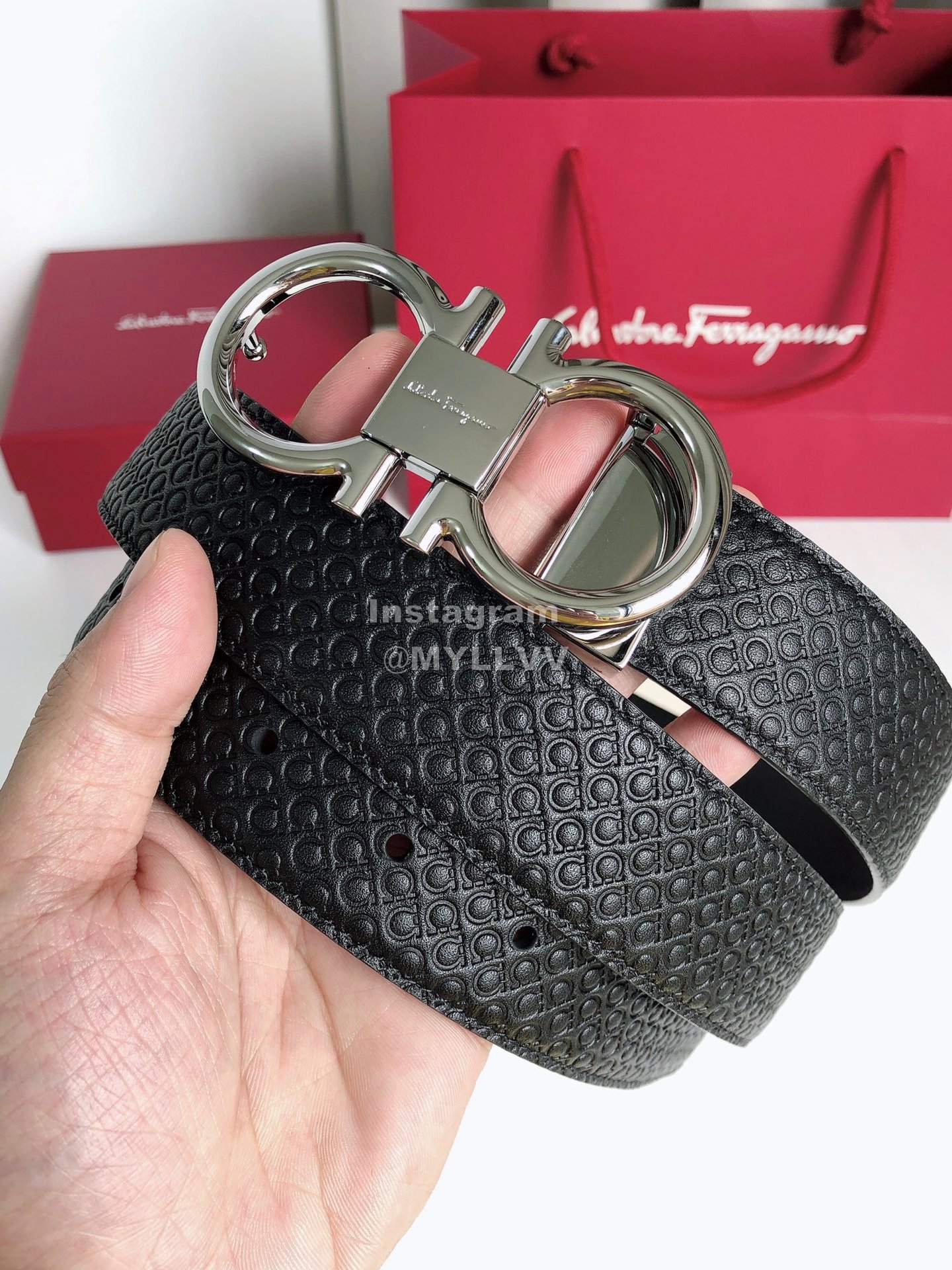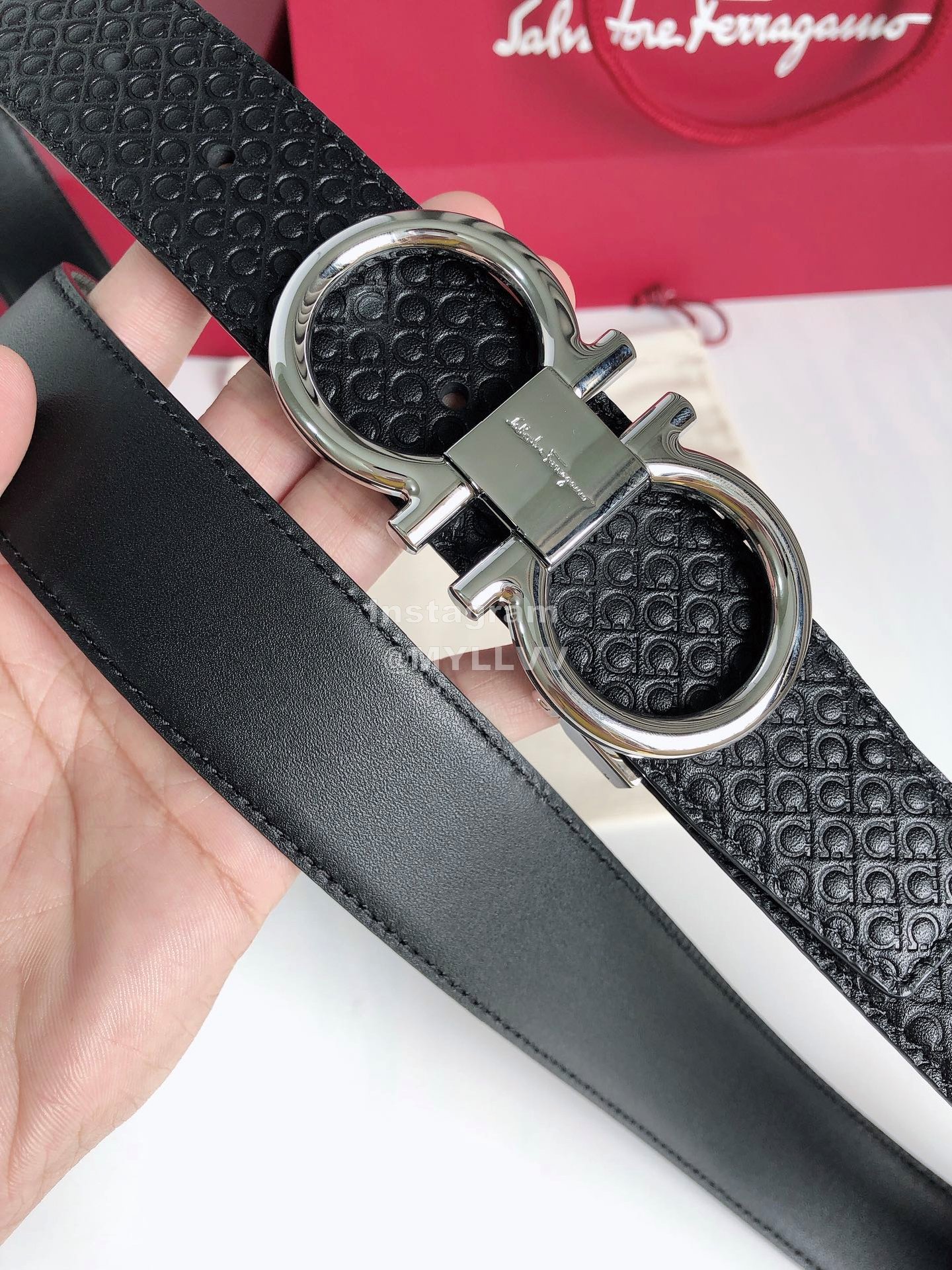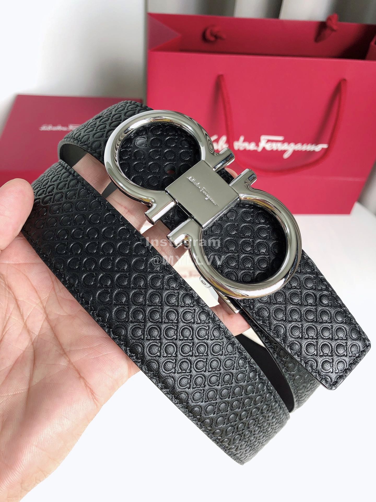 Ferragamo New Cowhide Electroplated Silver Buckle 35mm Belt For Men