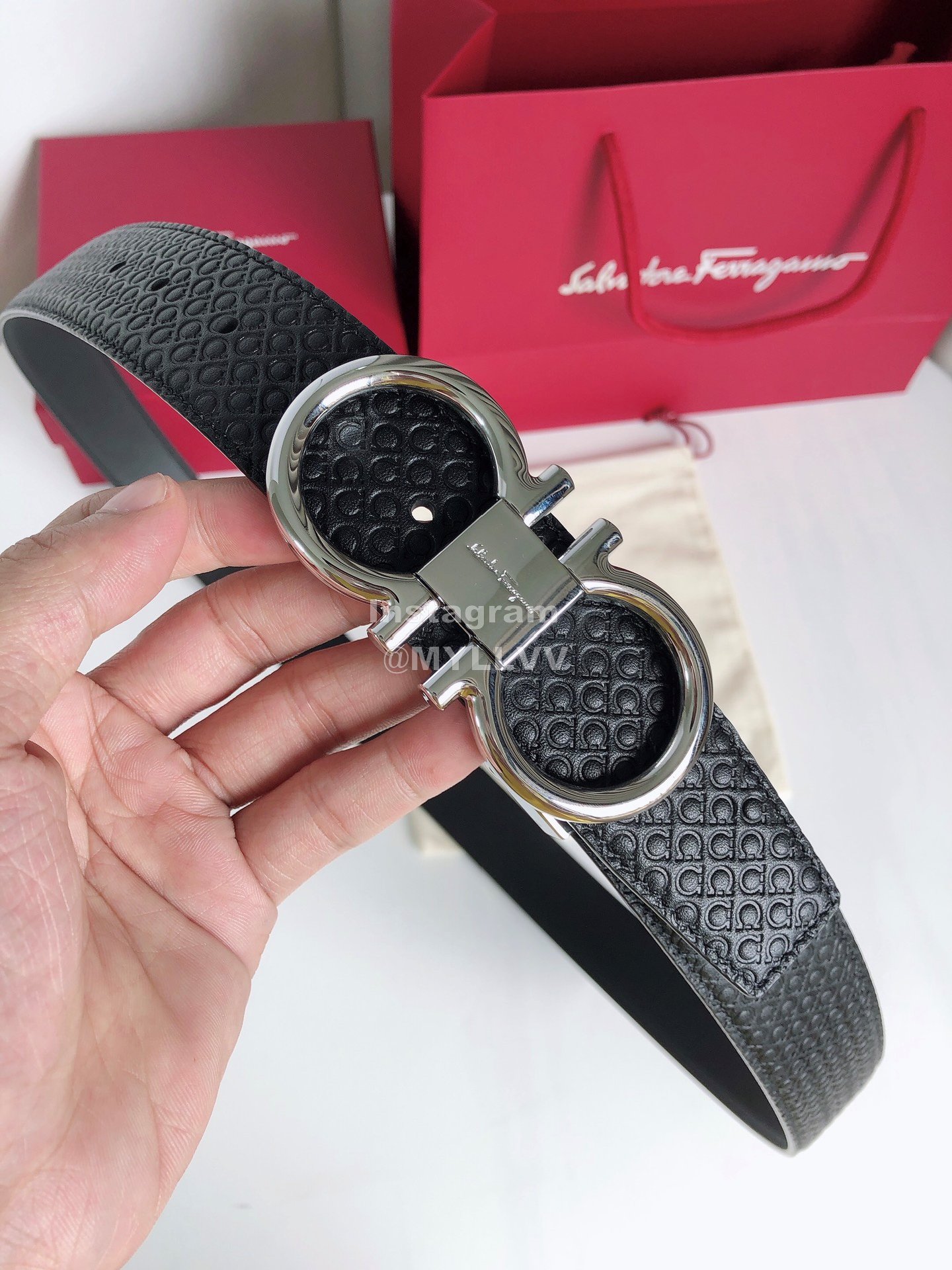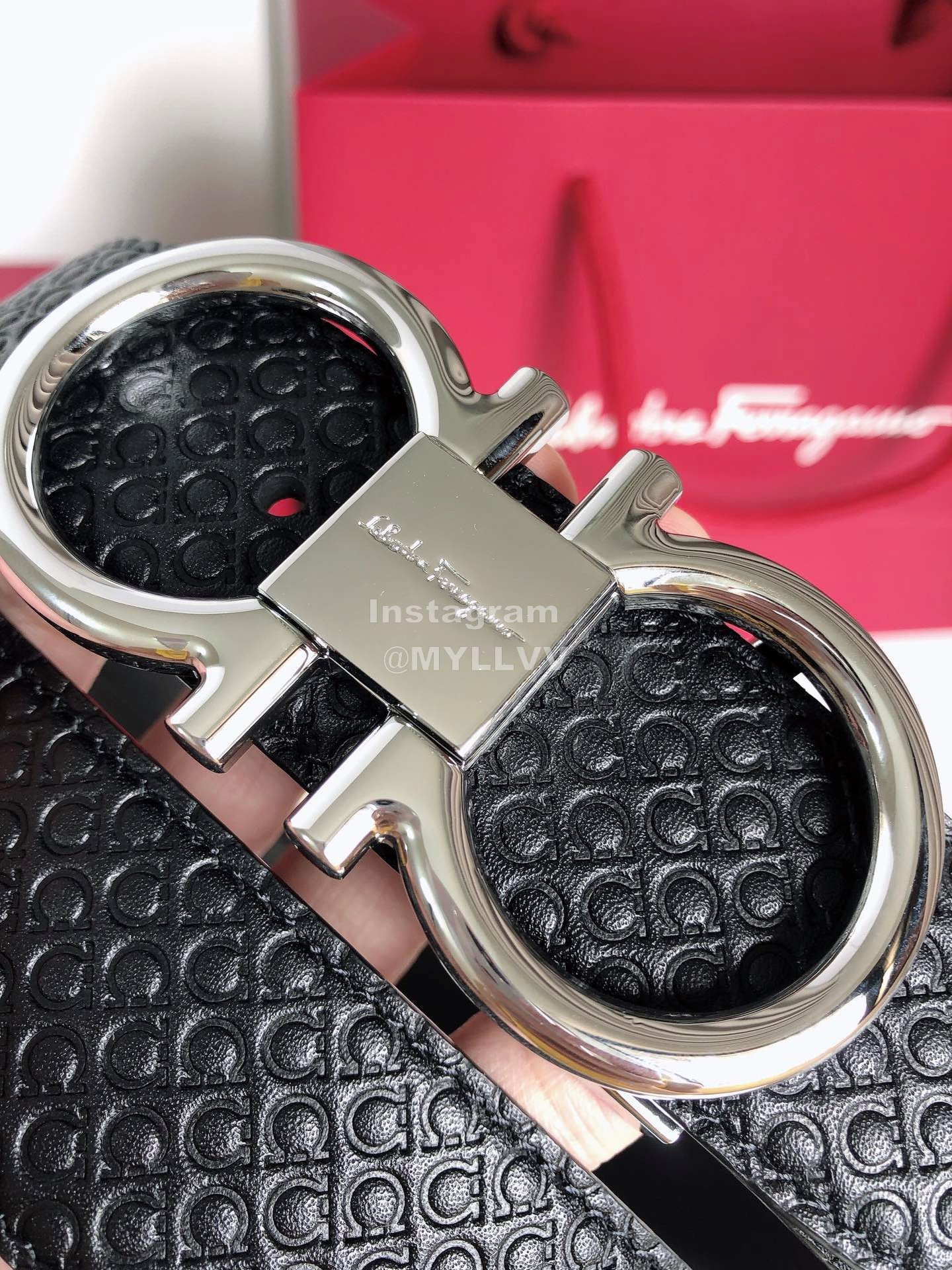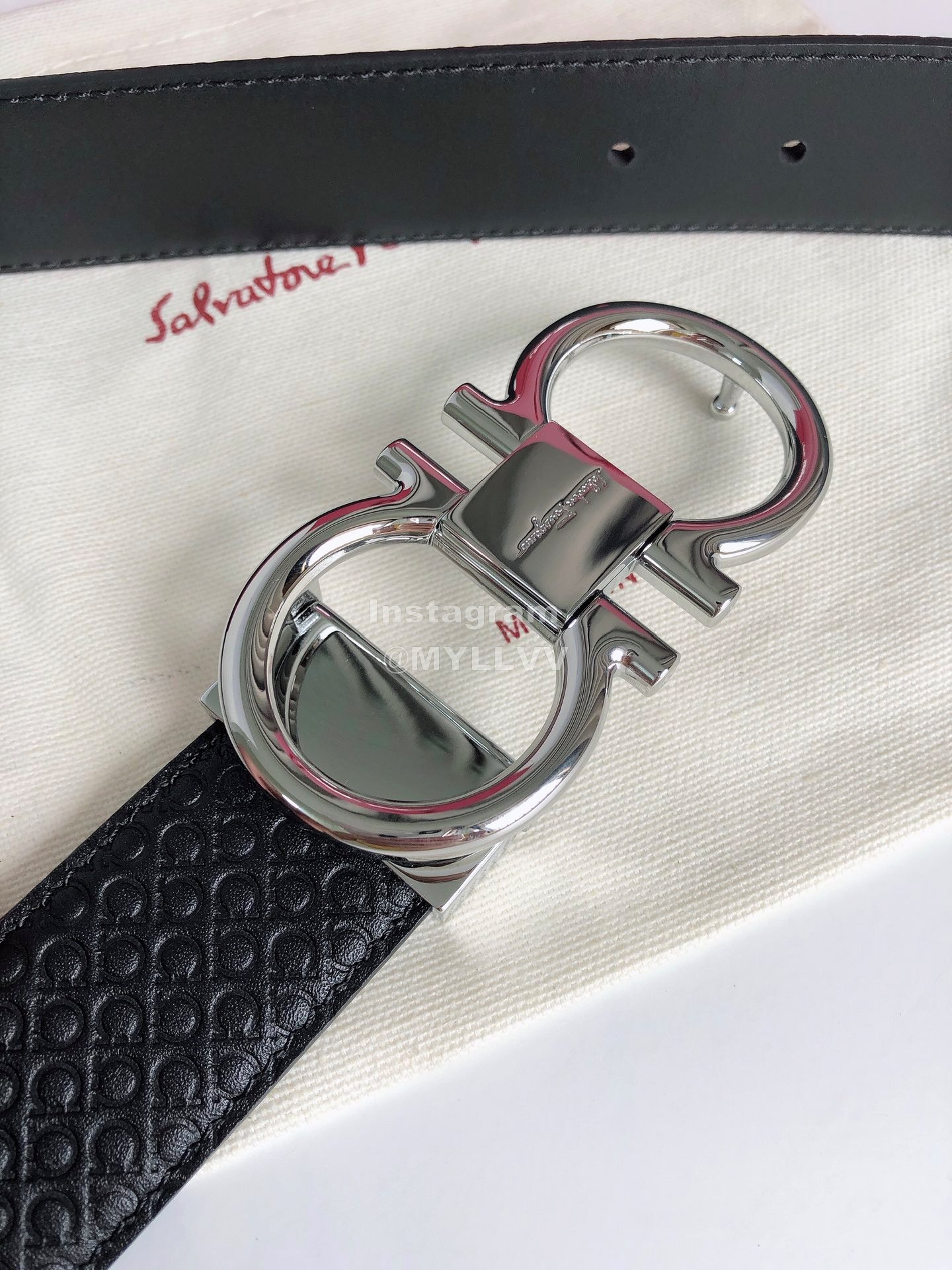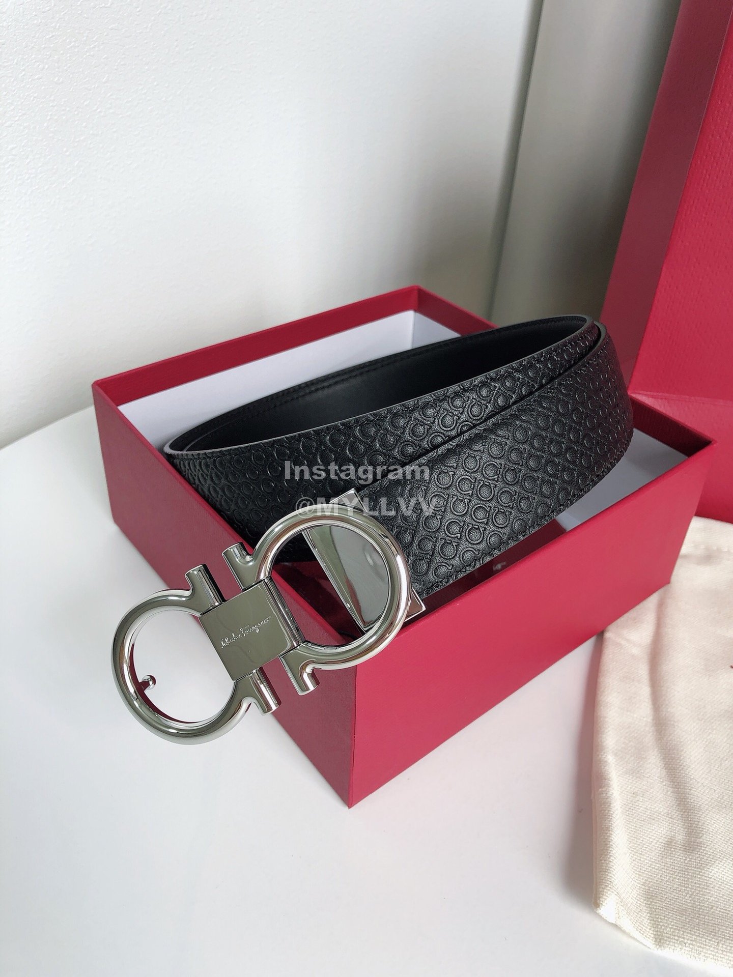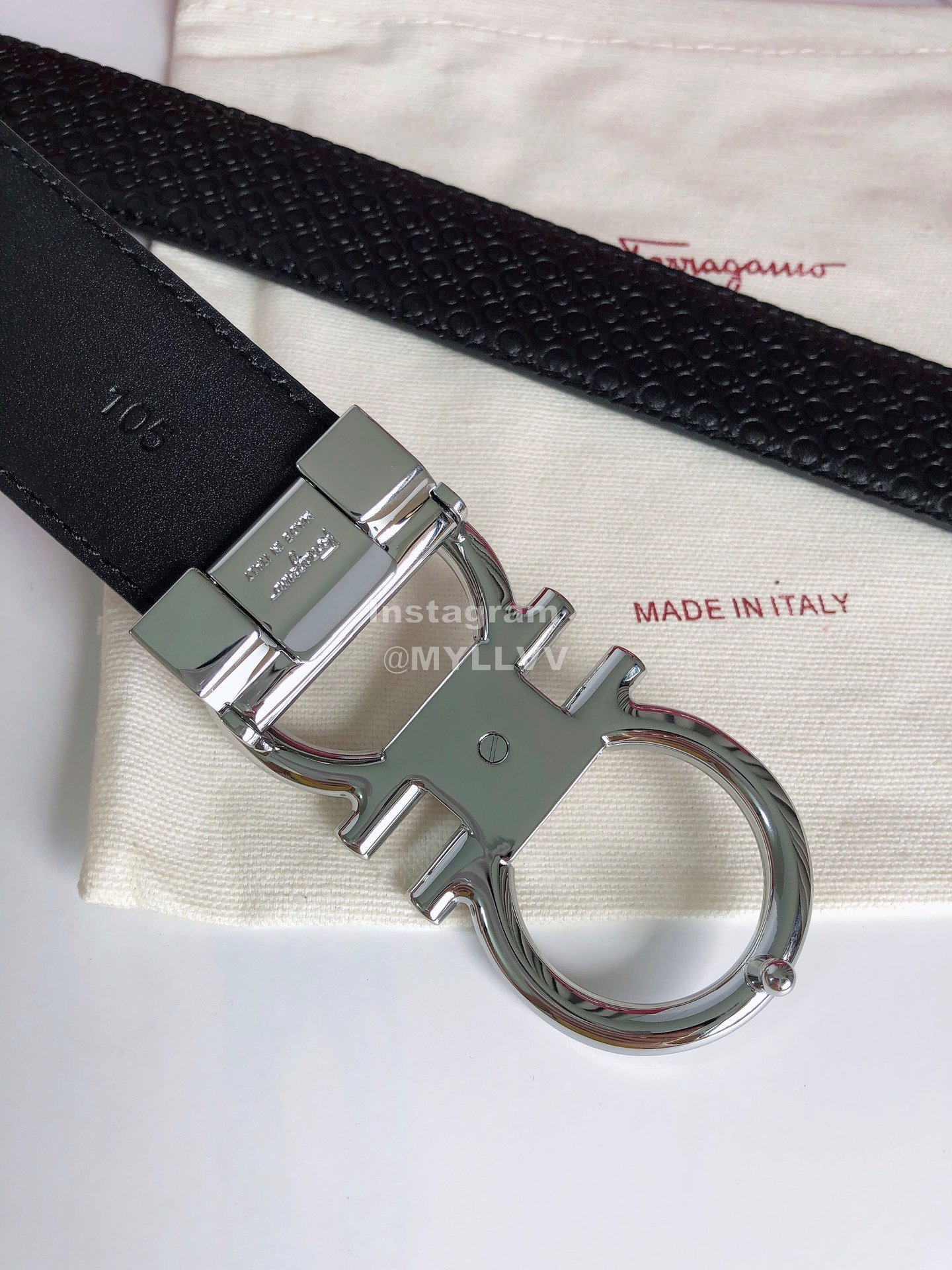 Ferragamo New Cowhide Electroplated Silver Buckle 35mm Belt For Men