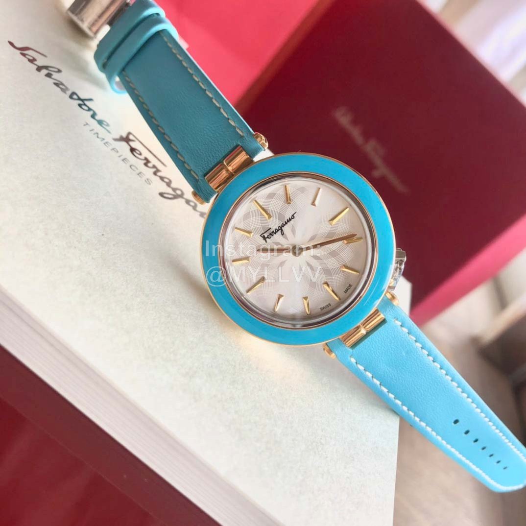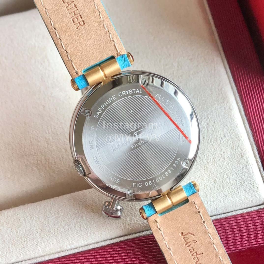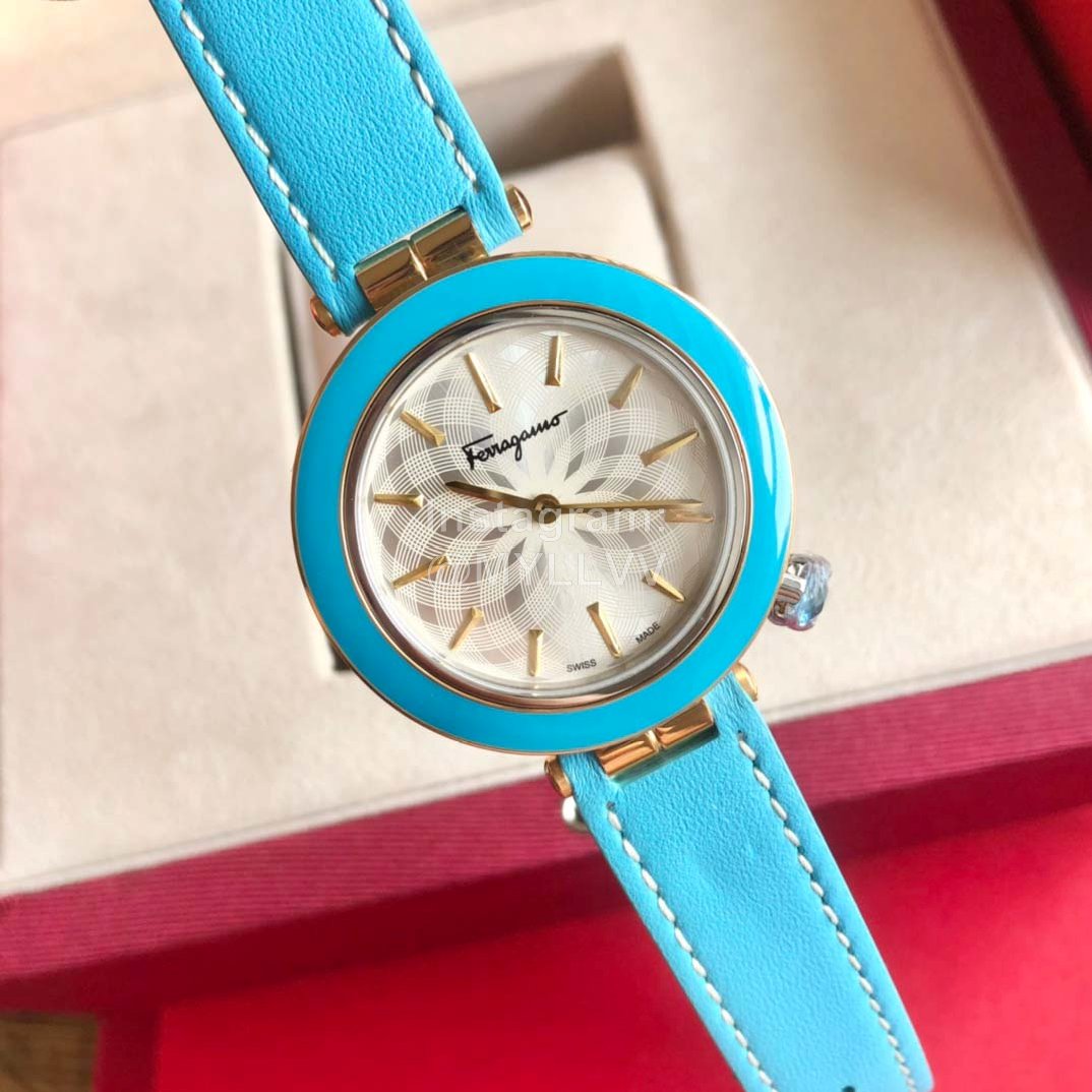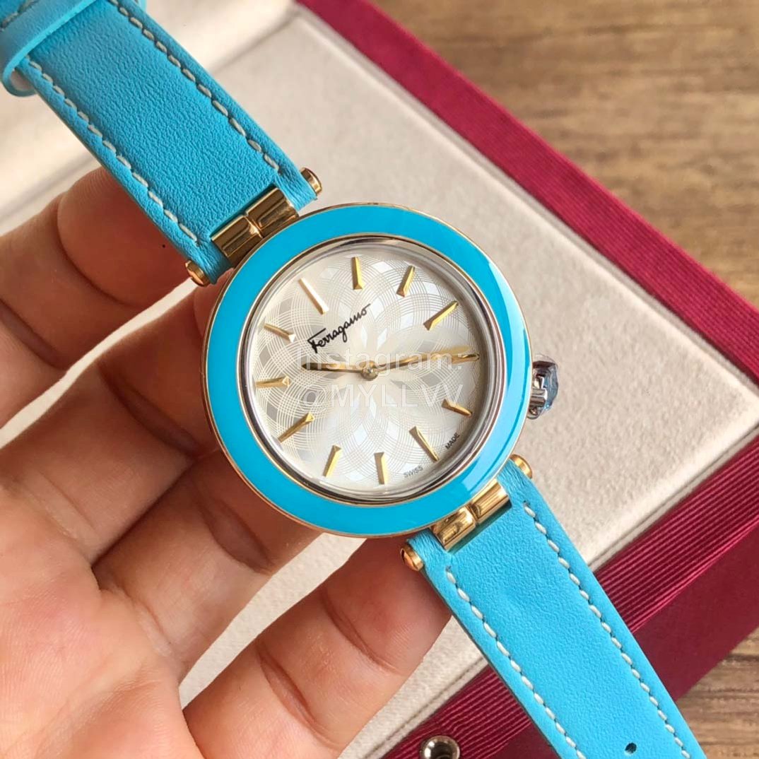 Ferragamo women’s watch, with Ferragamo brand logo engraved on the dial, unique rotating pattern in the center, exquisite and dazzling, simple double needle design, stainless steel double press butterfly buckle, simple and easy to open, 36mm outer diameter, synthetic sapphire glass