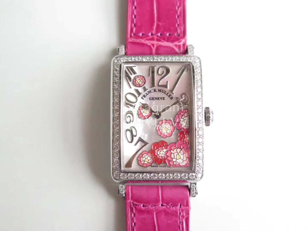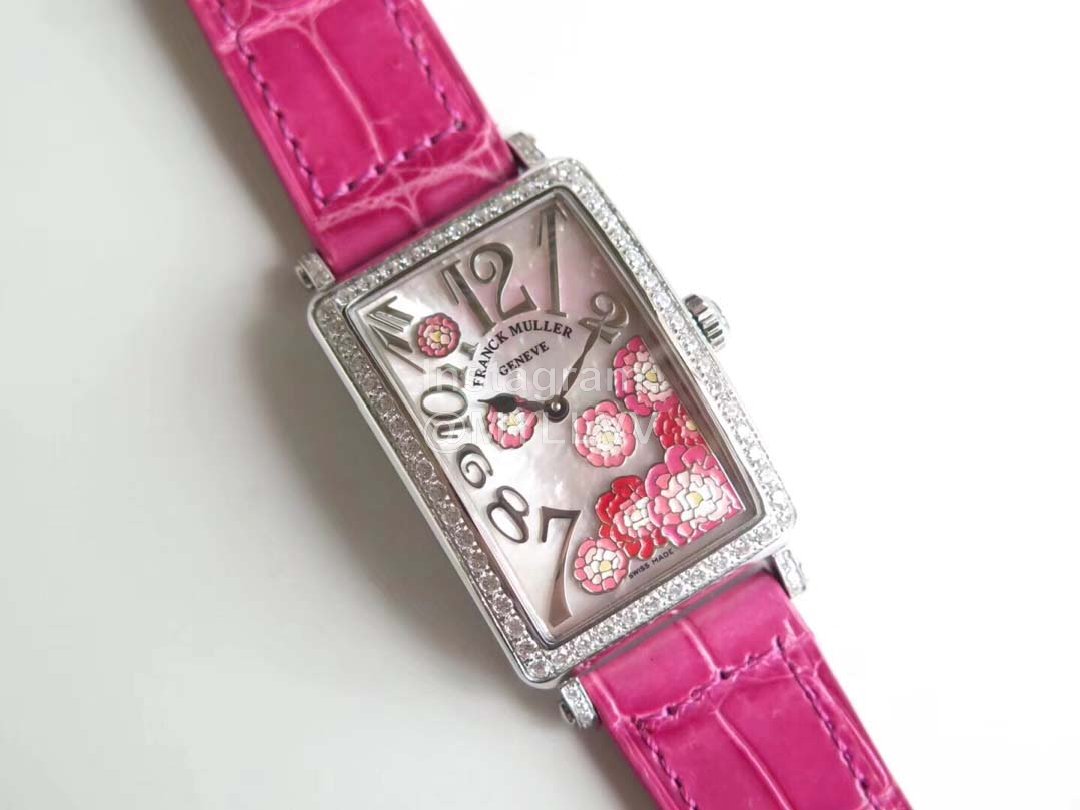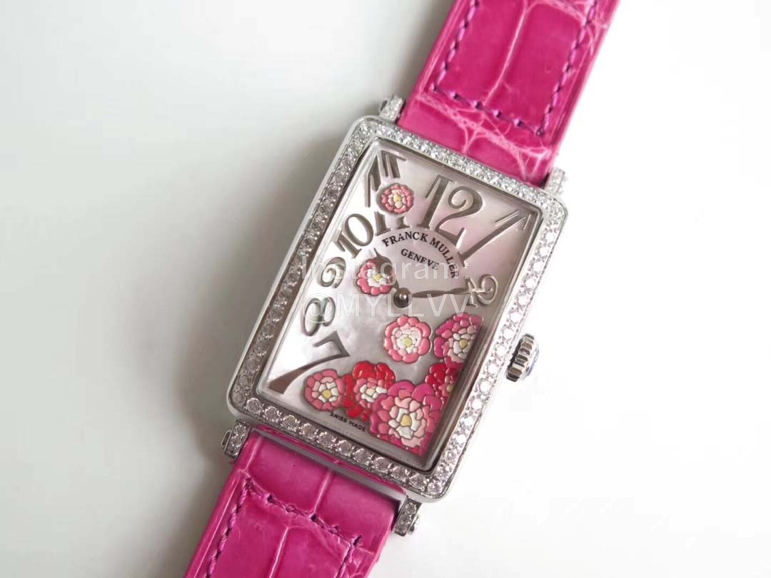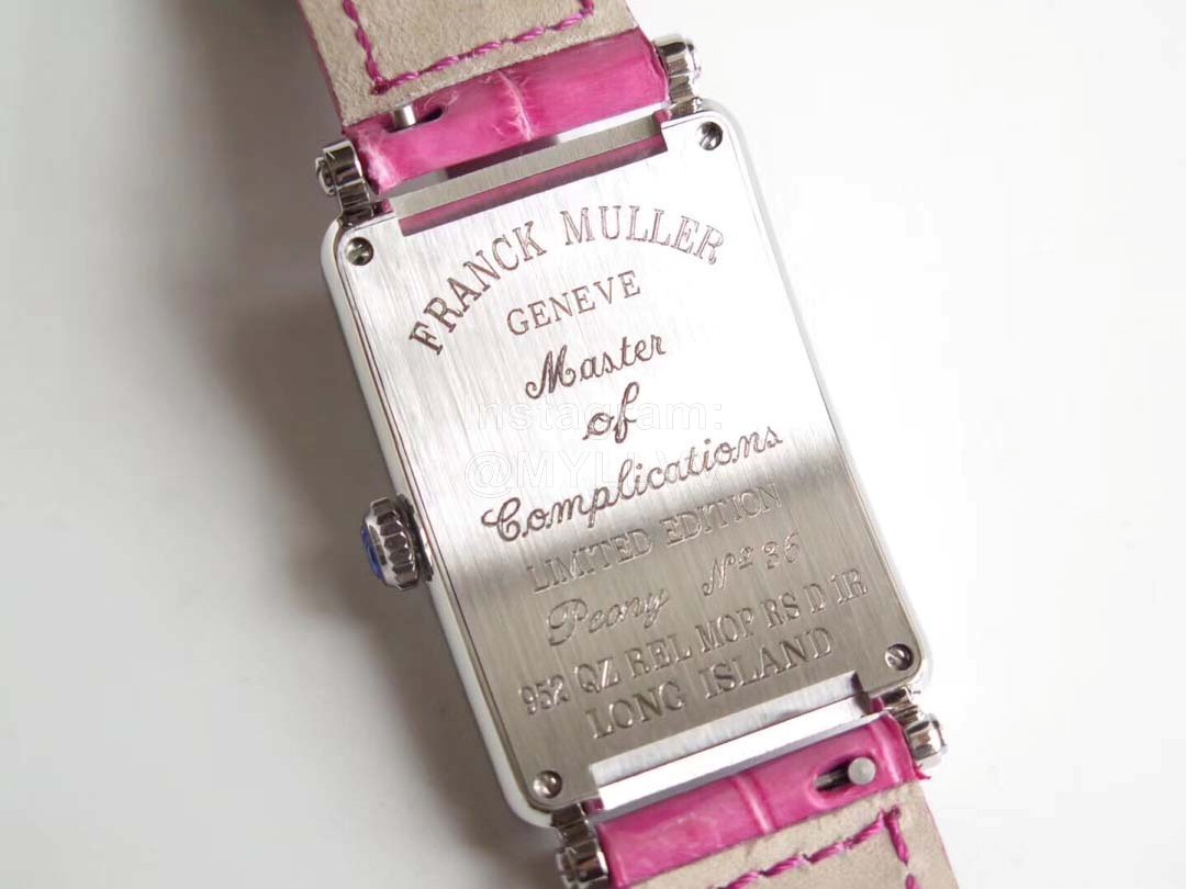 Franck Muller Long Island Series Leather Strap Quartz Watch Rose Red