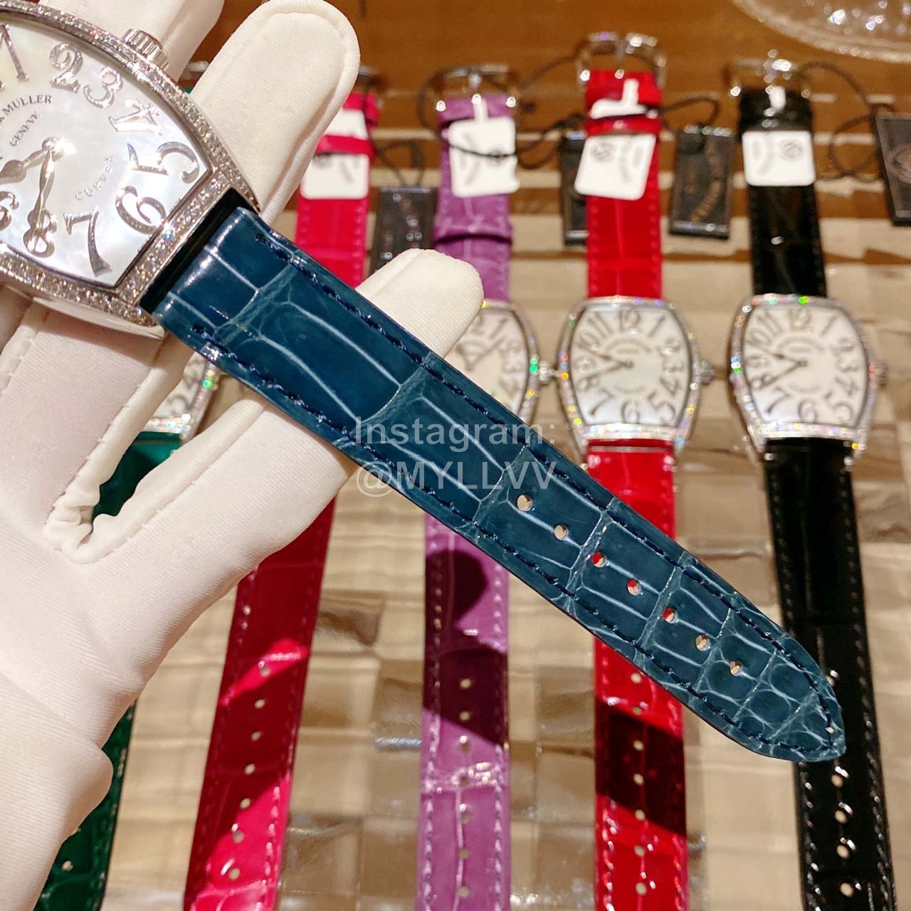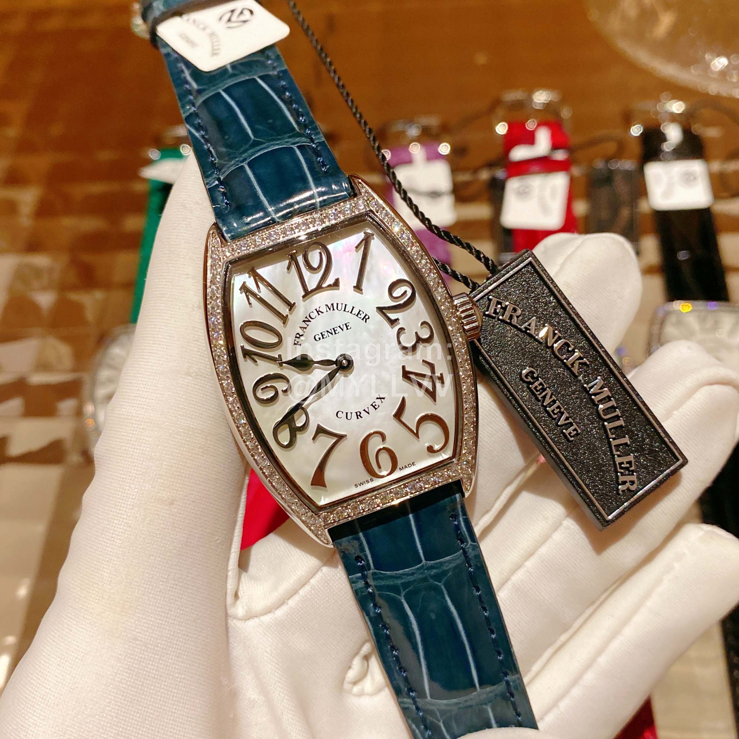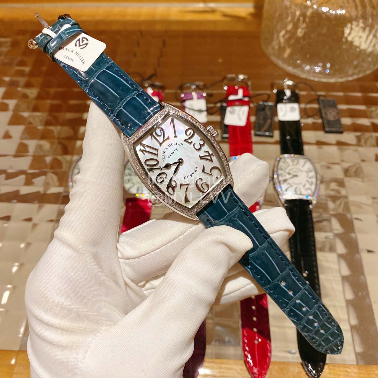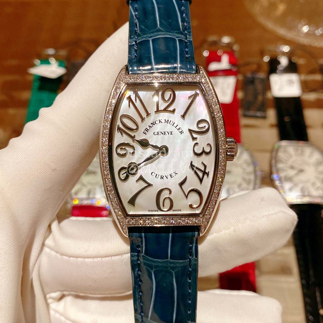 Franck muller2852 series wine barrel type women’s Quartz wristwatch 316L fine steel case is processed and polished by CNC. The bottom cover is seamlessly spliced with the case and carved into shape. The bottom cover is finely brushed and the font carving is clear. The arched mirror is matched with the real pearl light Fritillaria arched dial with complicated manufacturing process. The 12 real nail Arabic numerals show three-dimensional. The color of a good pearl Fritillaria dial can show different bright luster and dazzling due to different light sources and observation angles, It is by no means comparable to other low-quality Fritillaria discs. The movement adopts imported quartz movement, with accurate travel time and 5A high-grade diamond inlay. It is made at any cost, with ingenuity and perfect technology. Match with handmade American crocodile skin to show aestheticism and elegance